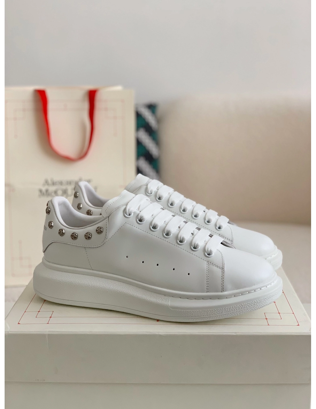 Alexander McQueen MQ White Rose nail tail Sneakers