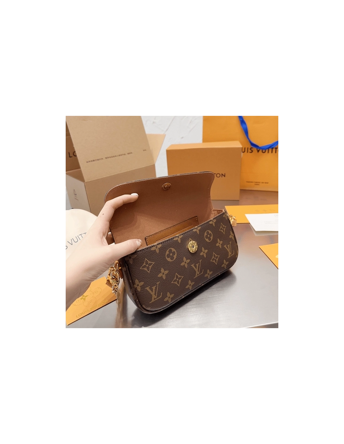 Inspired by the Sac Recoleta handbag from the 2000s, the on-trend Wallet On Chain Ivy bag is fashioned from Monogram canvas. The removable gold-color chain allows short-shoulder carry while the adjustable and detachable strap, in natural leather, enables cross-body and long-shoulder carry. Three card slots and a zipped inside pocket make it perfect for everyday essentials.