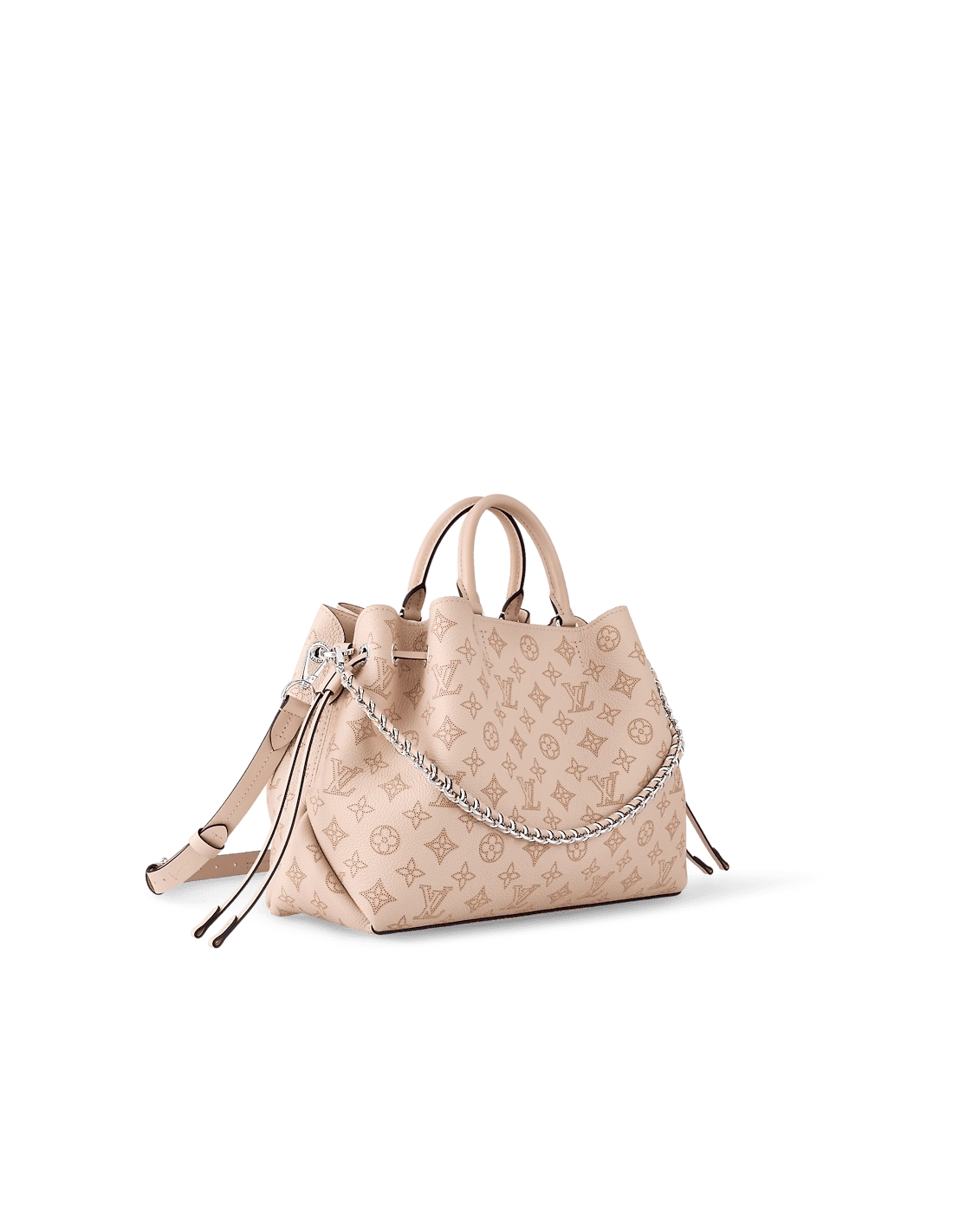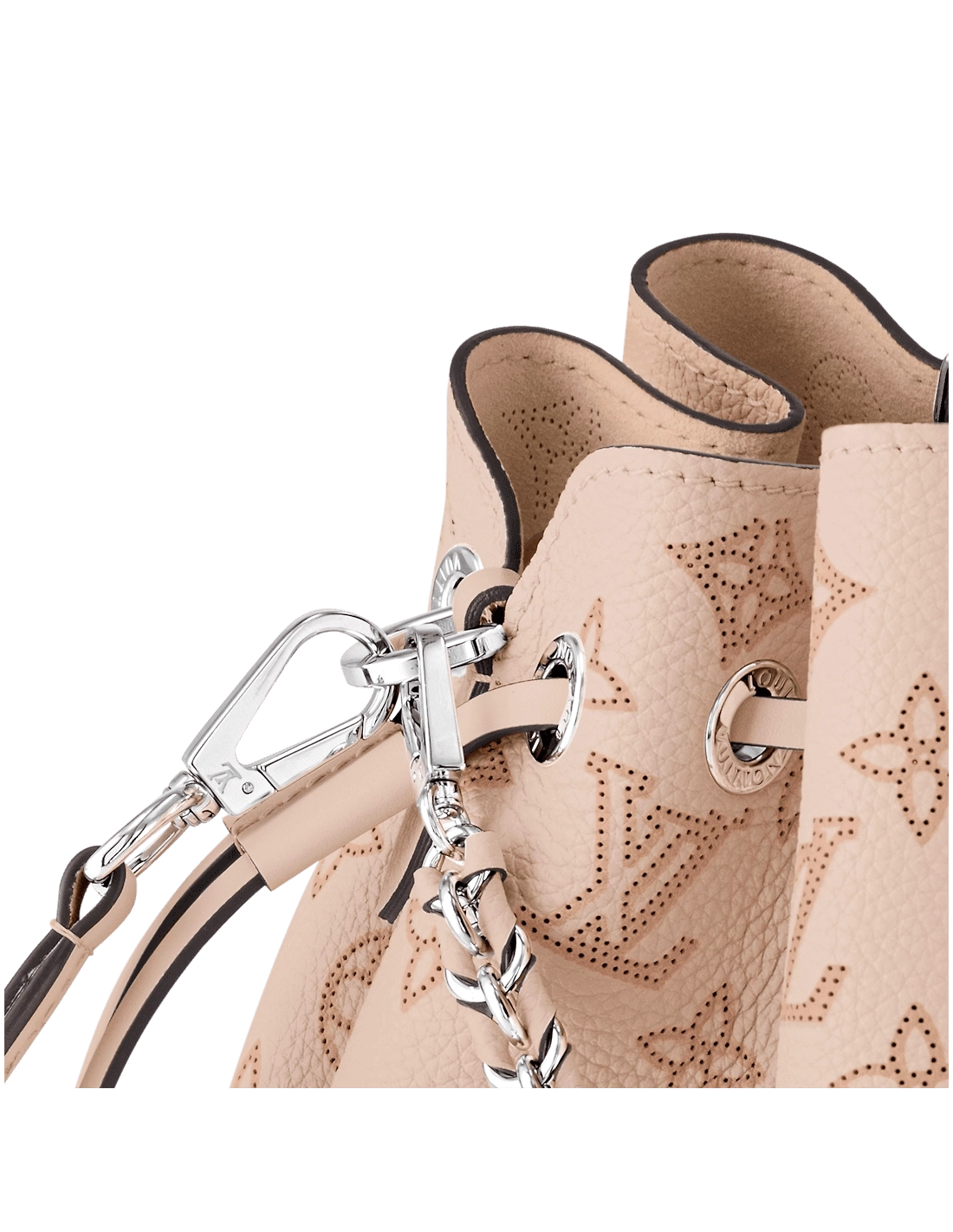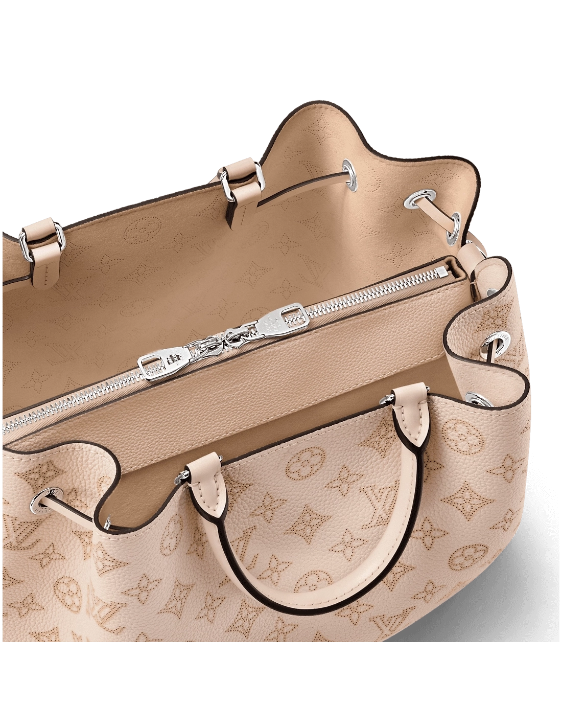 A cross between a bucket bag and carryall, the roomy Bella Tote bag is fashioned from Mahina perforated calfskin leather. Here the perforations are in a slightly darker shade to emphasize the Monogram pattern. Spacious and lightweight, with two separate inside compartments, its perfect for everyday use.