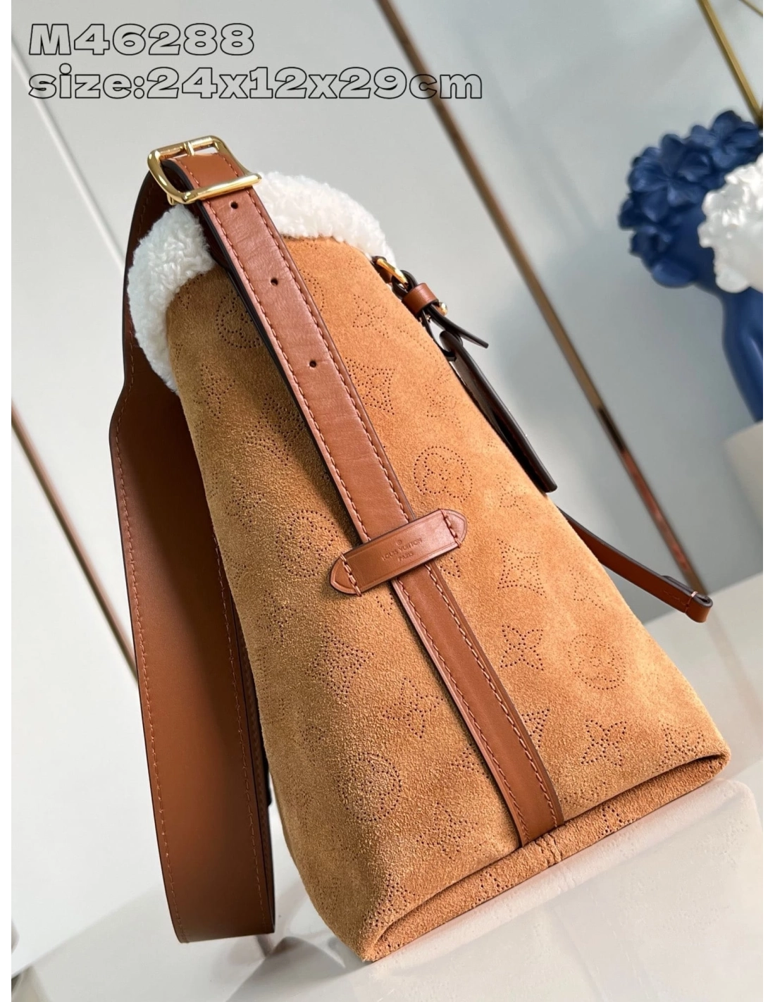 The iconic CarryAll PM adopts a warm and winter style with this luxurious edition from the LV Ski collection. It is crafted from Mahina suede adorned with Monogram perforations and is trimmed with merino-sourced shearling for a cozy finish. The capacious design secures with a magnetic closure and leather ties, and will comfortably fit a long wallet, as well as other daily essentials.