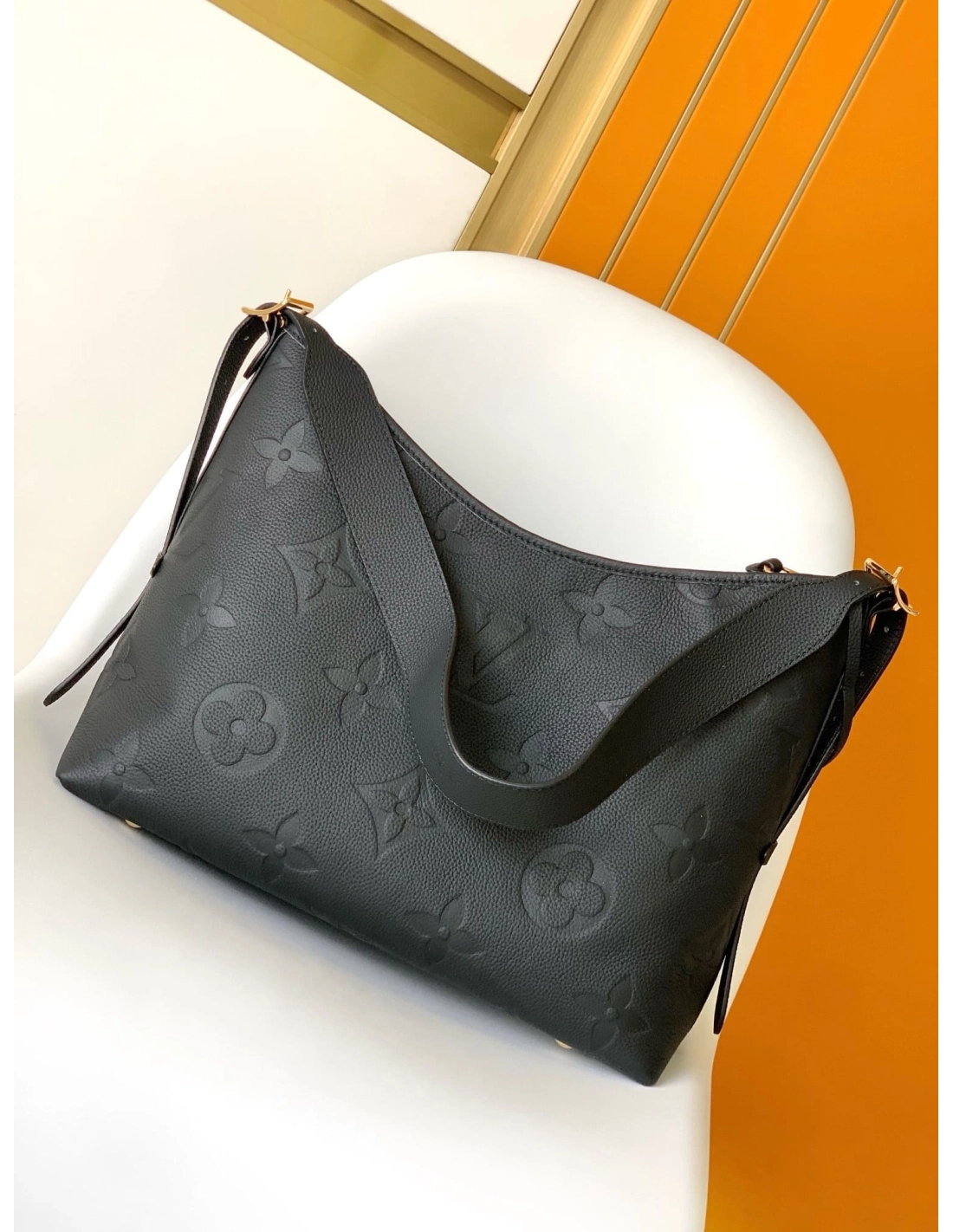 The CarryAll PM bag is edited this season in Monogram Empreinte, the Maisons supple embossed leather. With its understated design, secure closure and smart interior (which includes a removable zipped pouch), this body-friendly hobo style is ideal for daily wear. The adjustable strap can be configured for comfortable hand, shoulder or cross-body carry.