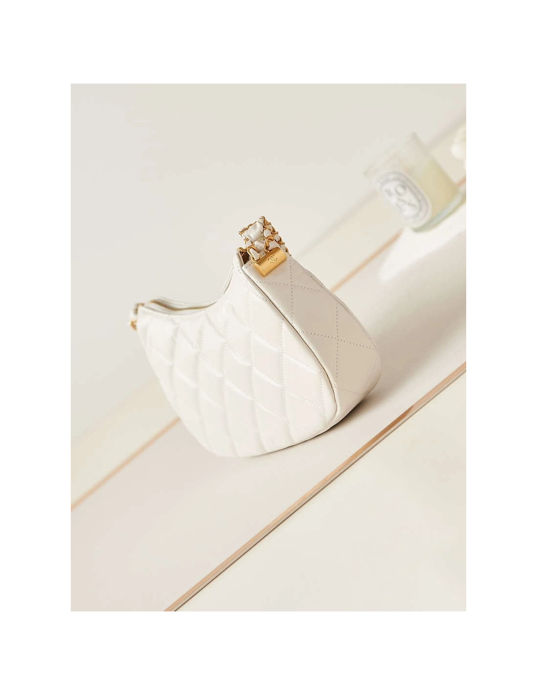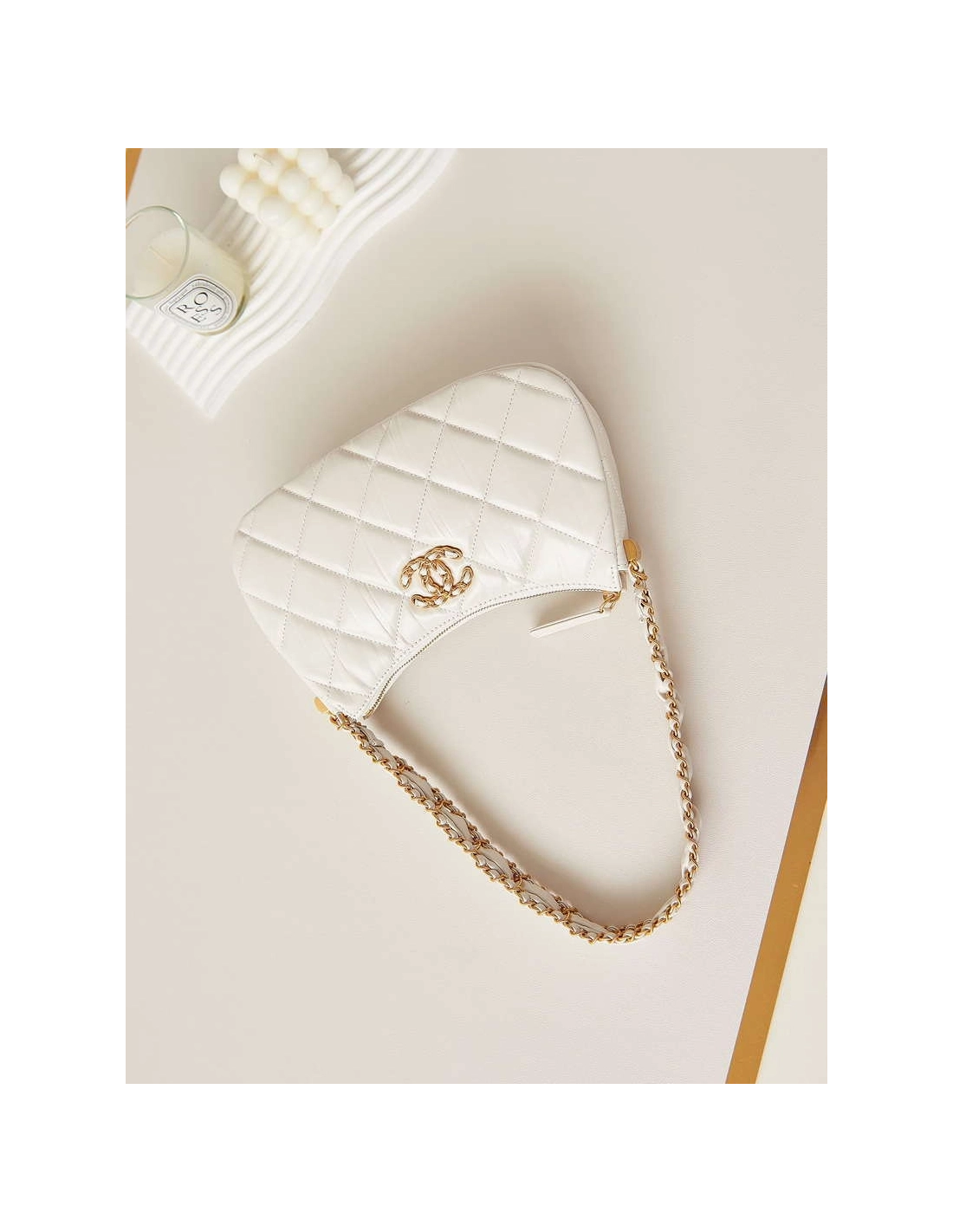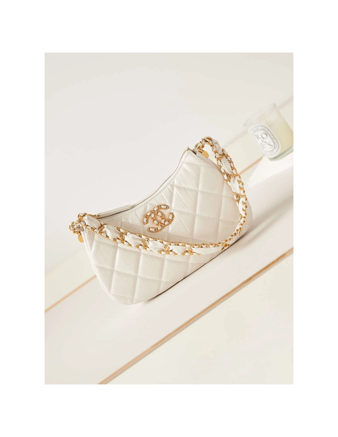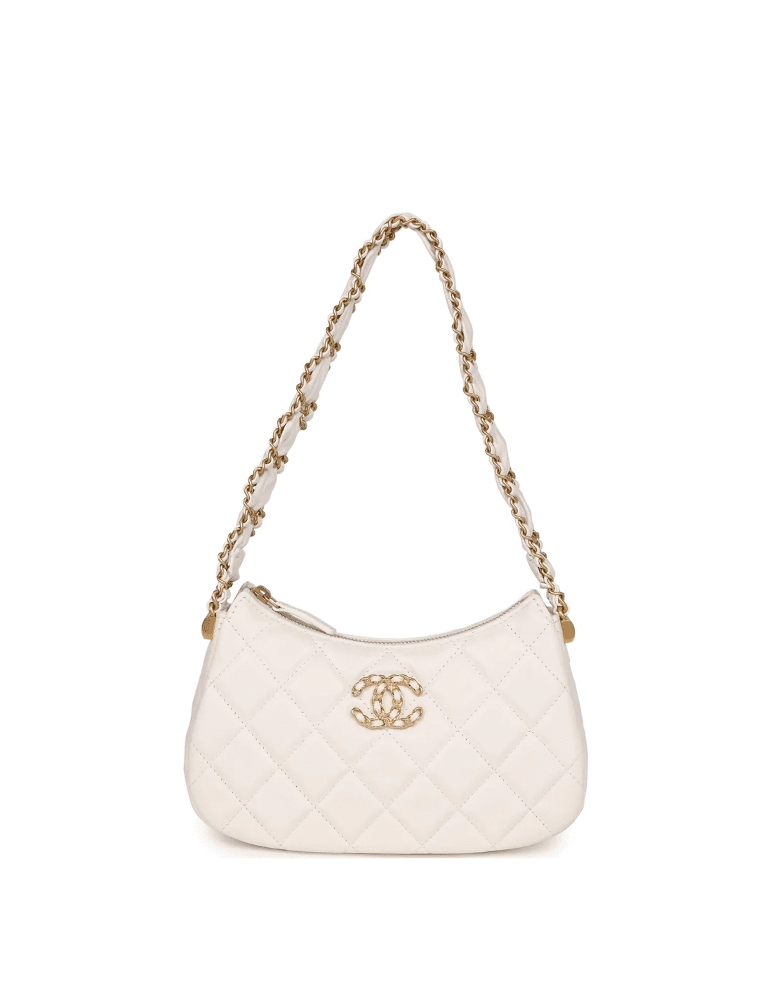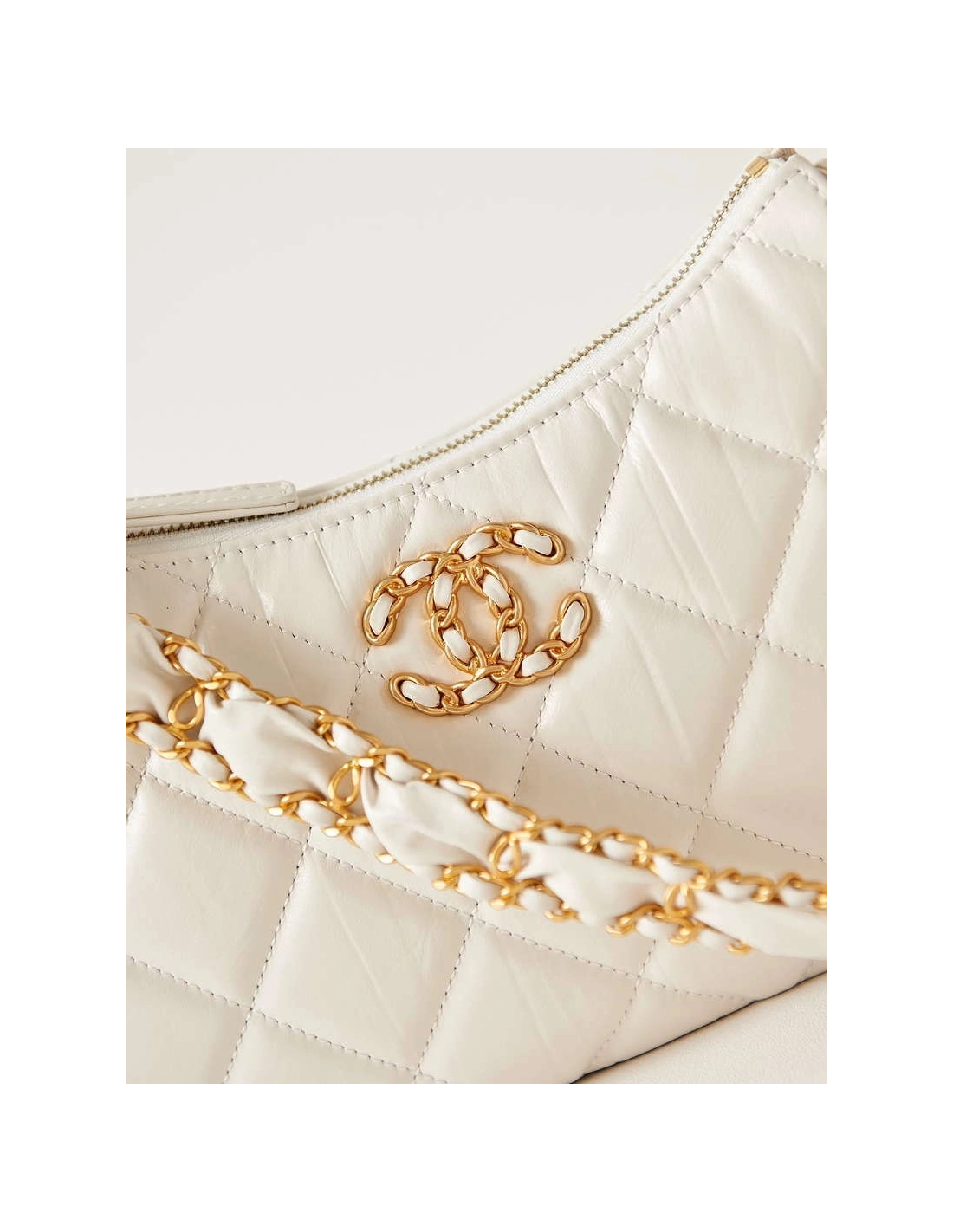 Chanel AS4422 23K Hobo Bag Lambskin Gold Metal White,CHANEL,BAGS