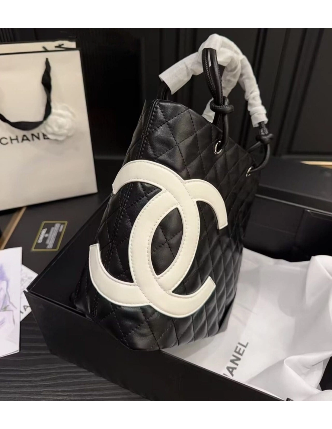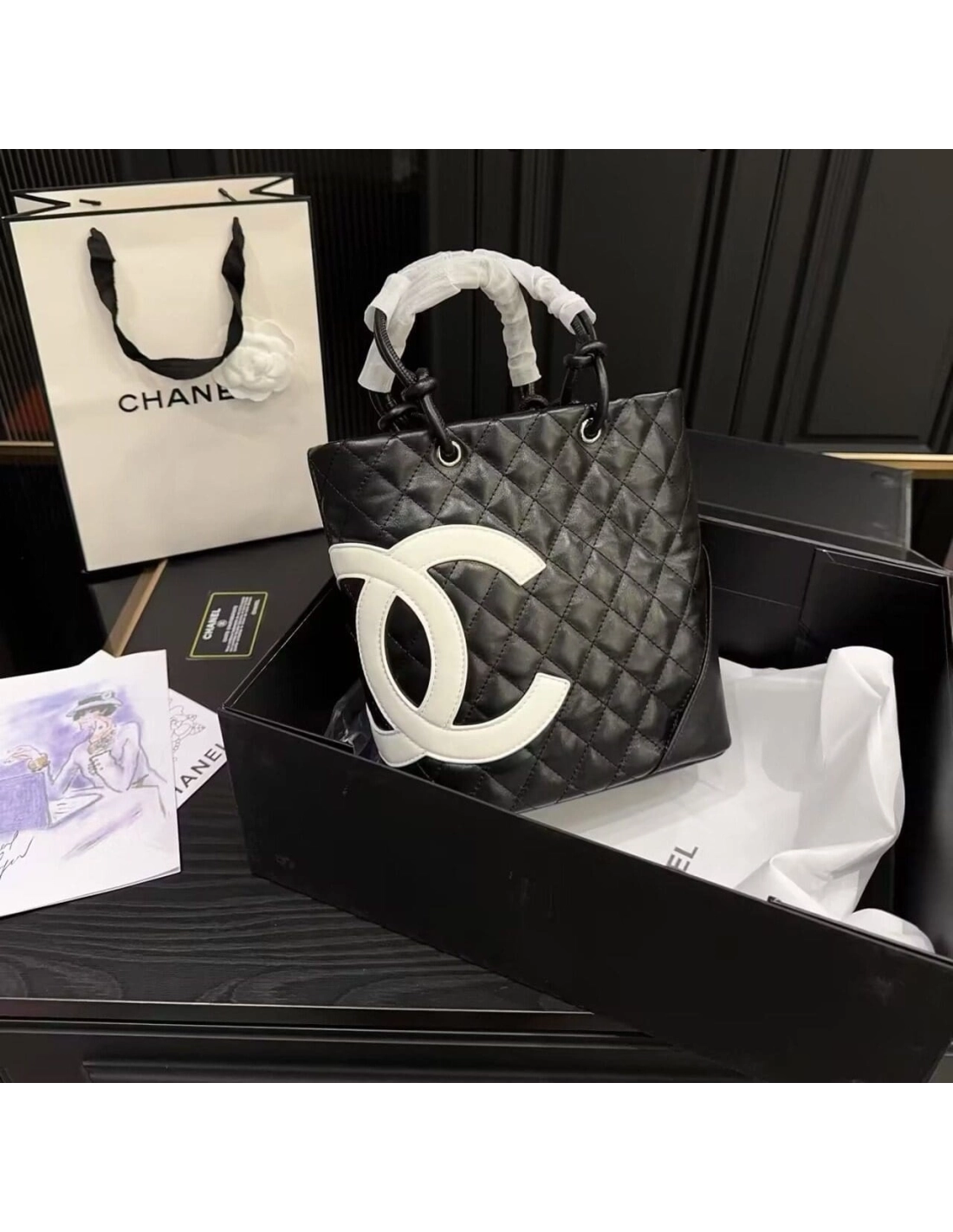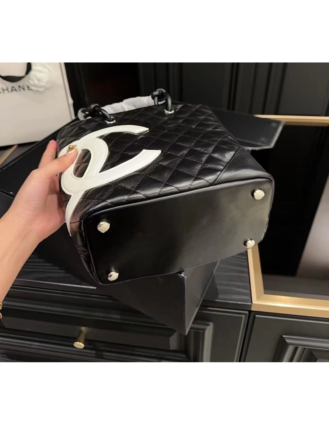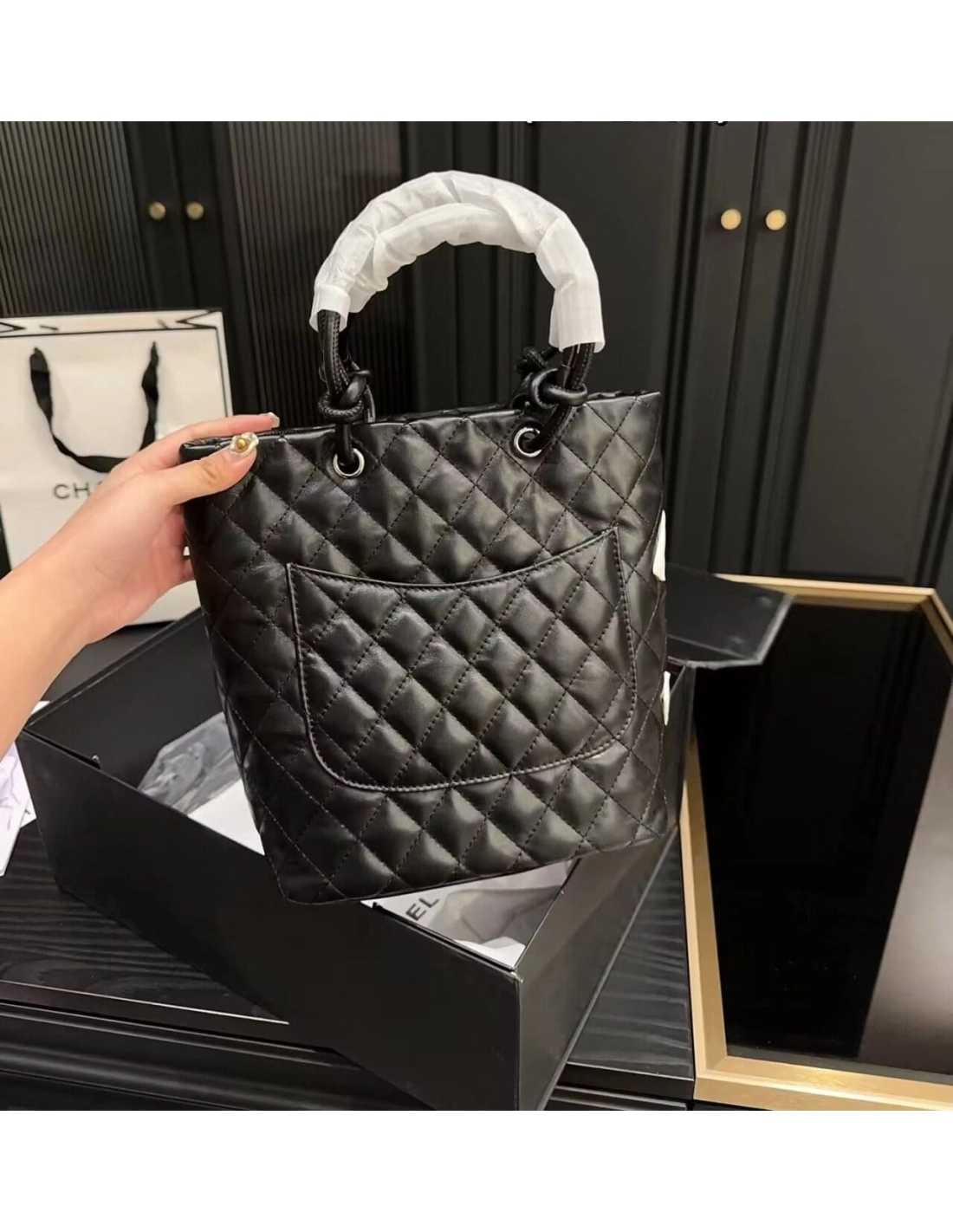 Chanel Black Quilted Lambskin Leather Medium Cambon Tote