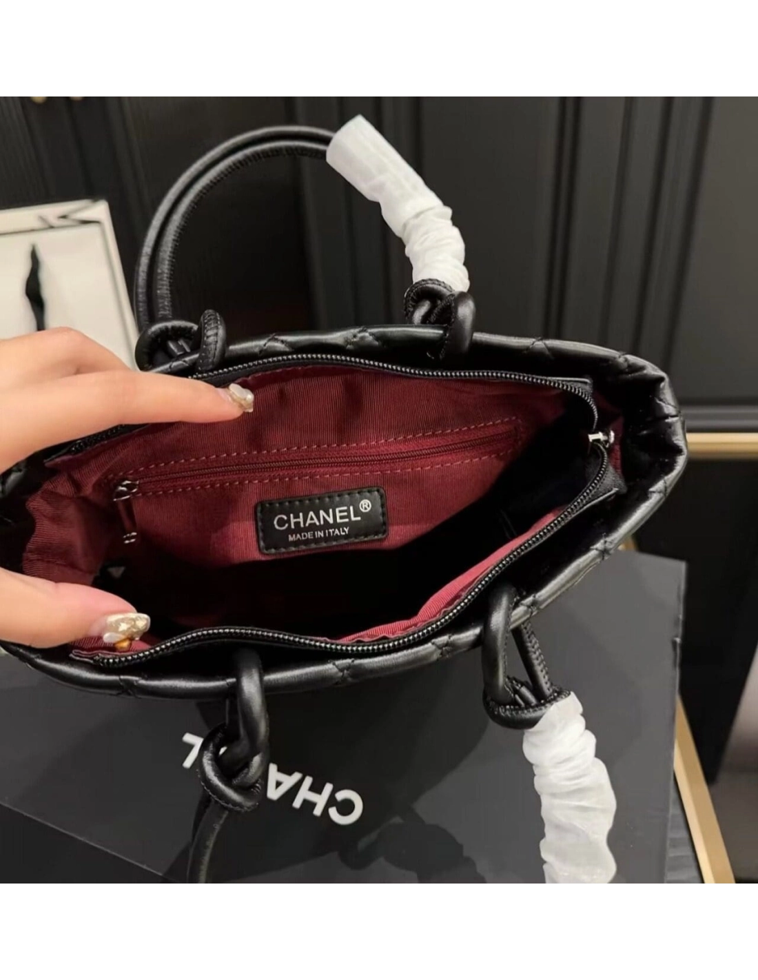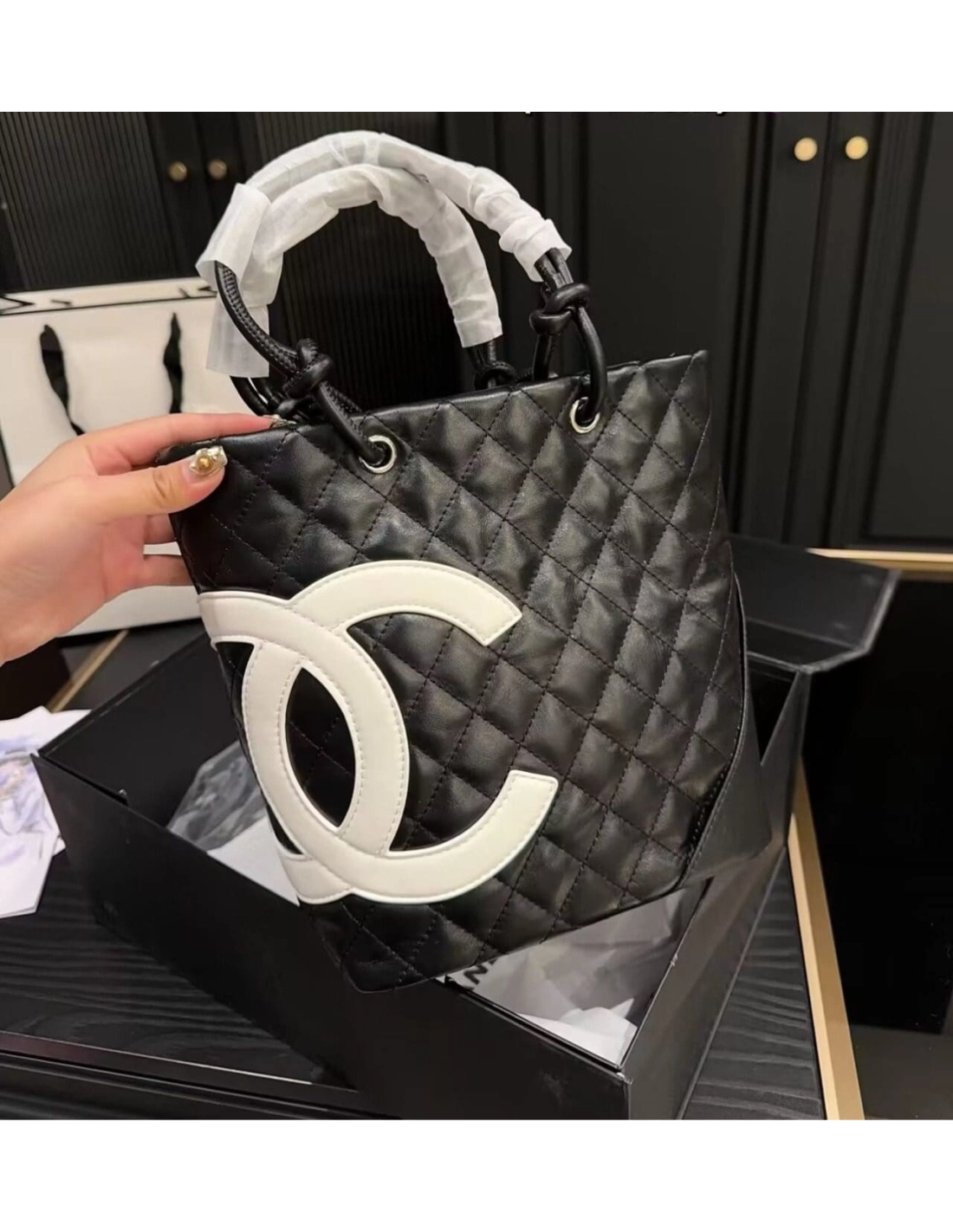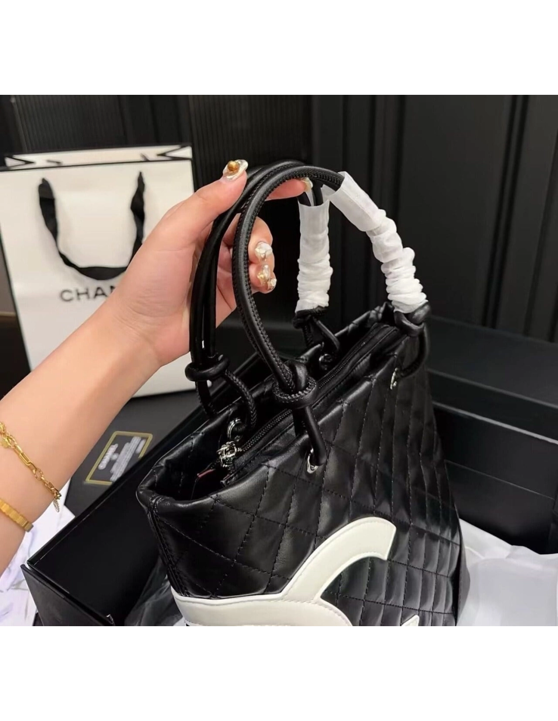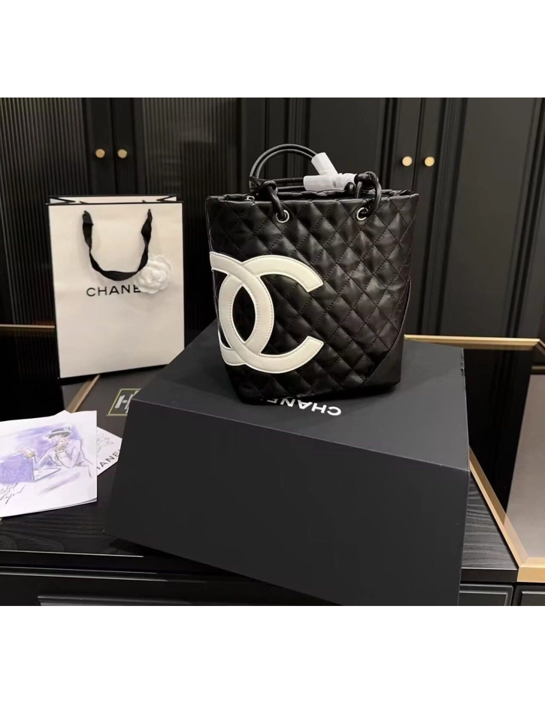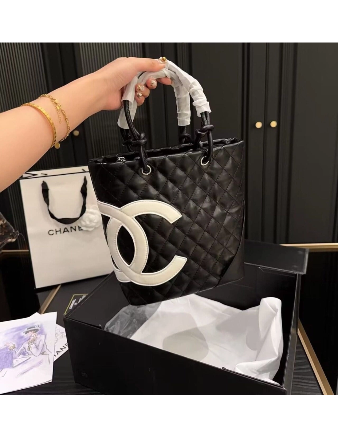 Chanel Black Quilted Lambskin Leather Medium Cambon Tote