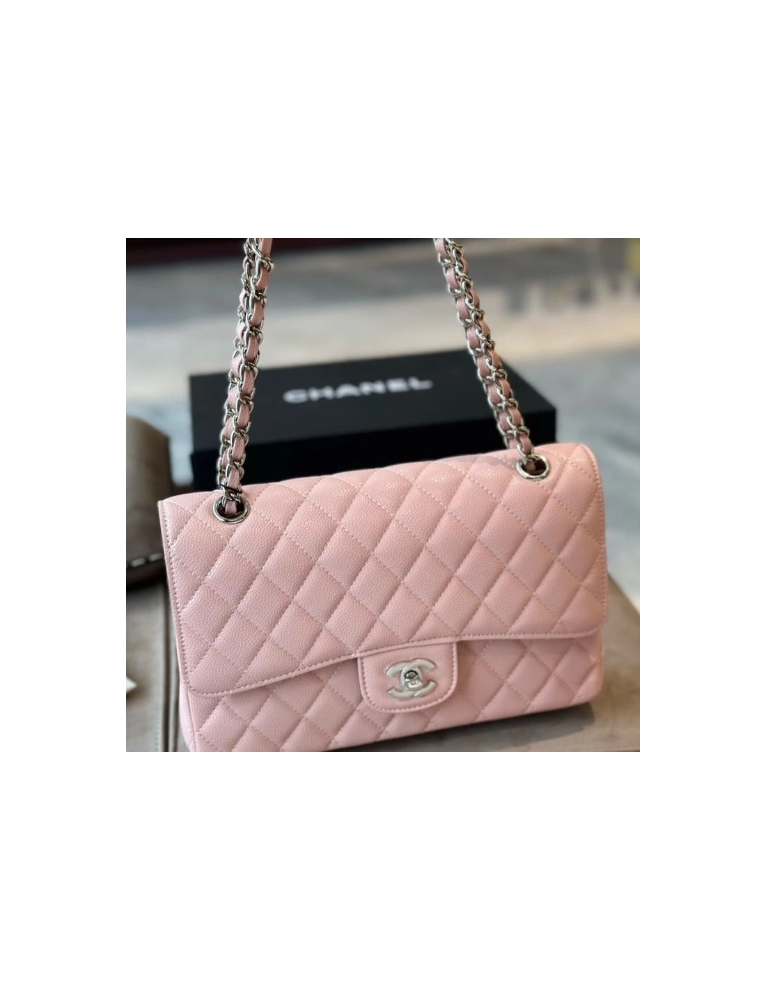 CHANEL Caviar Quilted Medium Double Flap Light Pink