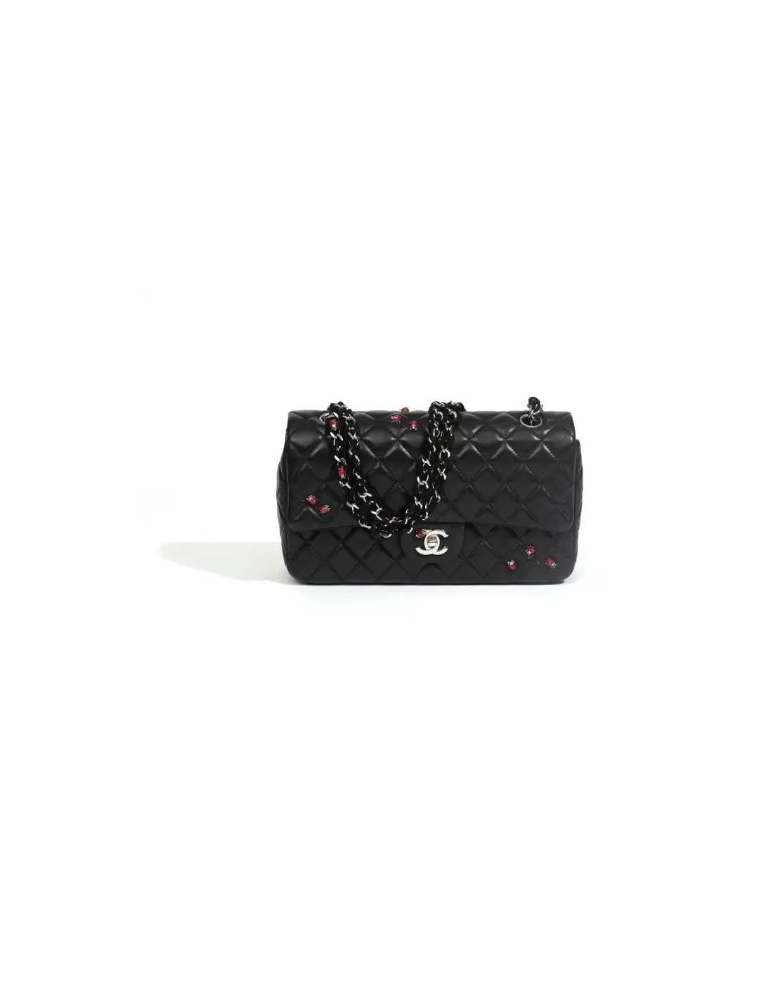 This stunning limited edition ladybug medium flap bag was featured during the 2011 Chanel Spring/Summer collection. - Black Quilted Lambskin - Silver hardware - The Interior is lined in a tonal textile - Includes original authenticity card - Excellent condition with minimum signs of wear size 25-7-14cm