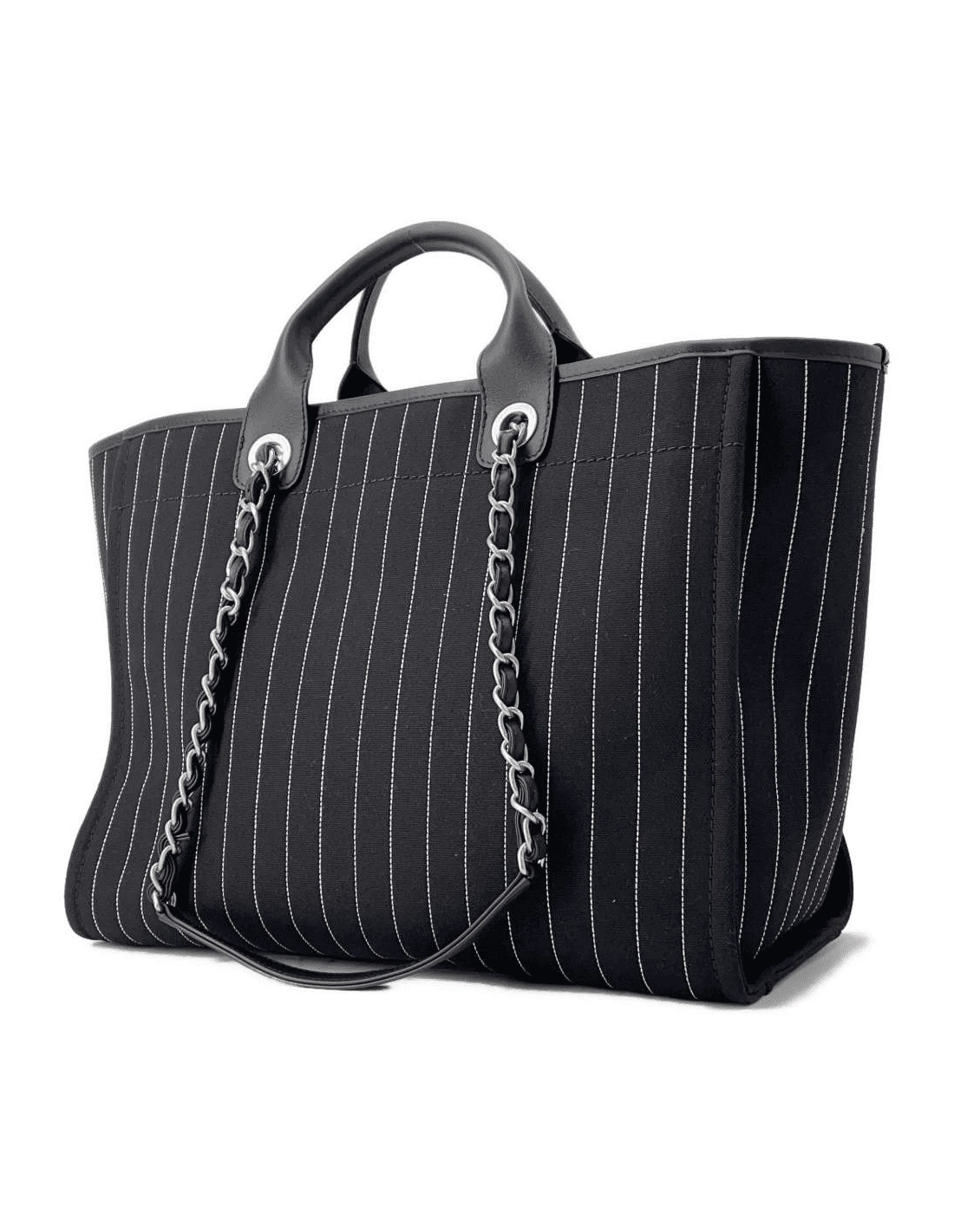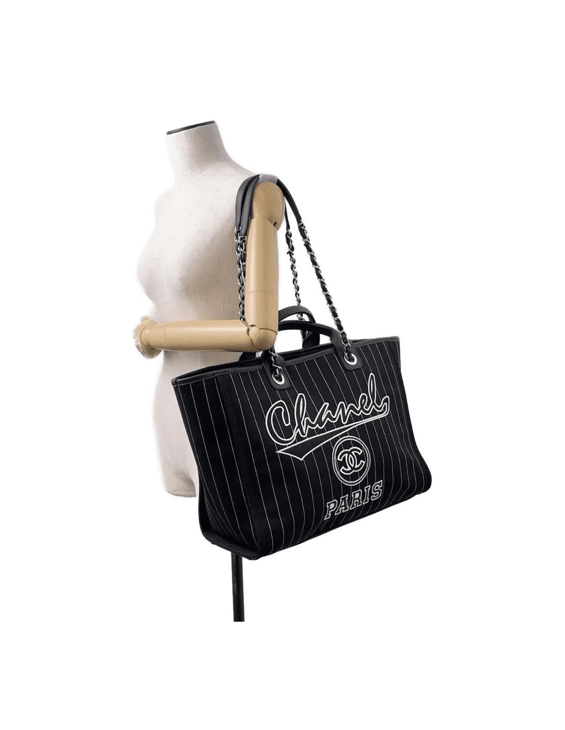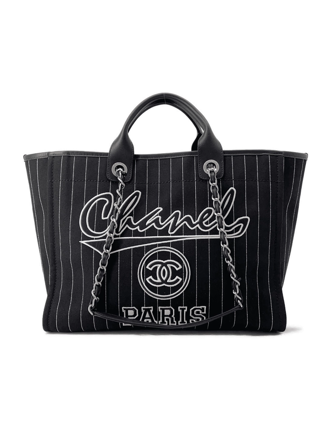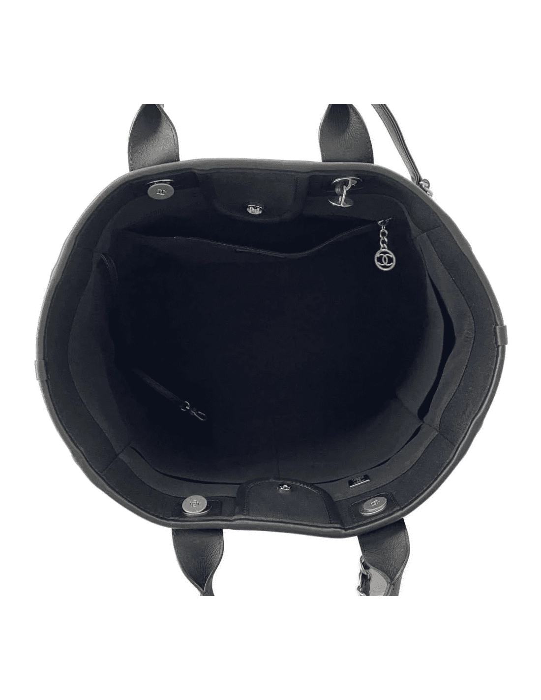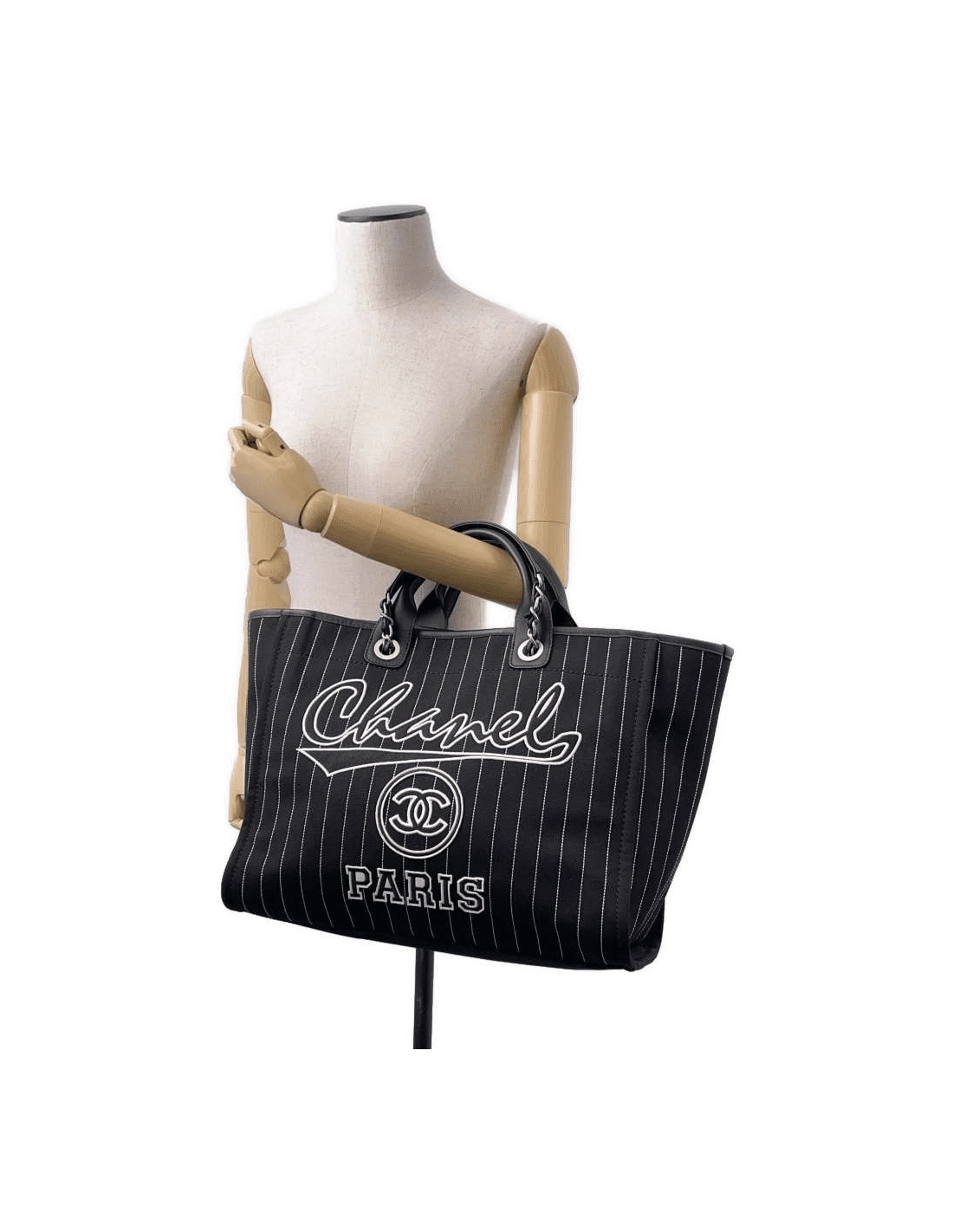 CHANEL Deauville 2wayTote Bag Black A66941 Cotton Leather