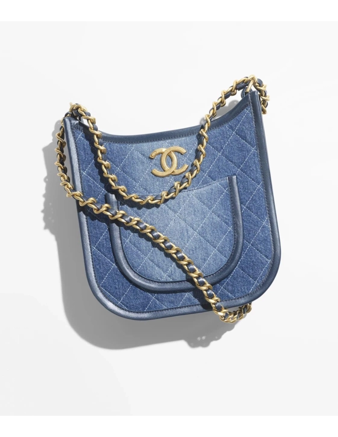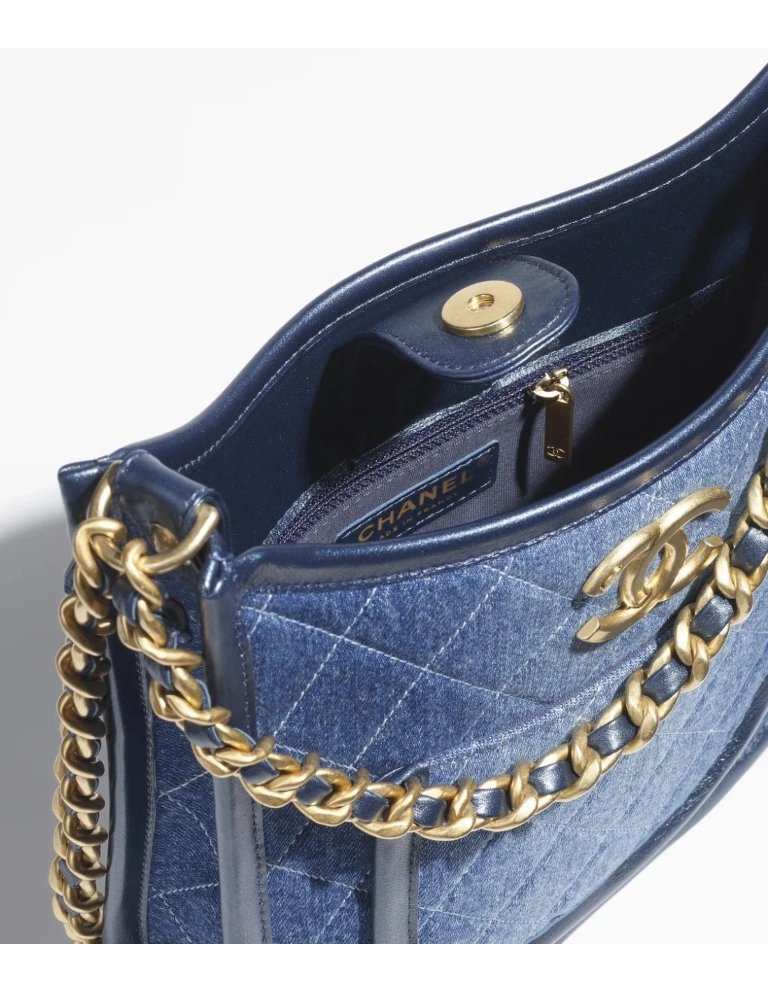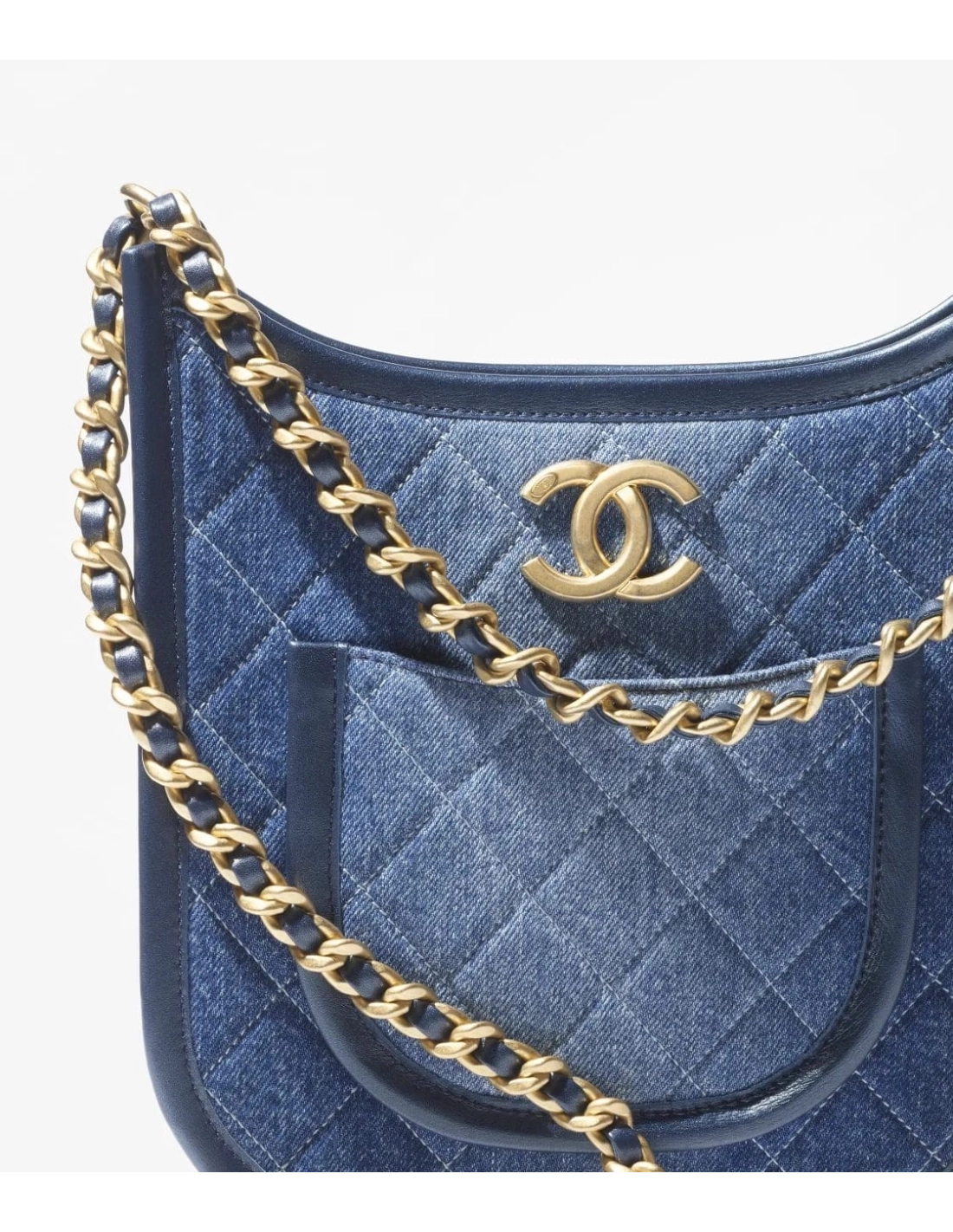 Chanel HOBO HANDBAG Washed Denim Gold Tone Metal Blue
