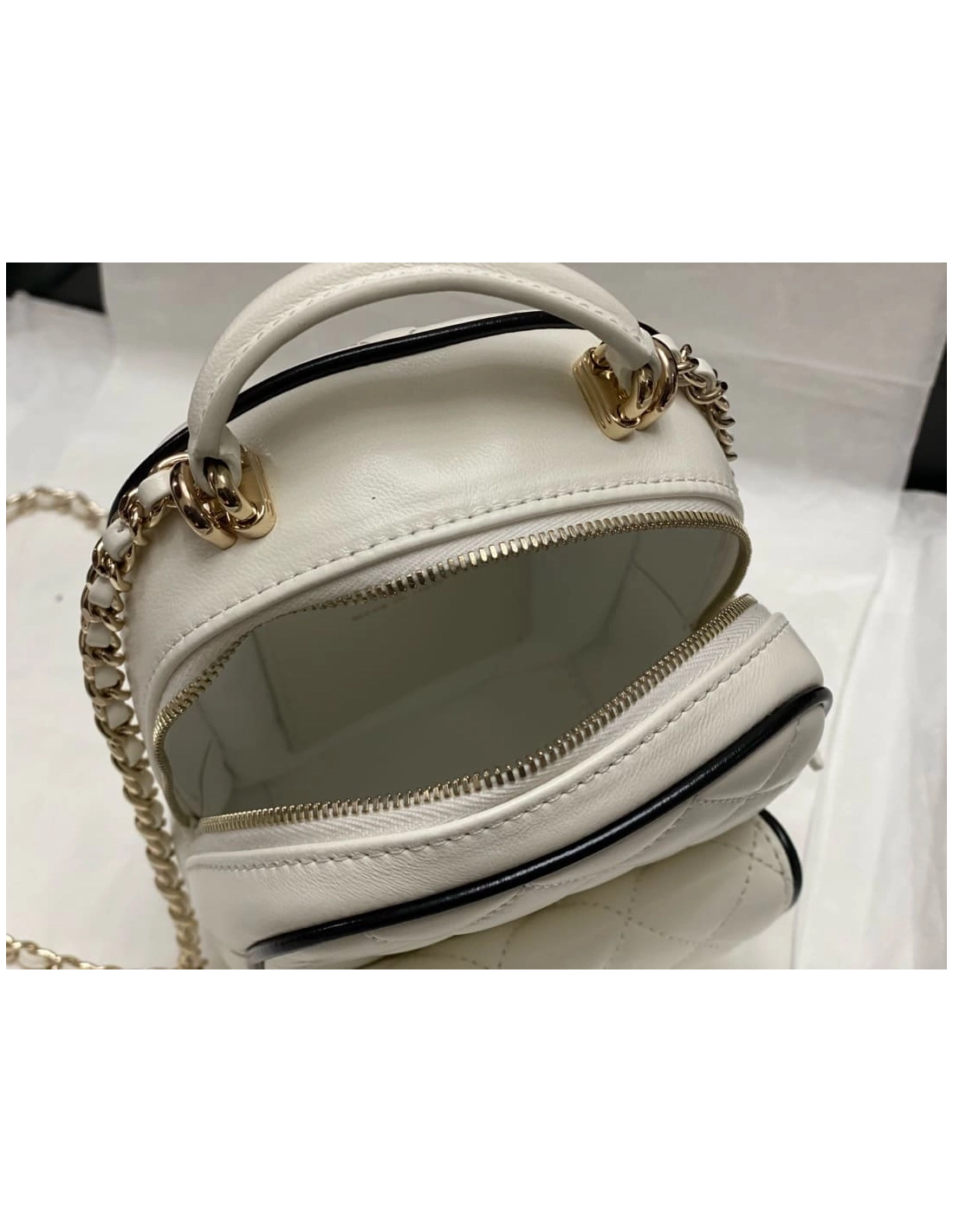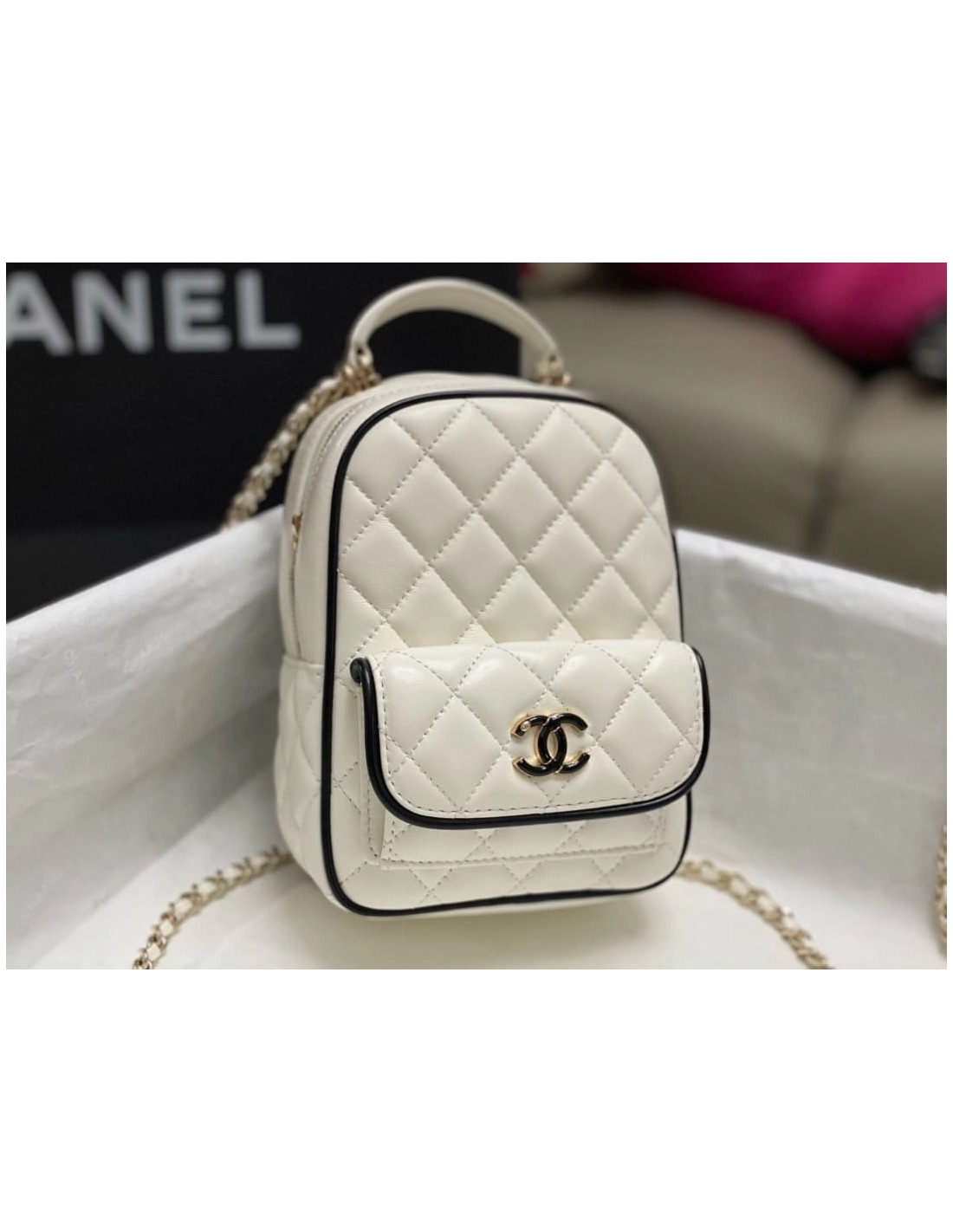 New in stock CHANEL Chanel Beige Quilted Caviar Mini Coco Top Handle Pale Gold Hardware Chanel $220.00 Add to cart