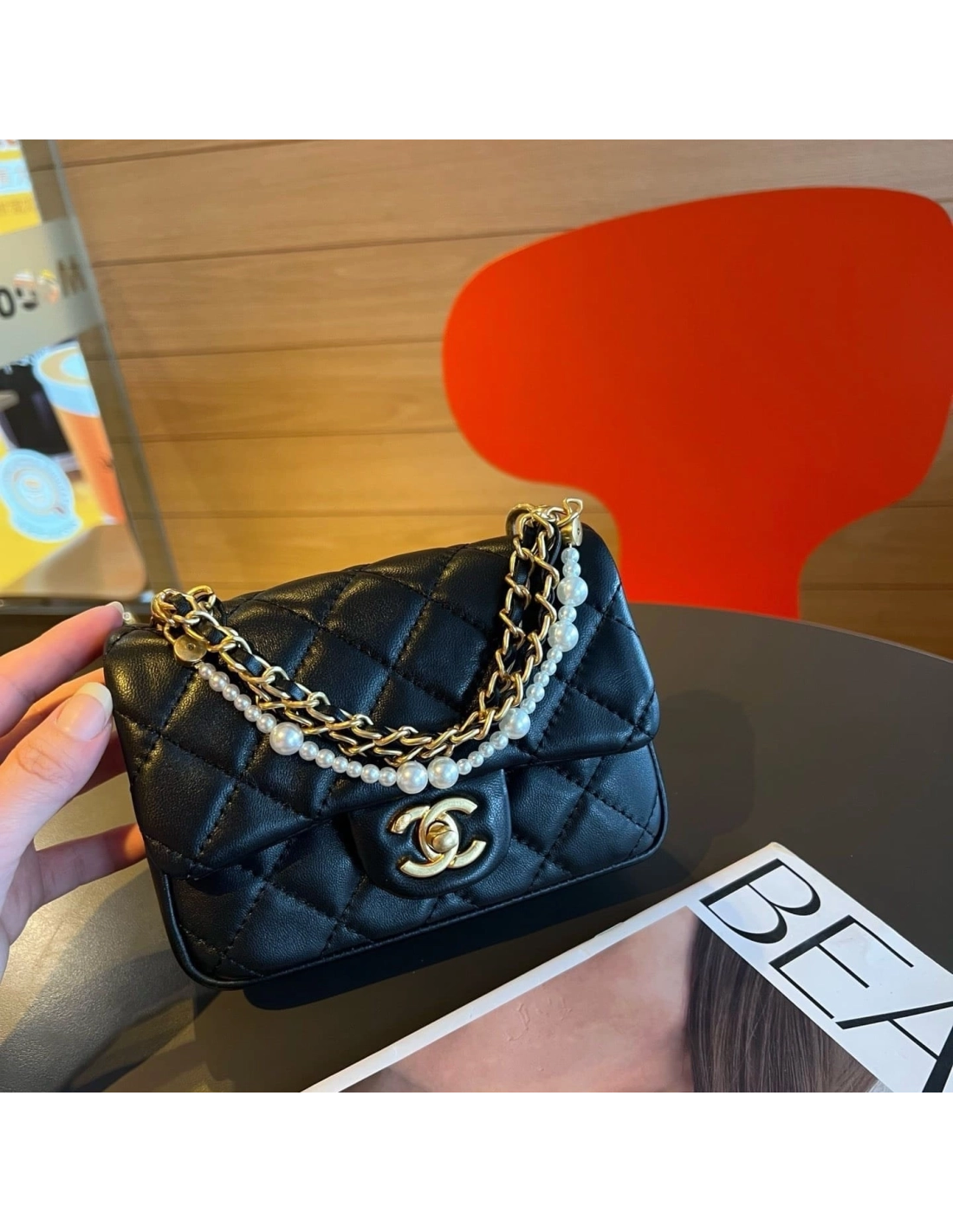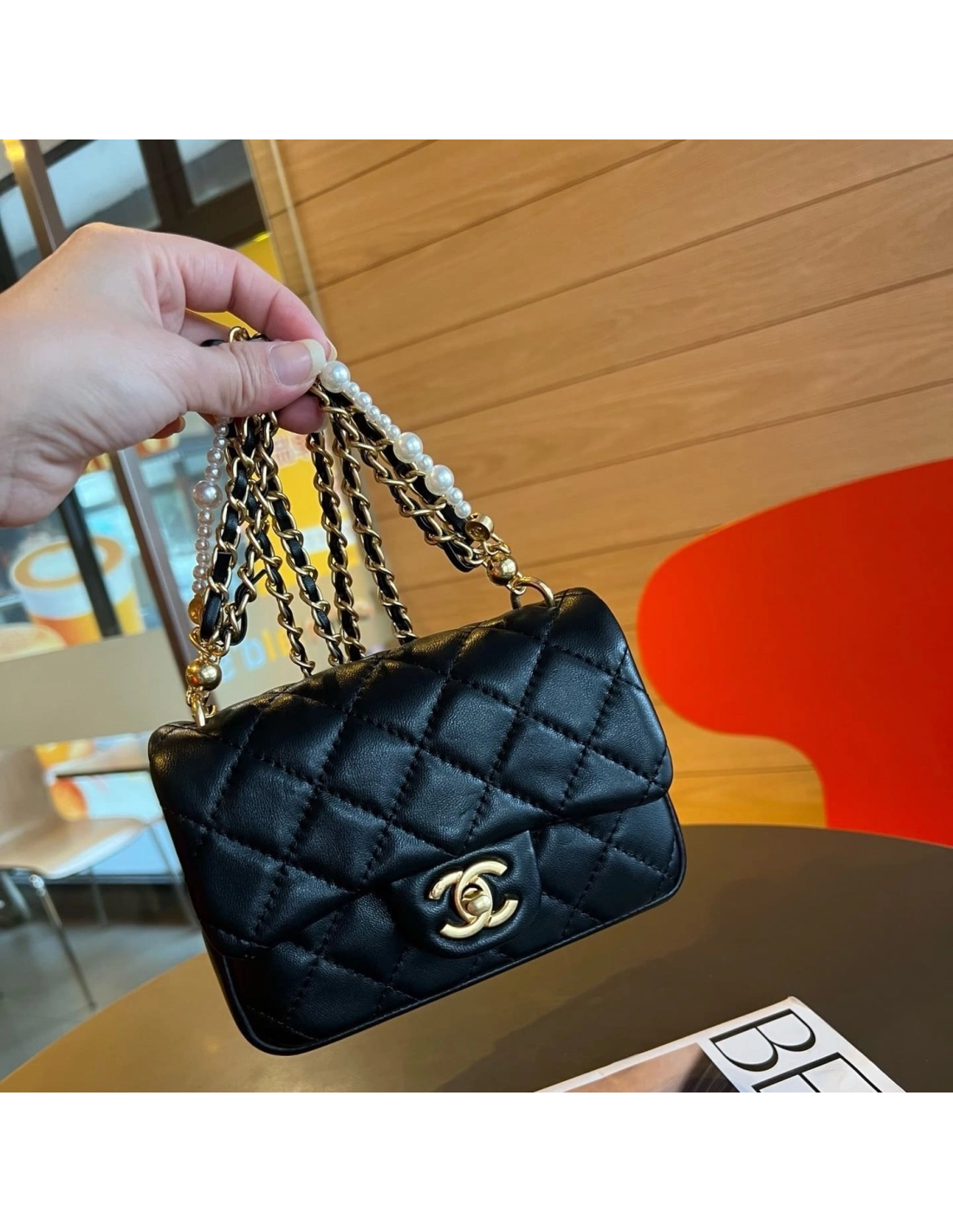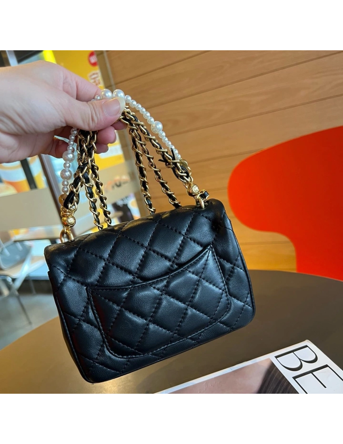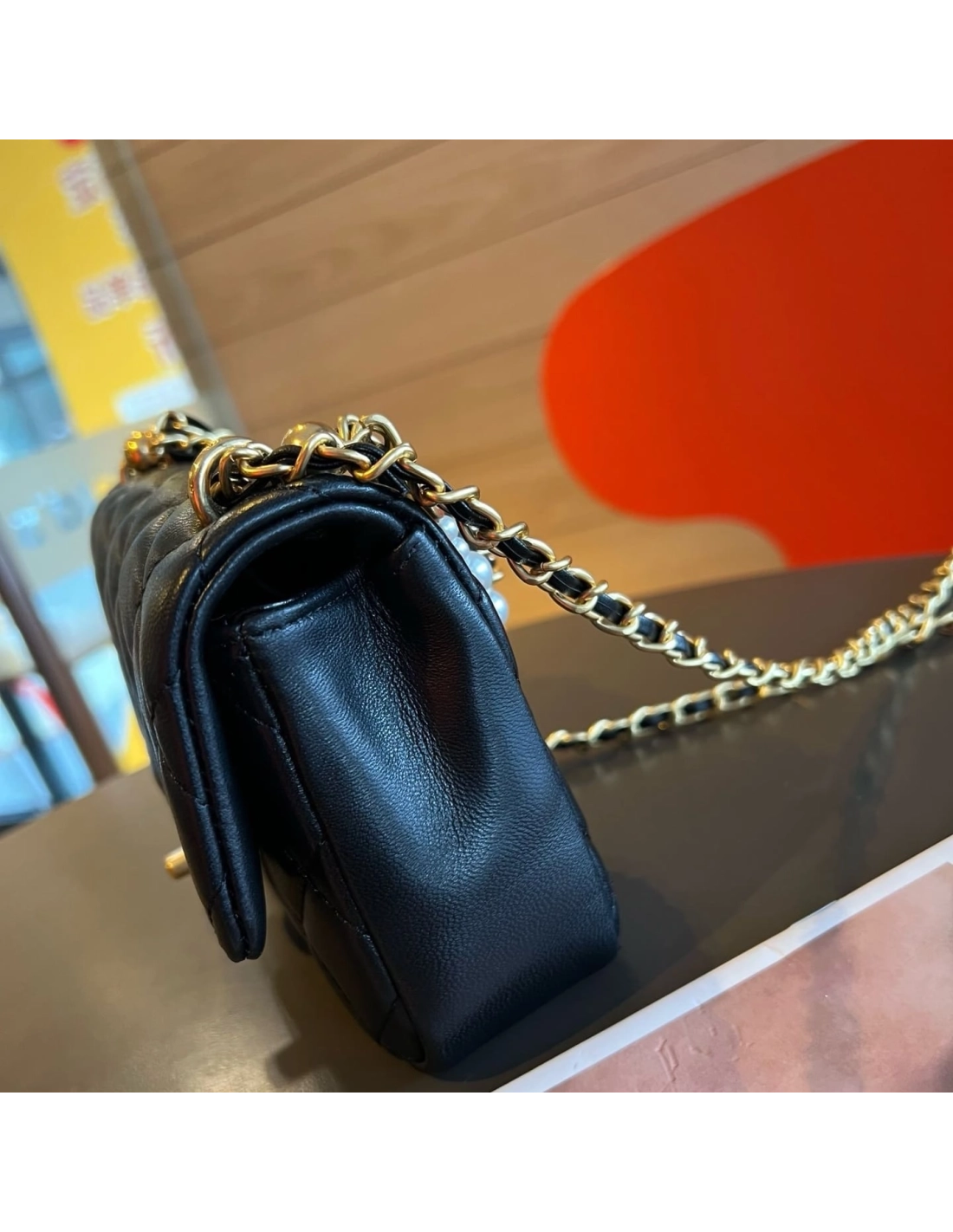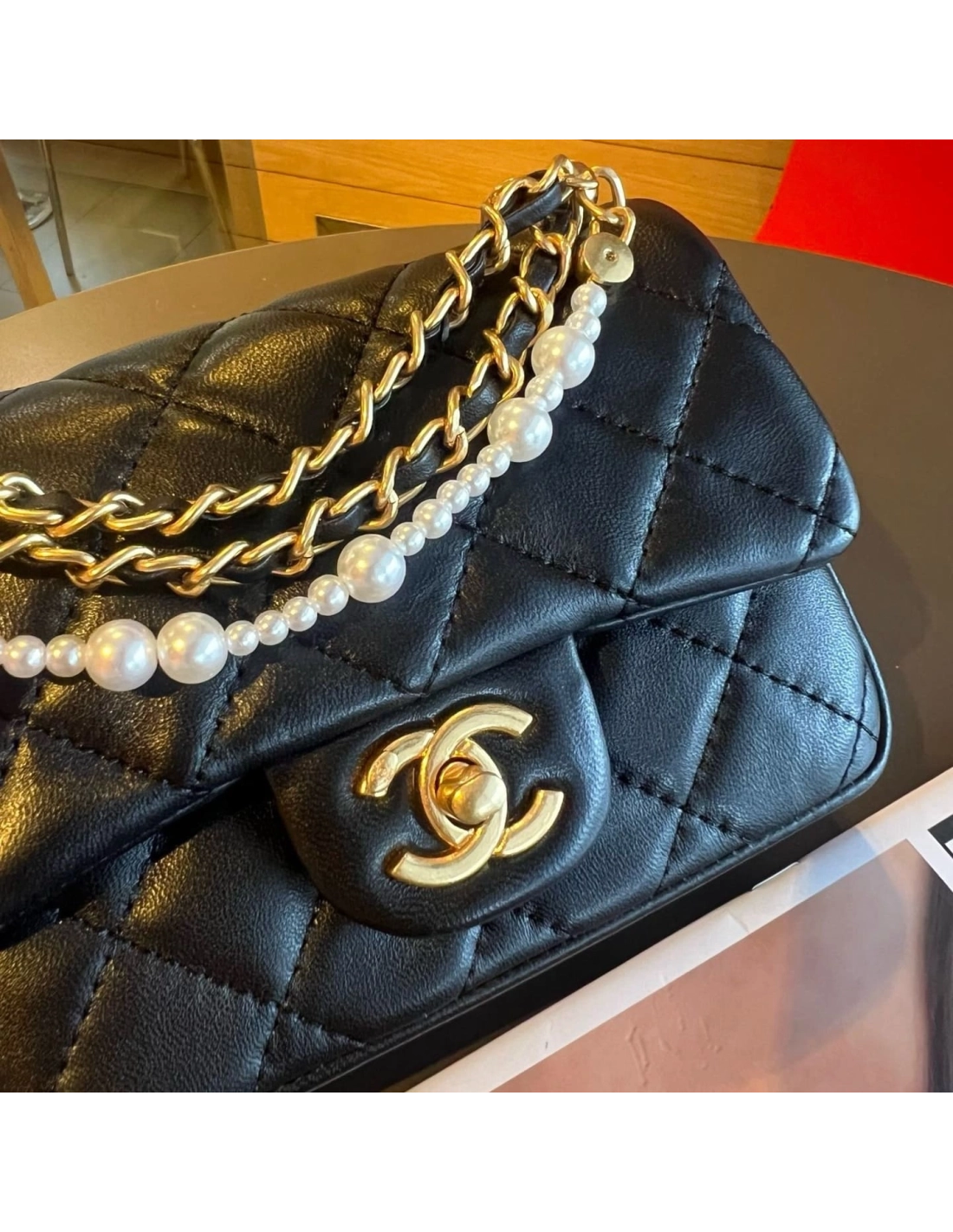 Chanel Mini Square Pearl Crush Flap Bag Black Lambskin Brushed Gold Hardware