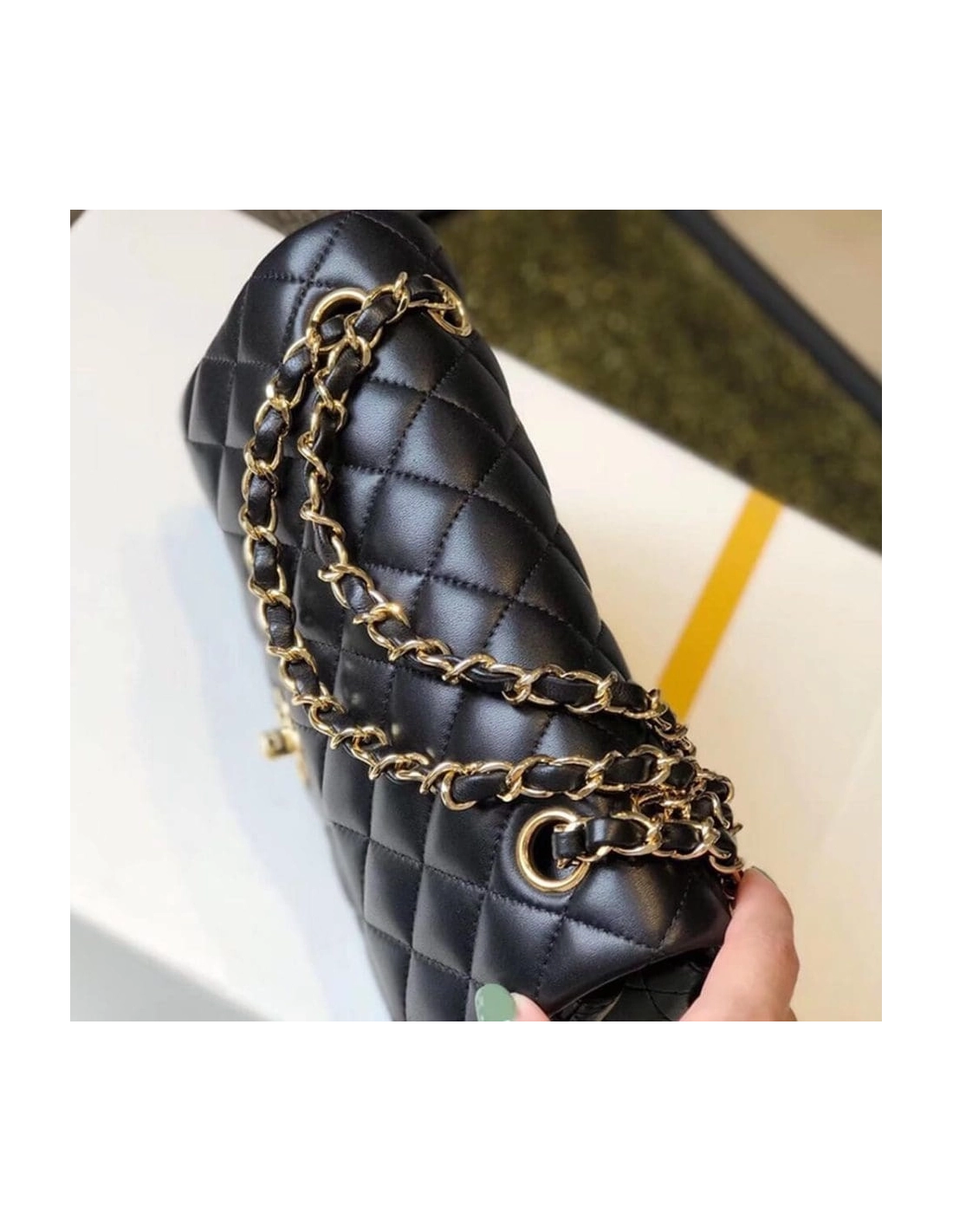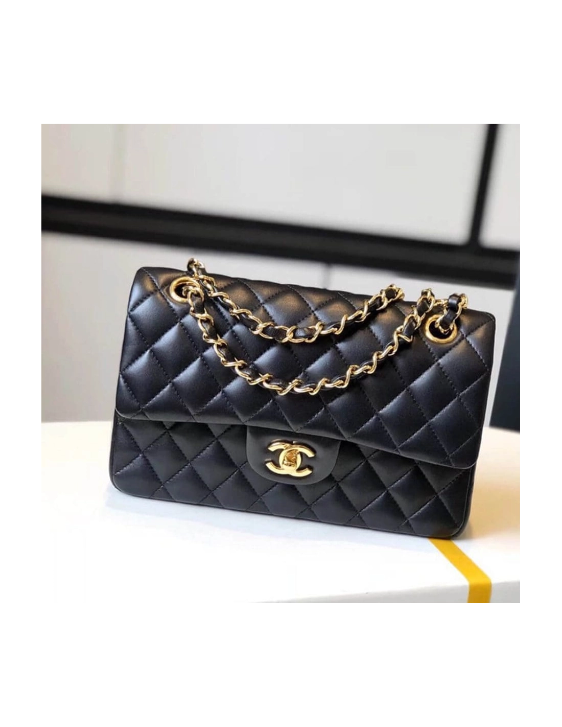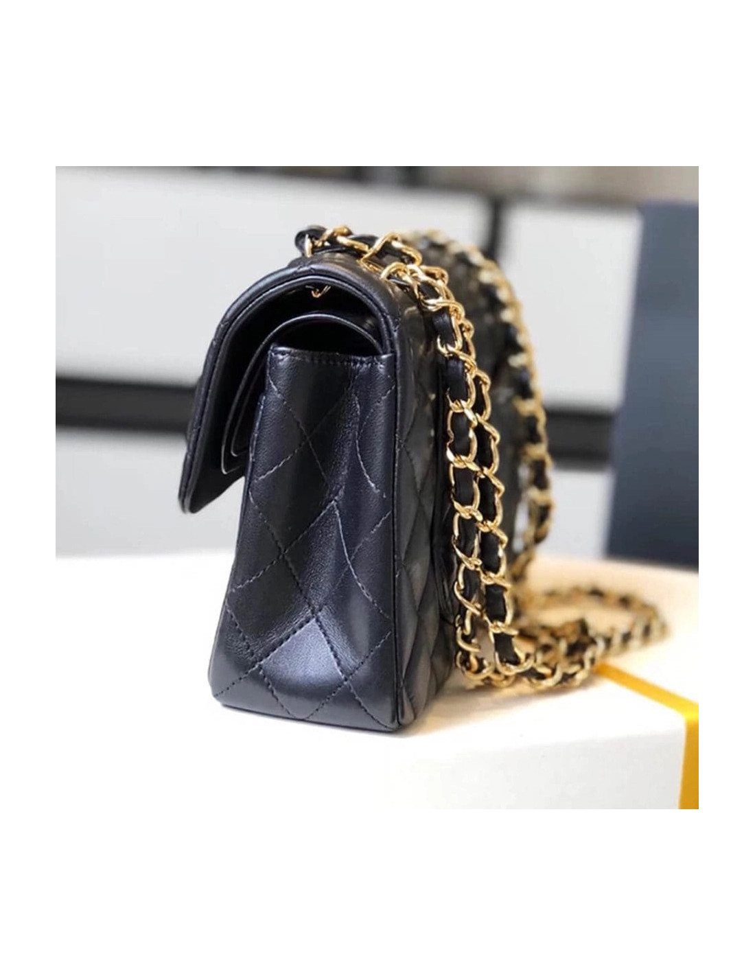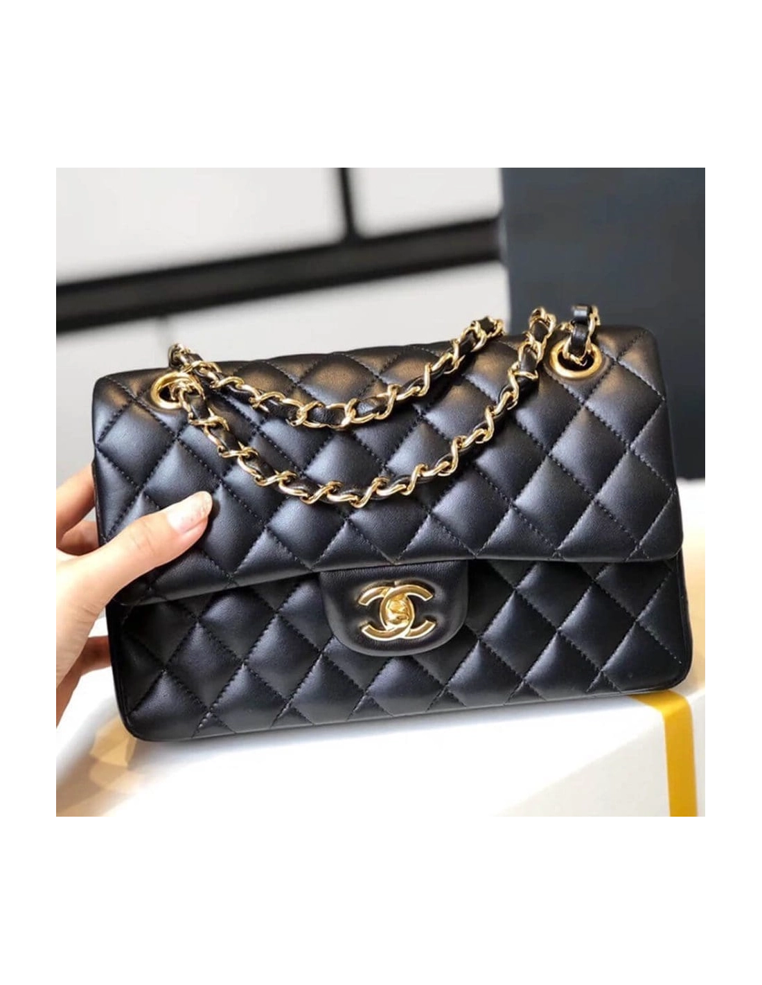 CHANEL SMALL CLASSIC HANDBAG LAMBSKIN GOLD METAL