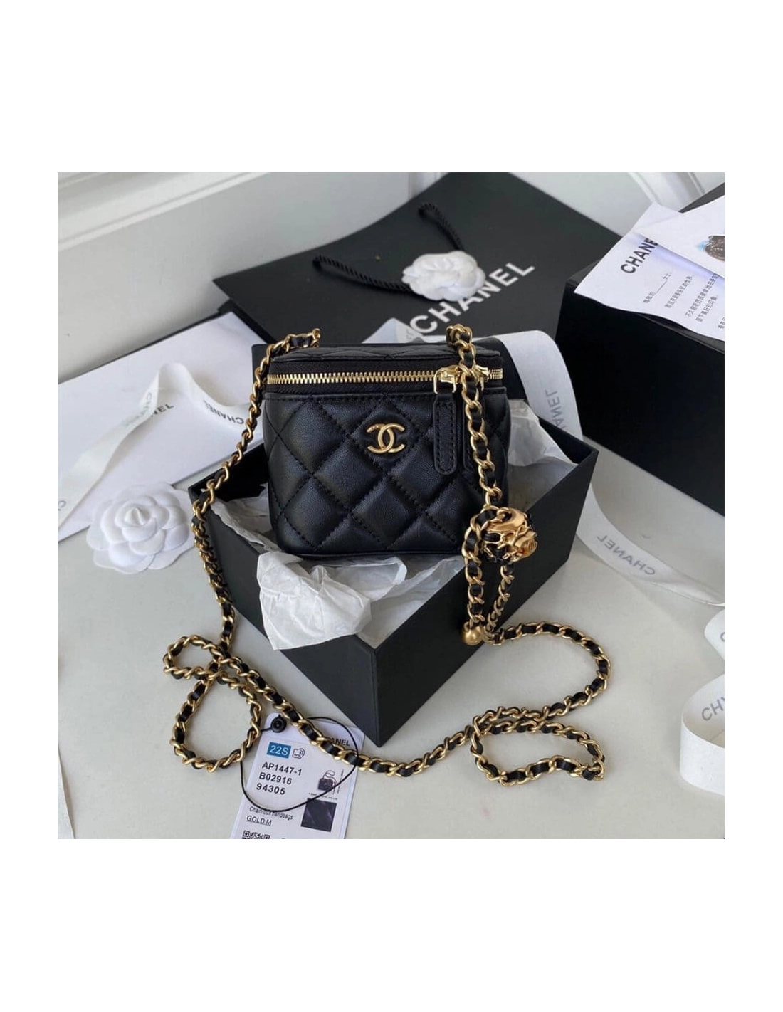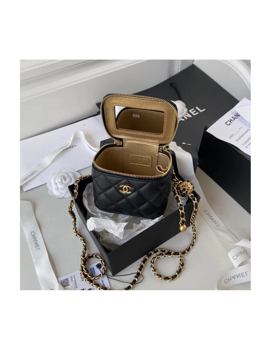 New in stock CHANEL Chanel Mini Square Pearl Crush Flap Bag Black Lambskin Brushed Gold Hardware Chanel $210.00 Add to cart