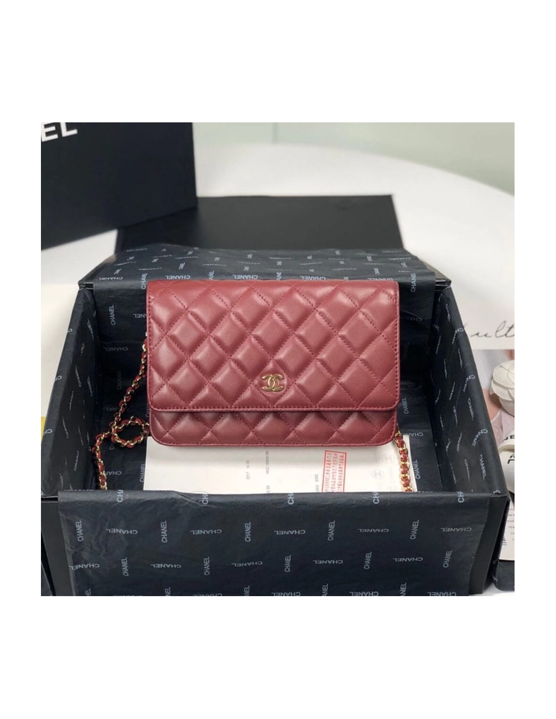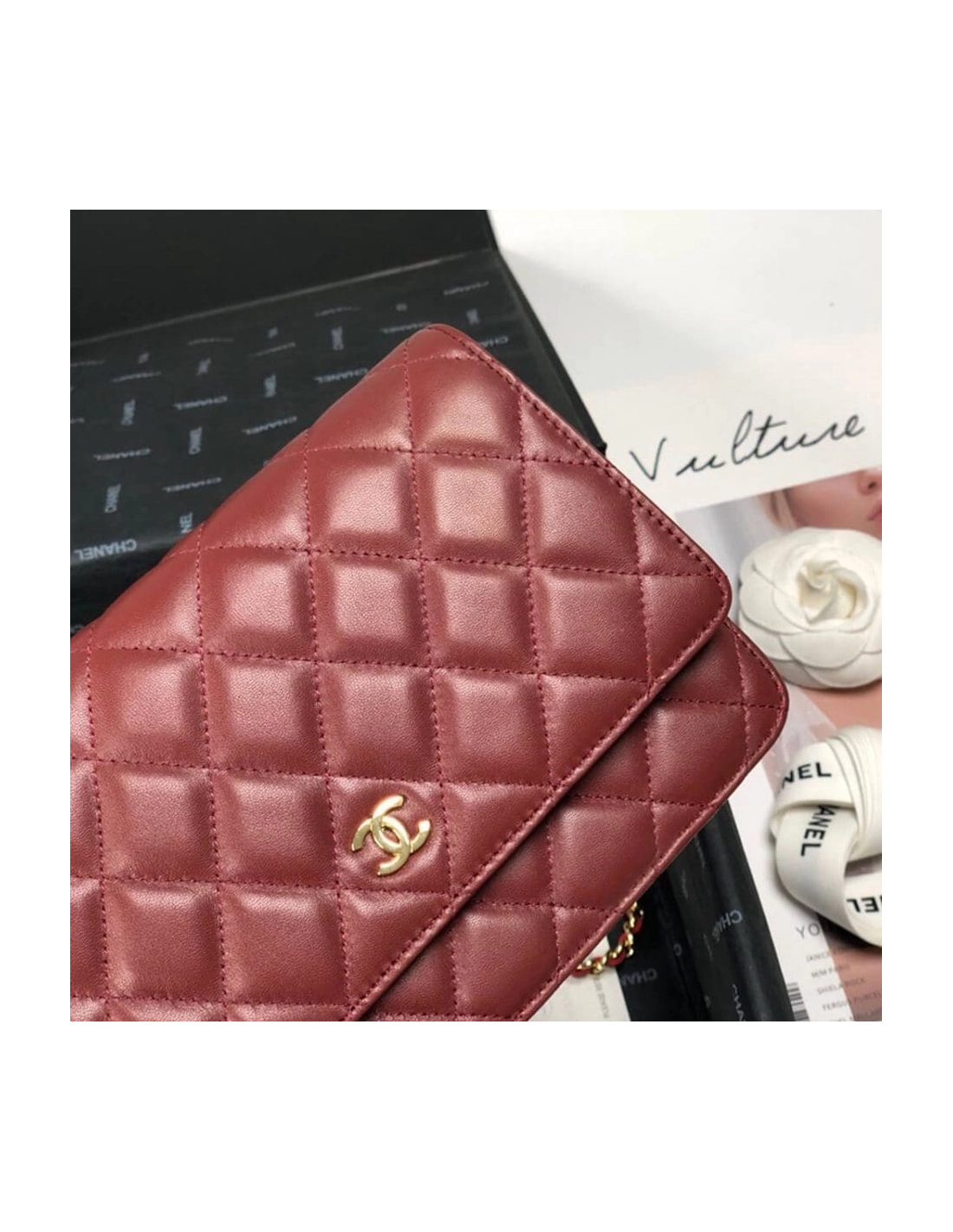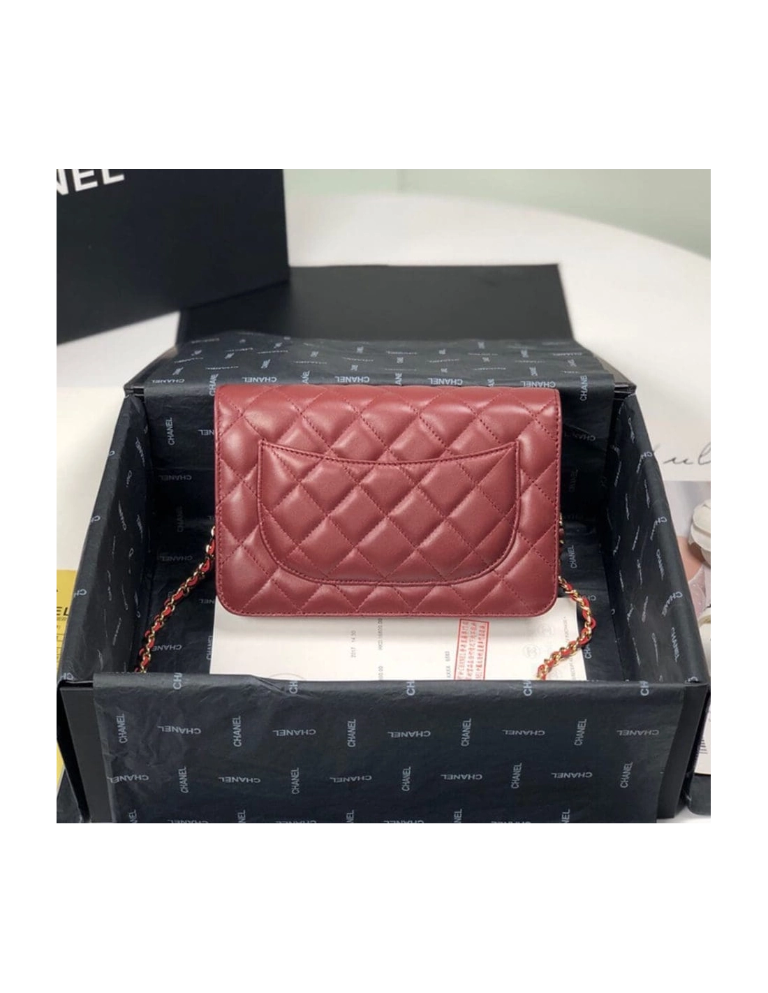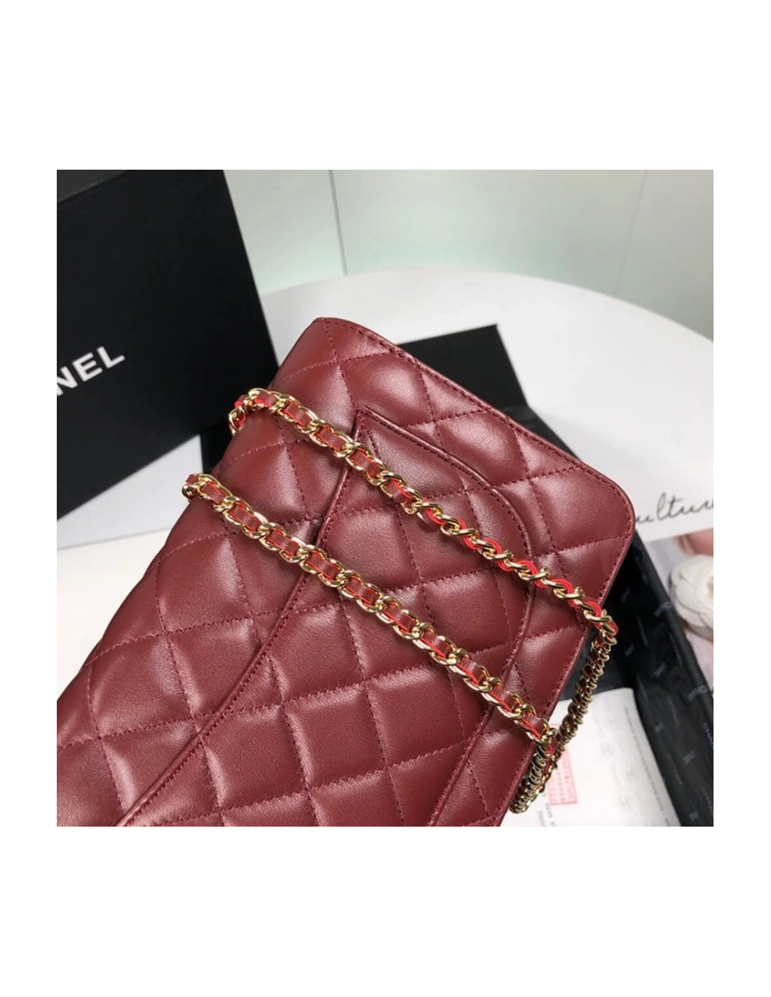 CHANEL Lambskin Quilted Medium Double Flap Burgundy