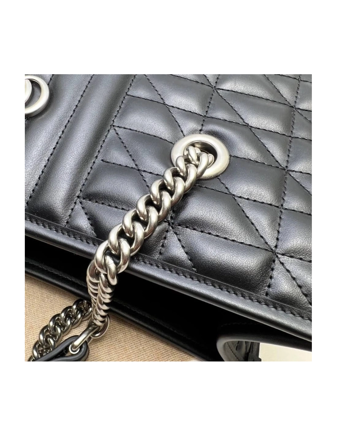 Black matelasse leather