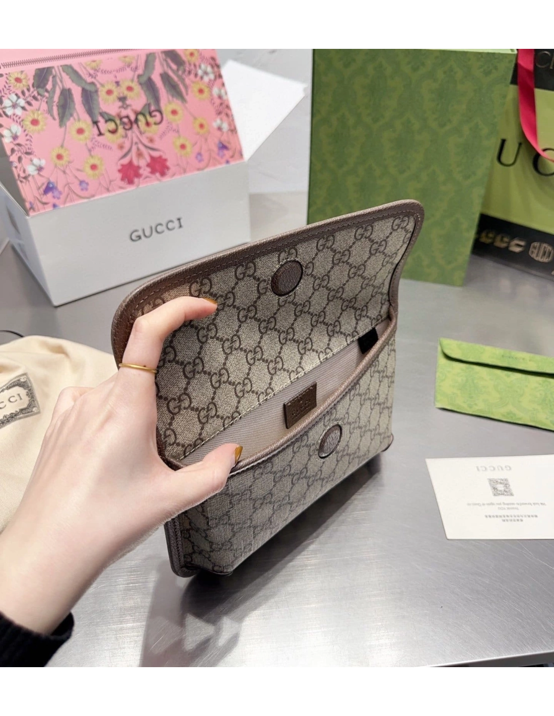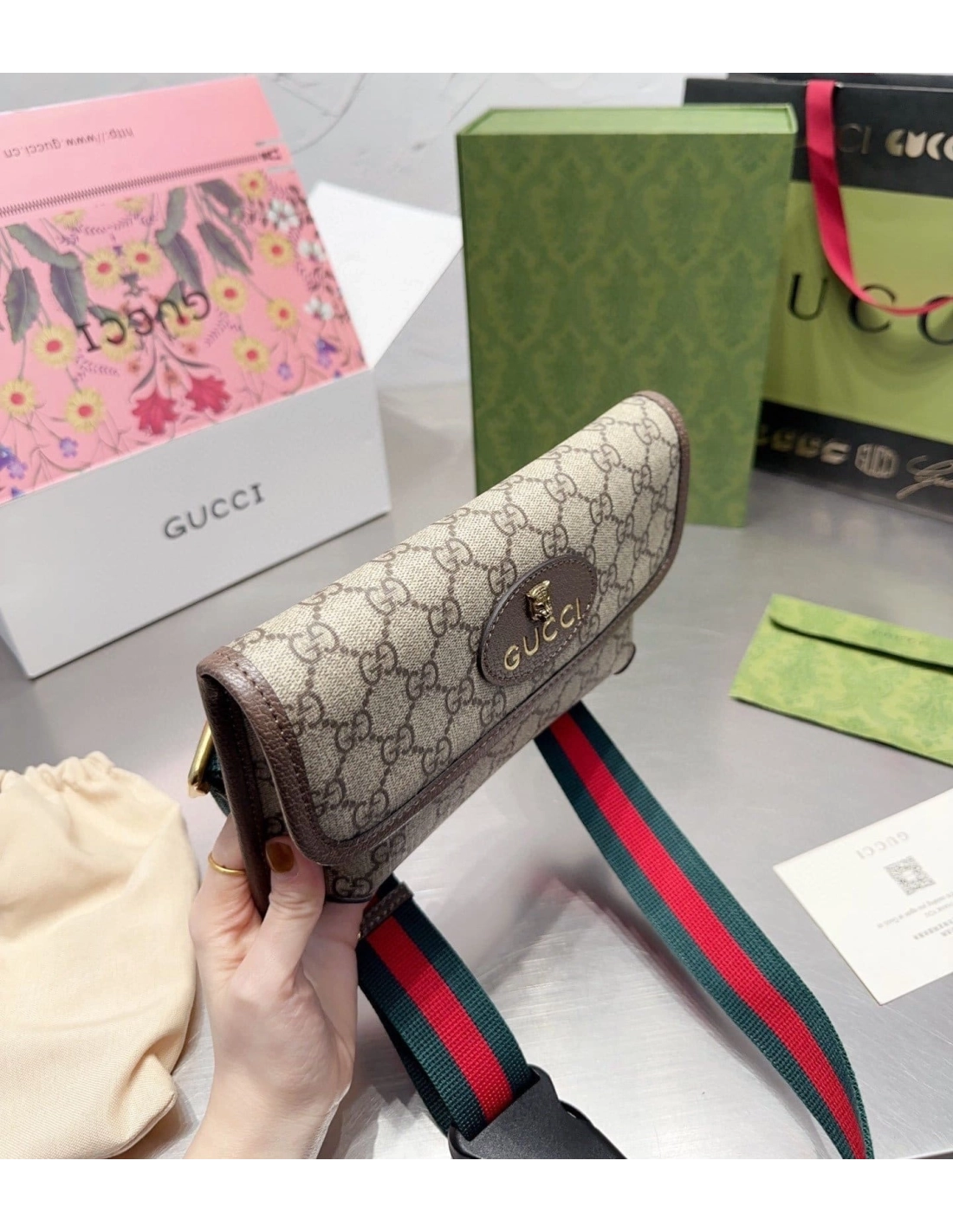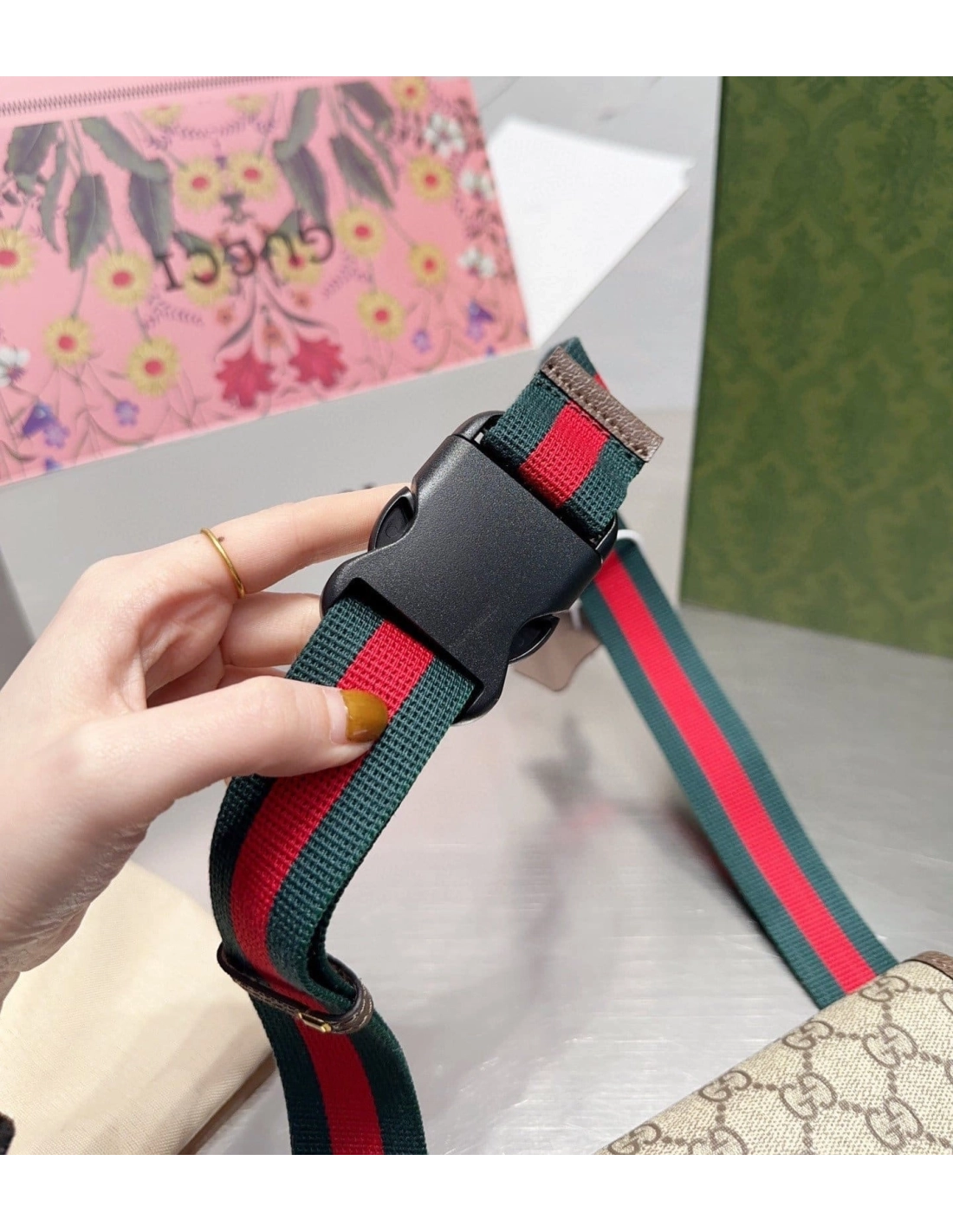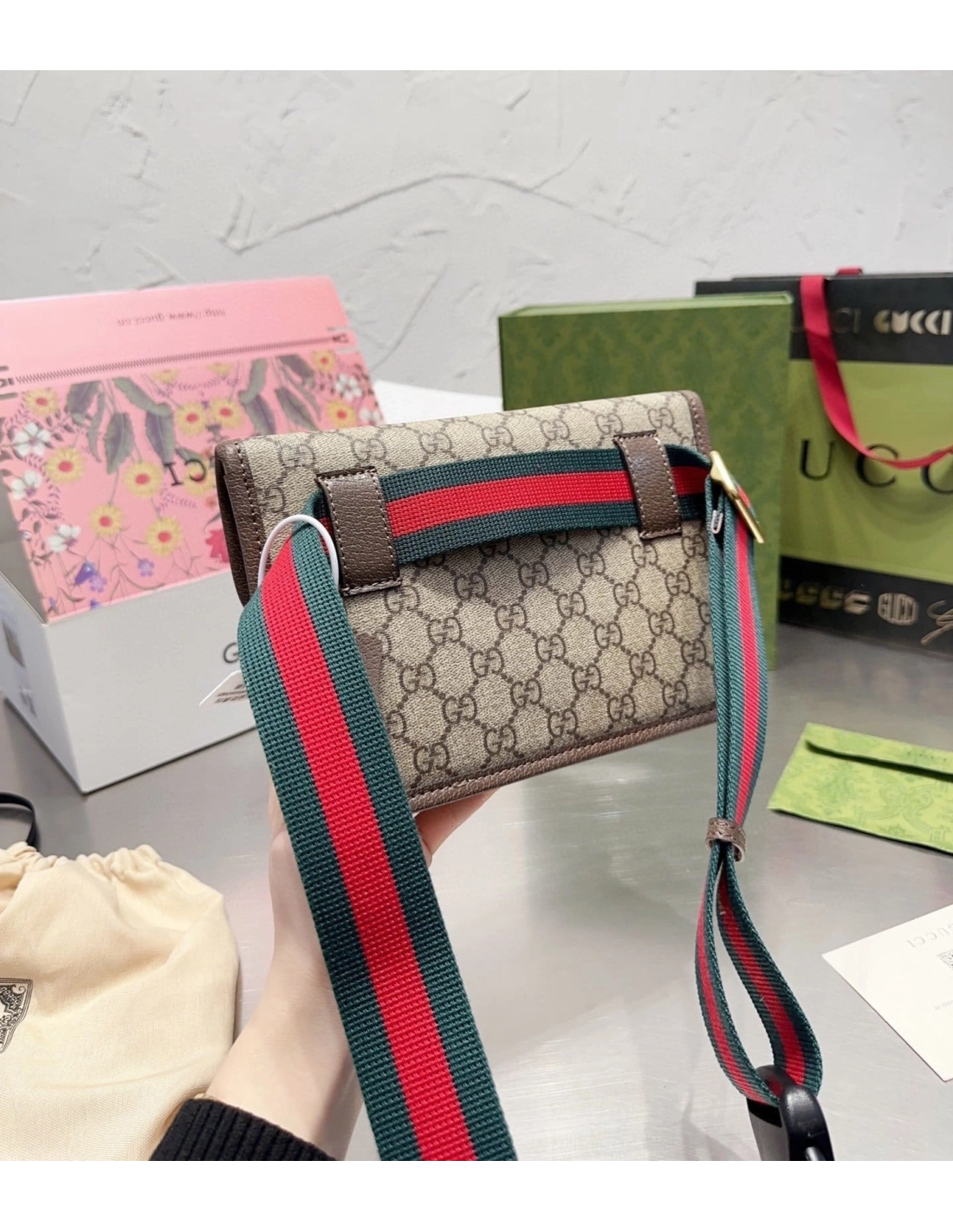 The belt bag in GG Supreme has a retro influenced design. Trimmed with leather, the style is meant to be worn along the waist, securing with a Web strap and buckle closure.