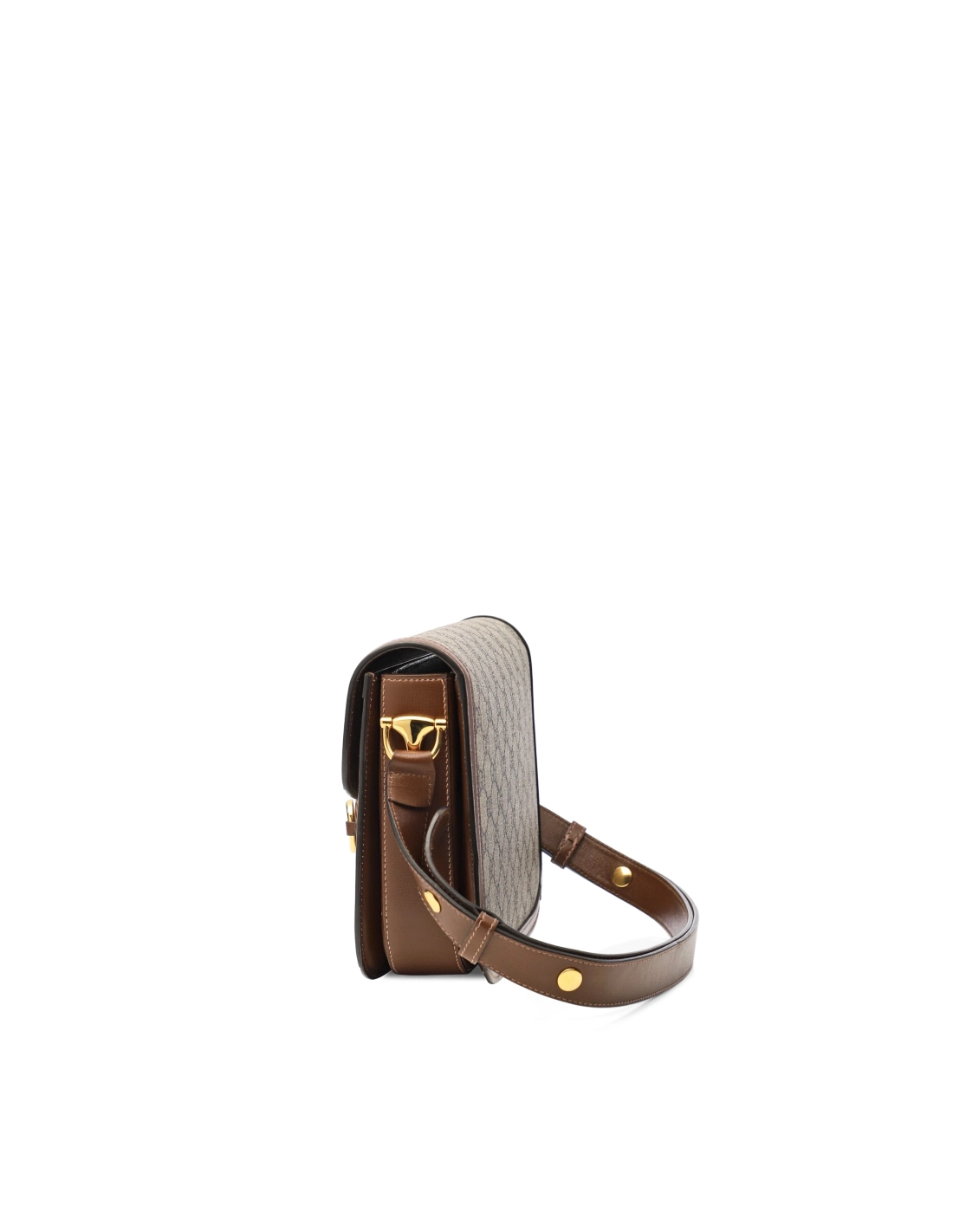 Horsebit 1955 bag is recreated from an archival design. With the same lines and forms first introduced over six decades ago, the accessory unifies the original details with a modern spirit, highlighting the Horsebit. Part of Guccis genetic code, the double ring and bar design has been established as one of the most distinctive elements among the House symbols borrowed from the equestrian world. Presented on a small flap shoulder bag, the hardware is paired with the Houses monogram fabric and completed with a special mechanism that adjusts the length of the shoulder strap so it can be carried on one shoulder or cross body. Pieces with versatile ways to wear and style embrace each person who is part of the Houses individual spirit.
