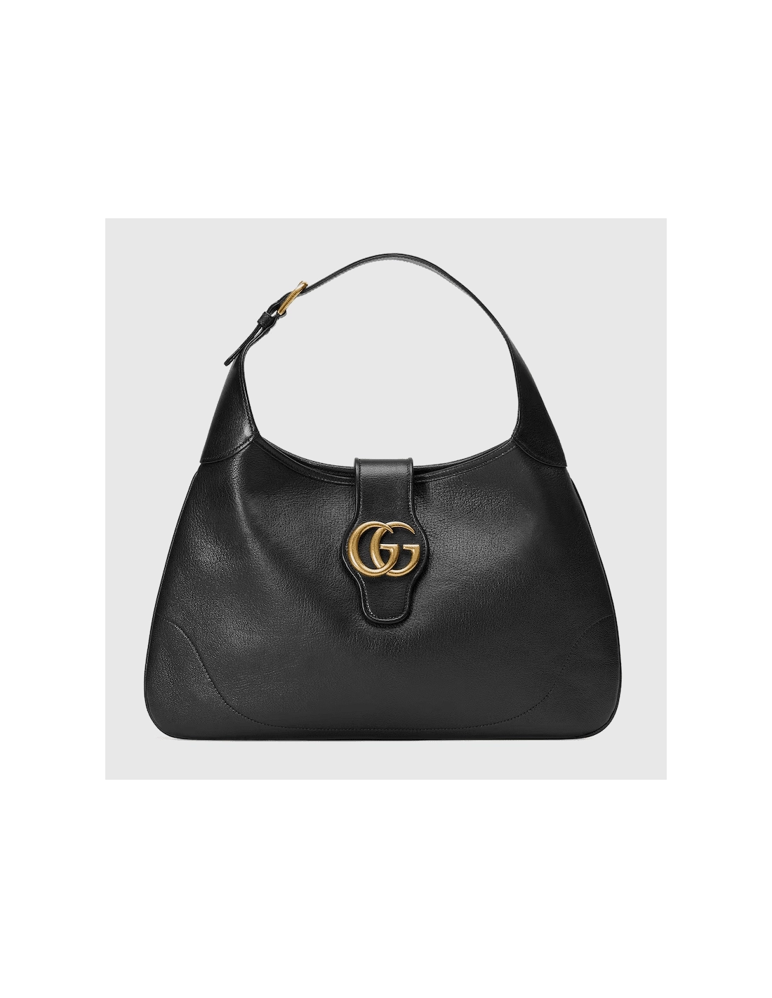 The Gucci Cosmogonie collection was presented against the backdrop of the historic Castel del Monte in Italy. The show brought together aesthetics from distant eras and geographies, and linked elements form the past with the present. This new crescent-shaped shoulder bag was shown on the runway and was inspired by the Houses archives, it is crafted in soft leather and features the Double G emblem¡ªa code originally introduced in the 1970s.