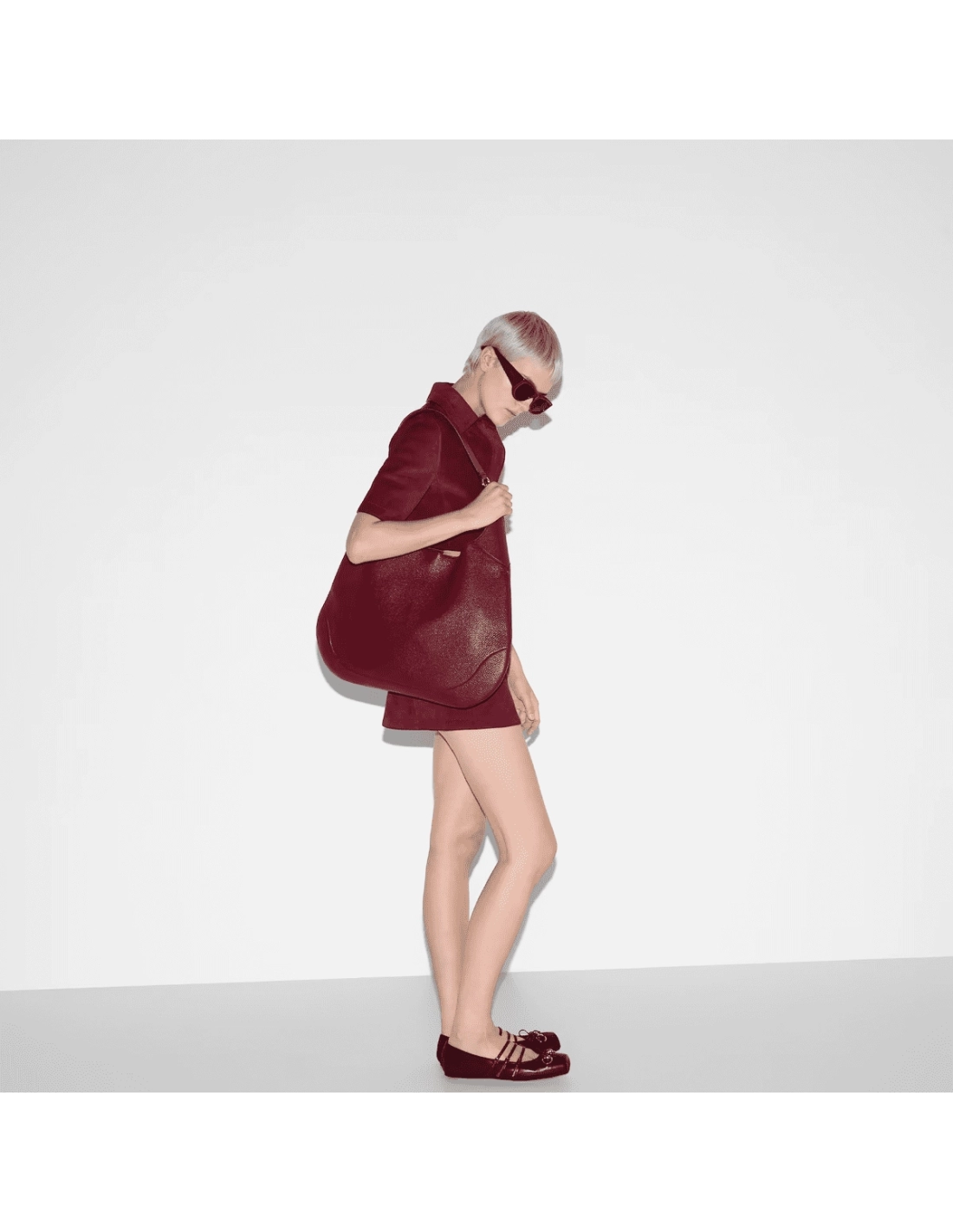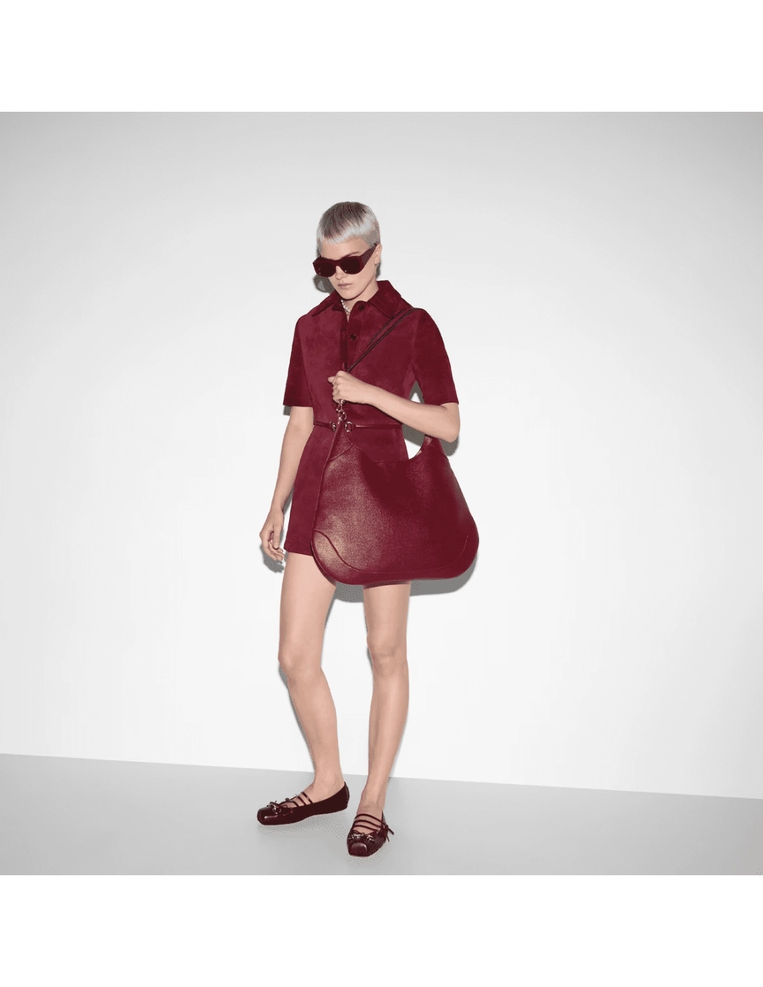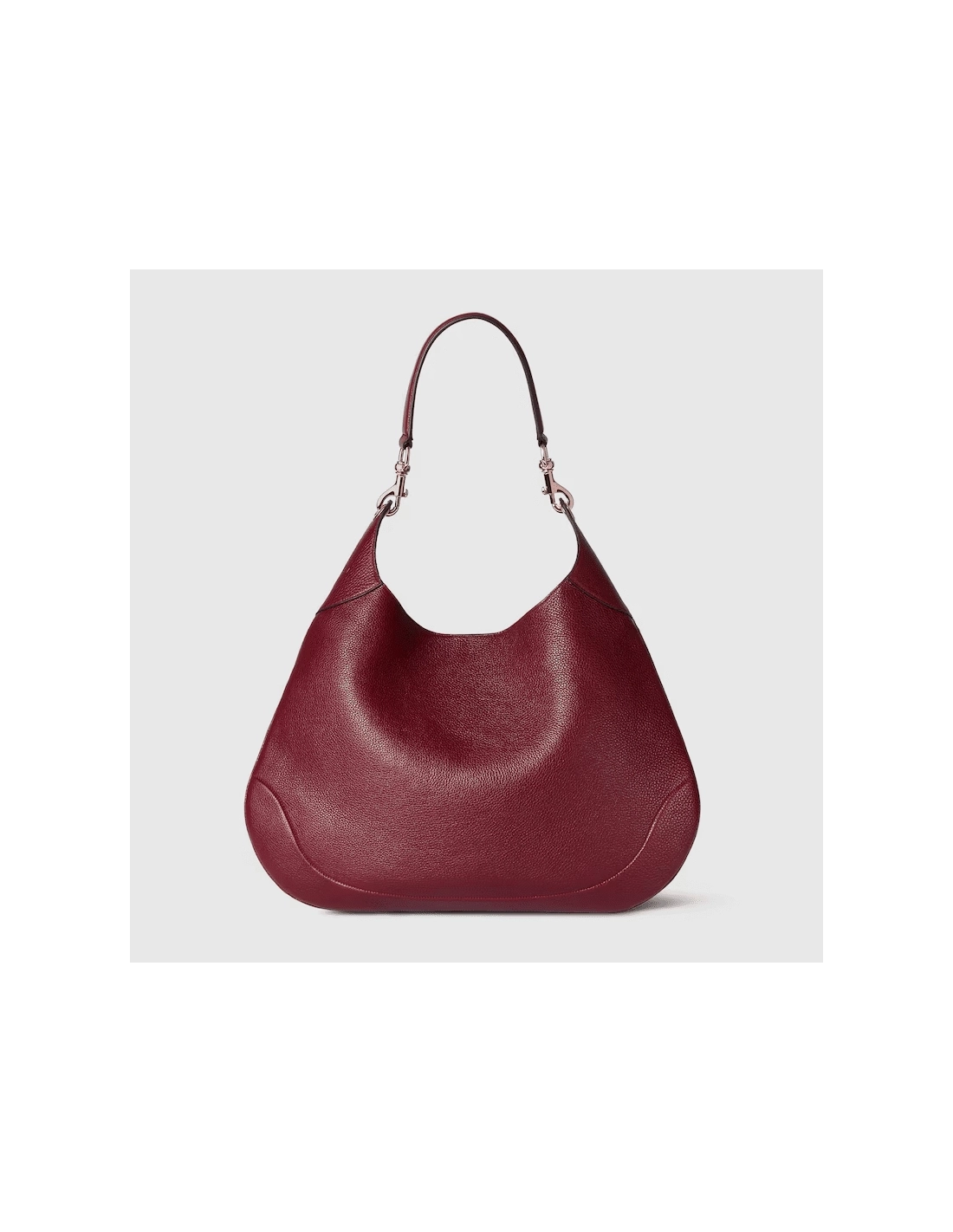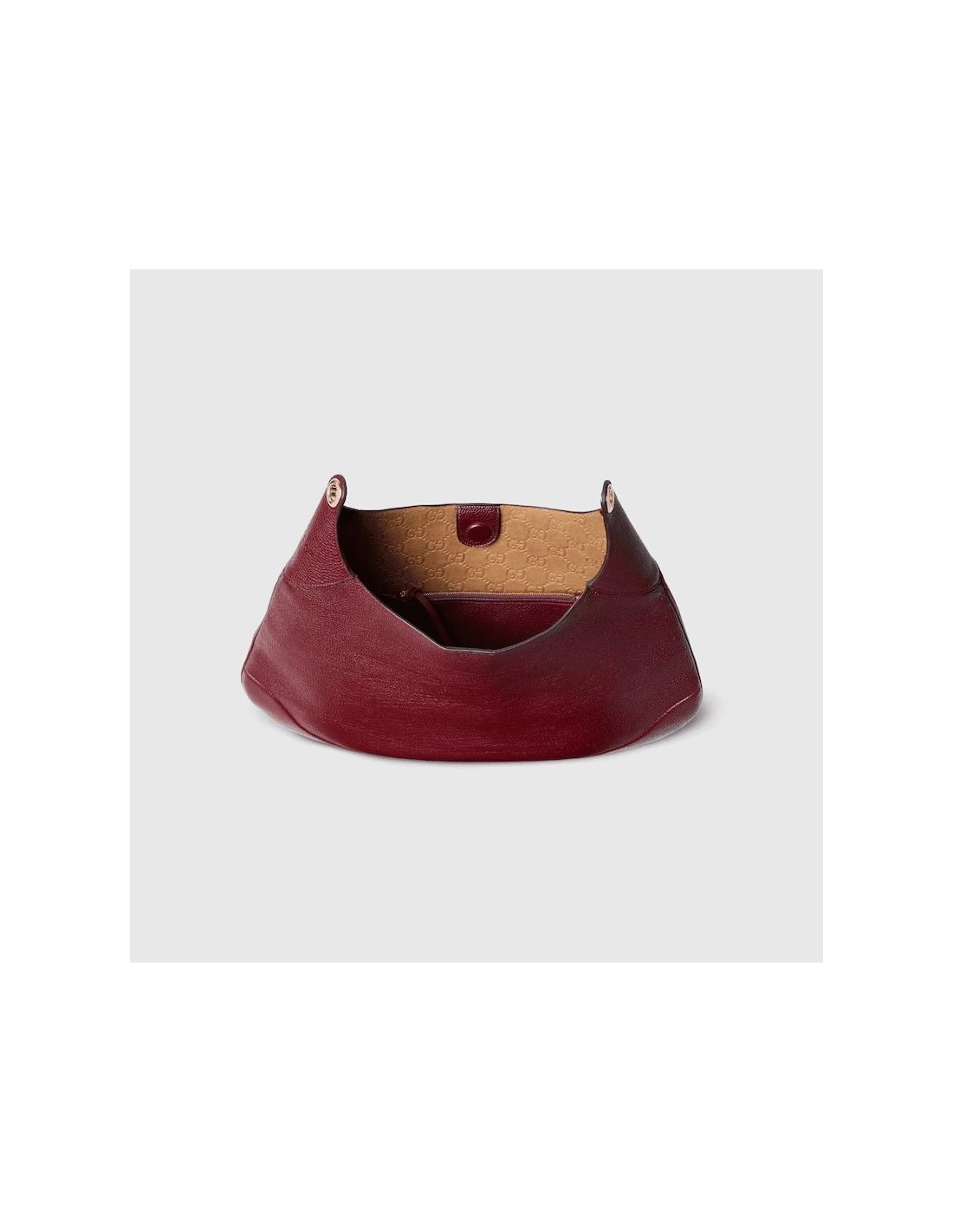 Introducing the Gucci B, which draws inspiration from a 1950s archival style. This medium shoulder bag, embodying the essence of its mid-20th century design origins, is crafted from soft grainy leather which drapes on the body.