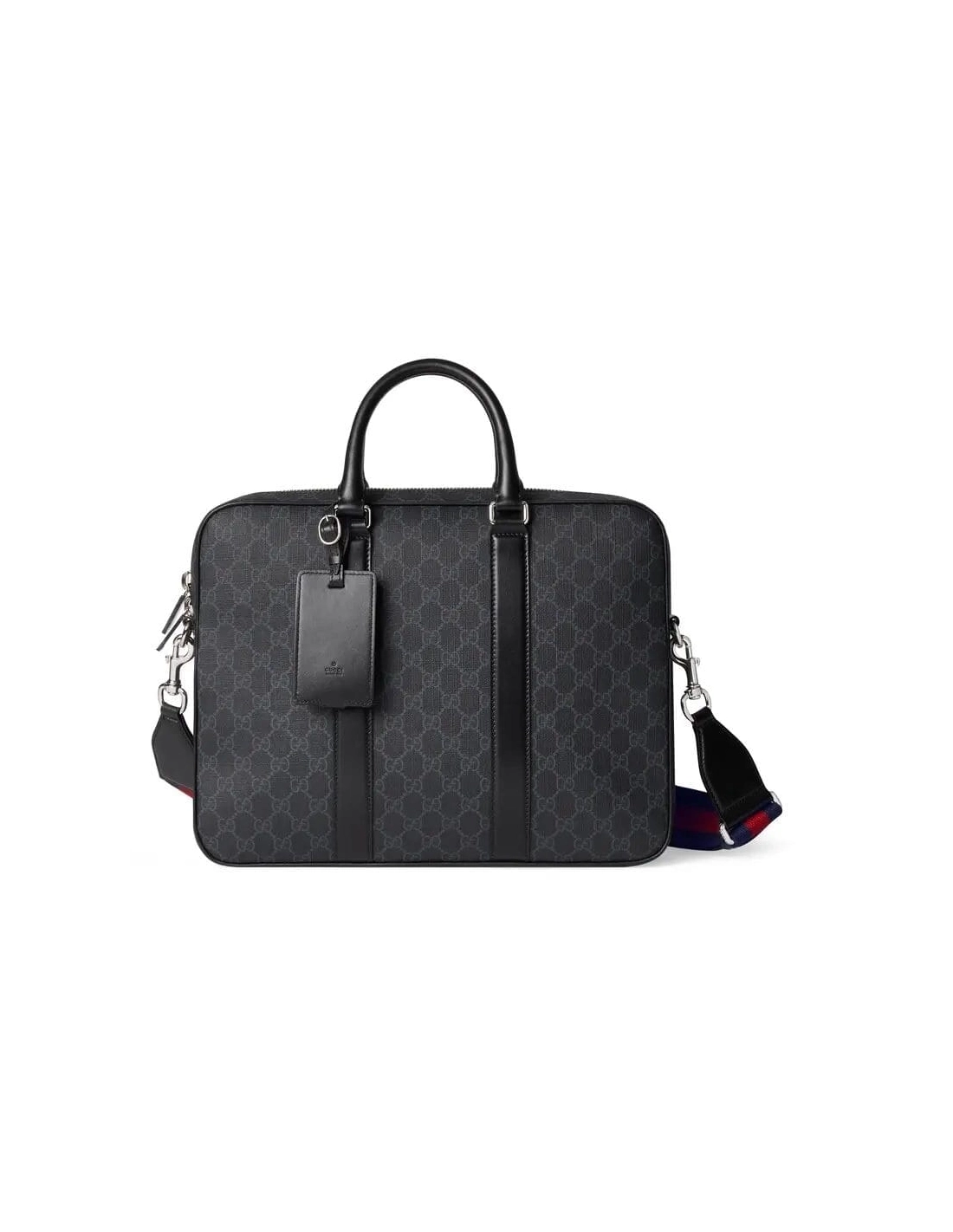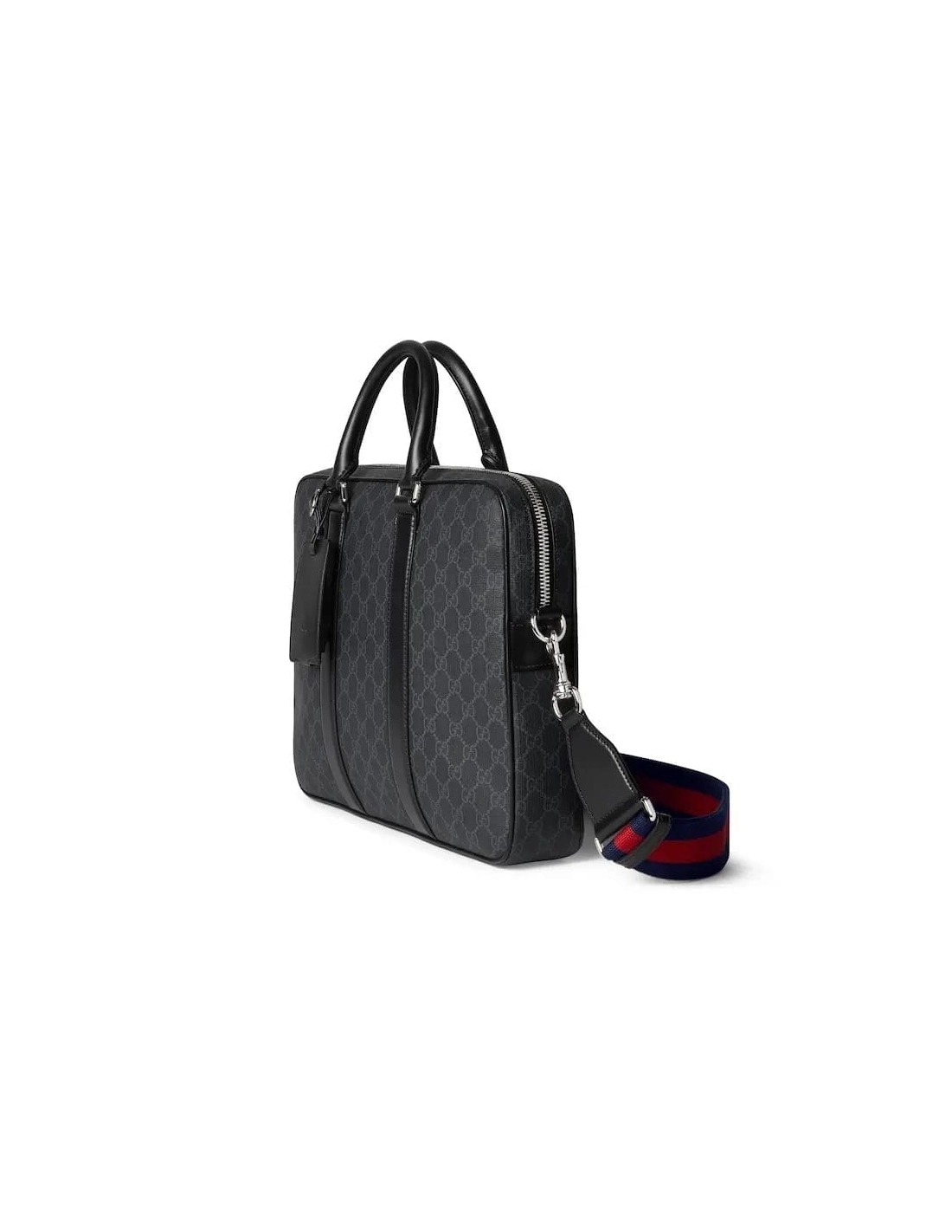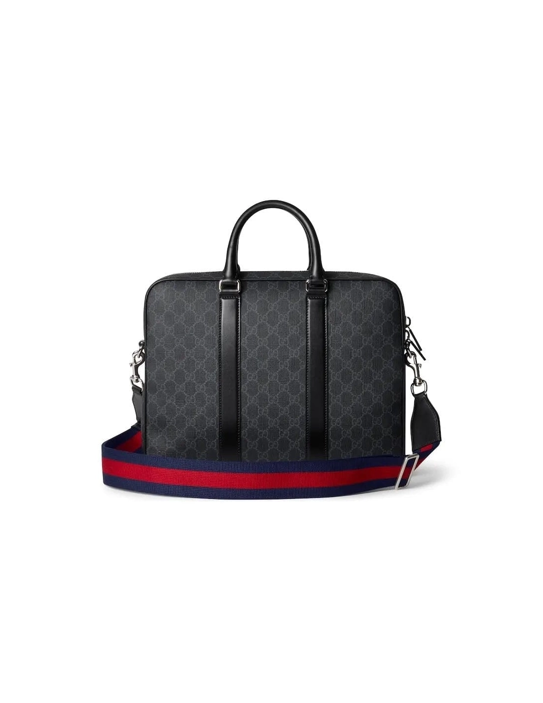 The classic GG Supreme canvas is known for its softness and flexibility, and is one of the brands classic fabrics that has never faded. Made from coated microfiber fabric, it is presented in all black, giving this briefcase a unique appeal. Tonal leather piping enhances the silhouette, while the archive striped web adds a touch of color.
