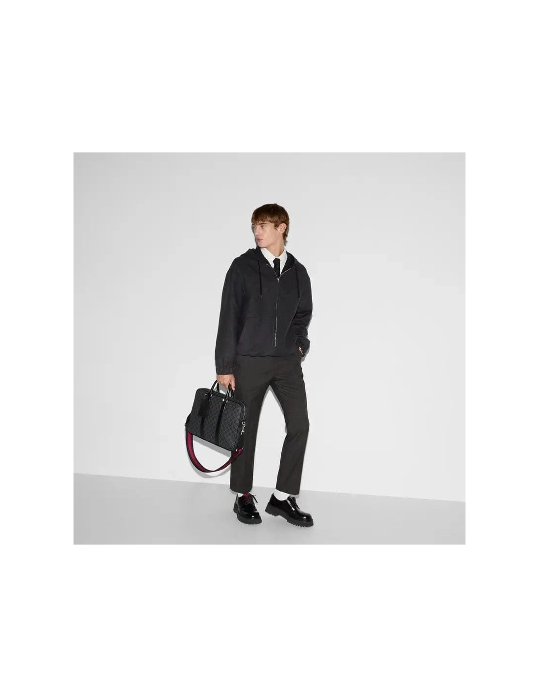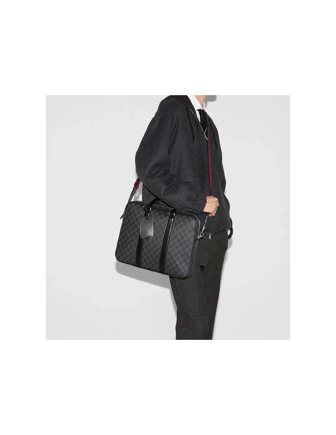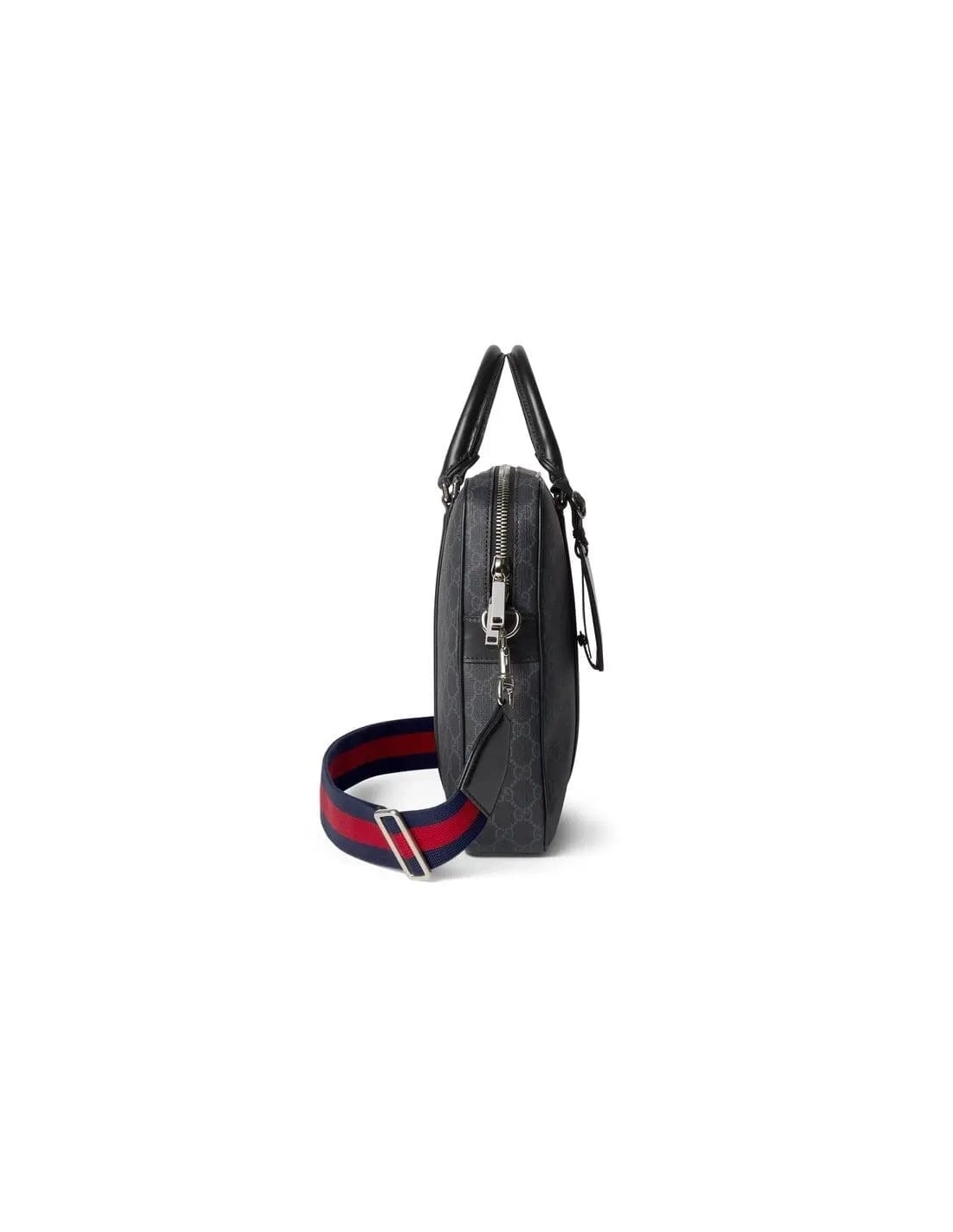 The classic GG Supreme canvas is known for its softness and flexibility, and is one of the brands classic fabrics that has never faded. Made from coated microfiber fabric, it is presented in all black, giving this briefcase a unique appeal. Tonal leather piping enhances the silhouette, while the archive striped web adds a touch of color.