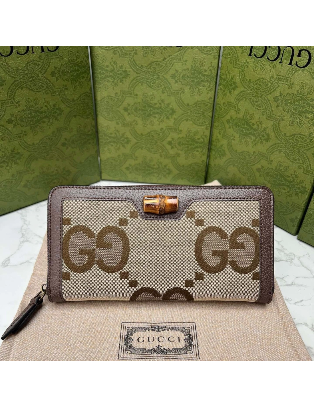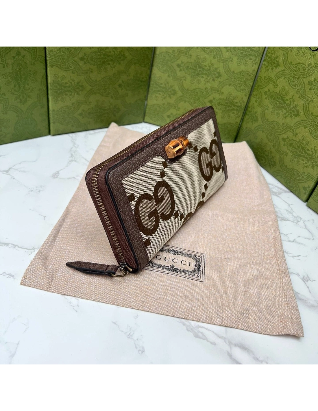 Combining recognizable elements of the House, this zip around wallet is defined by its bamboo hardware and monogram details. Crafted from jumbo GG canvas, the accessory adds a contemporary twist to the design by playing with dimensions.