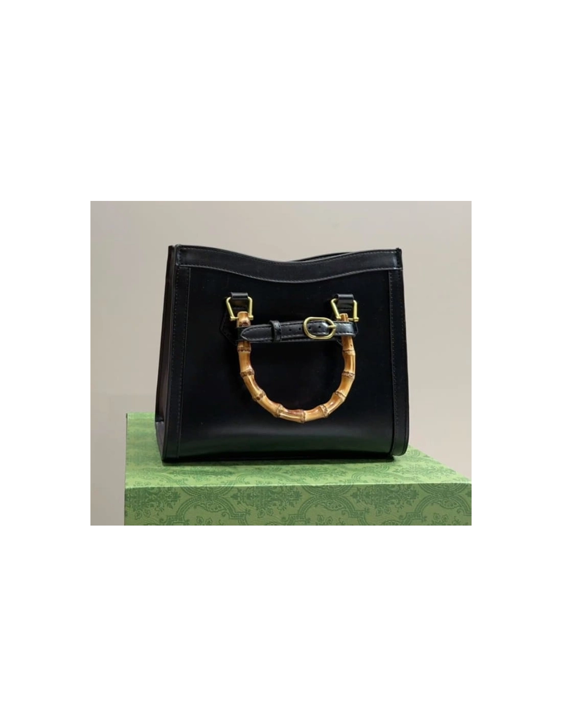 An evolution of a bamboo handle tote first introduced in 1991, the Gucci Diana represents the notion of style in constant evolution and is reimagined with removable, neon leather belts¡ªa nod to the functional bands used to keep the handles in shape.?Here, a mini version of the emblematic style is presented in black leather.