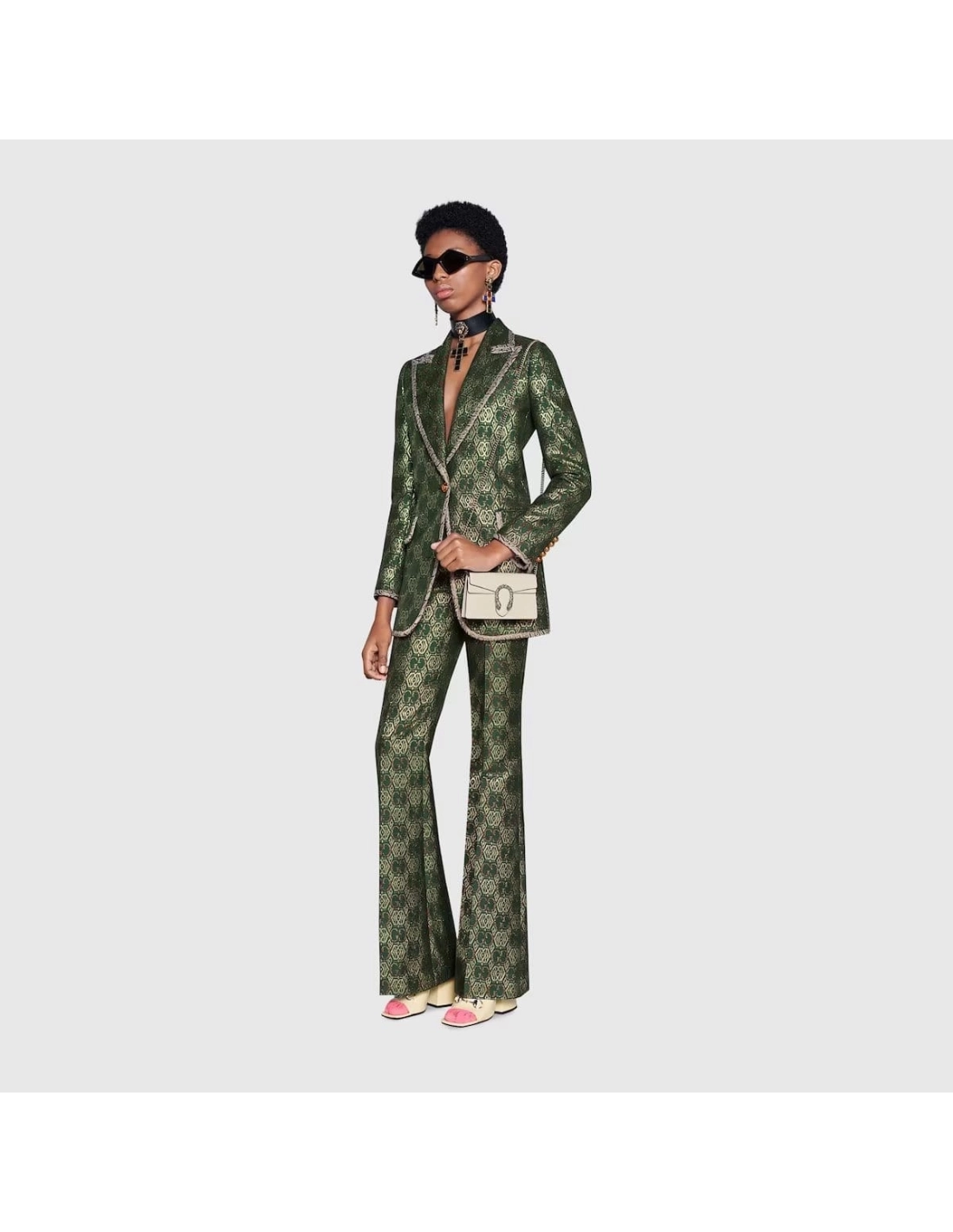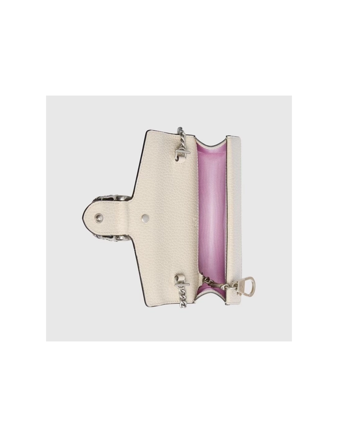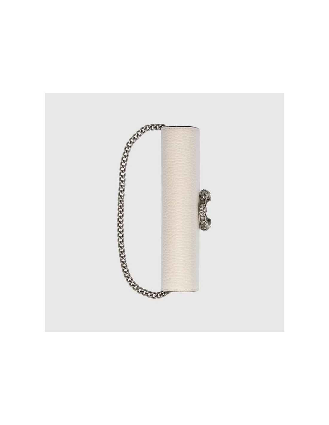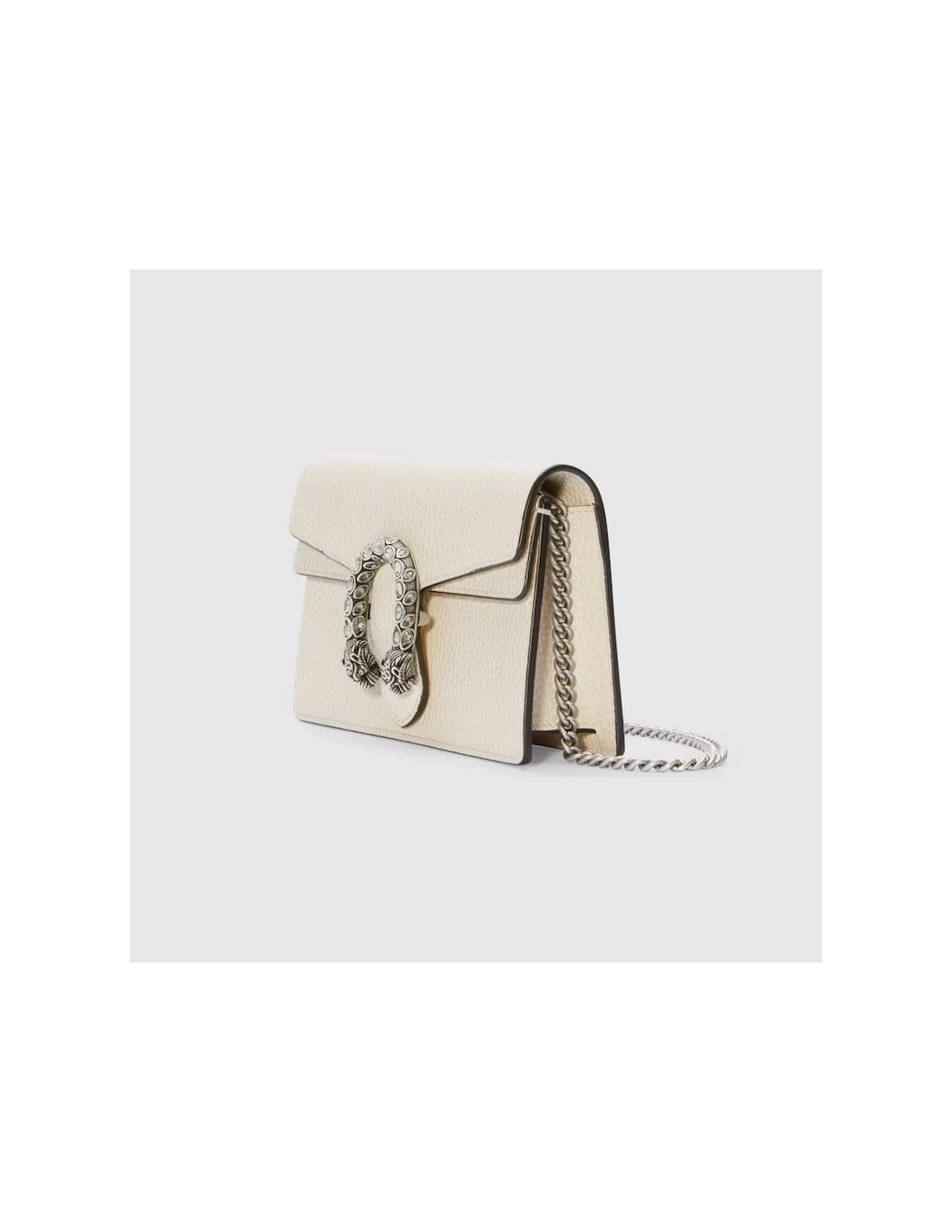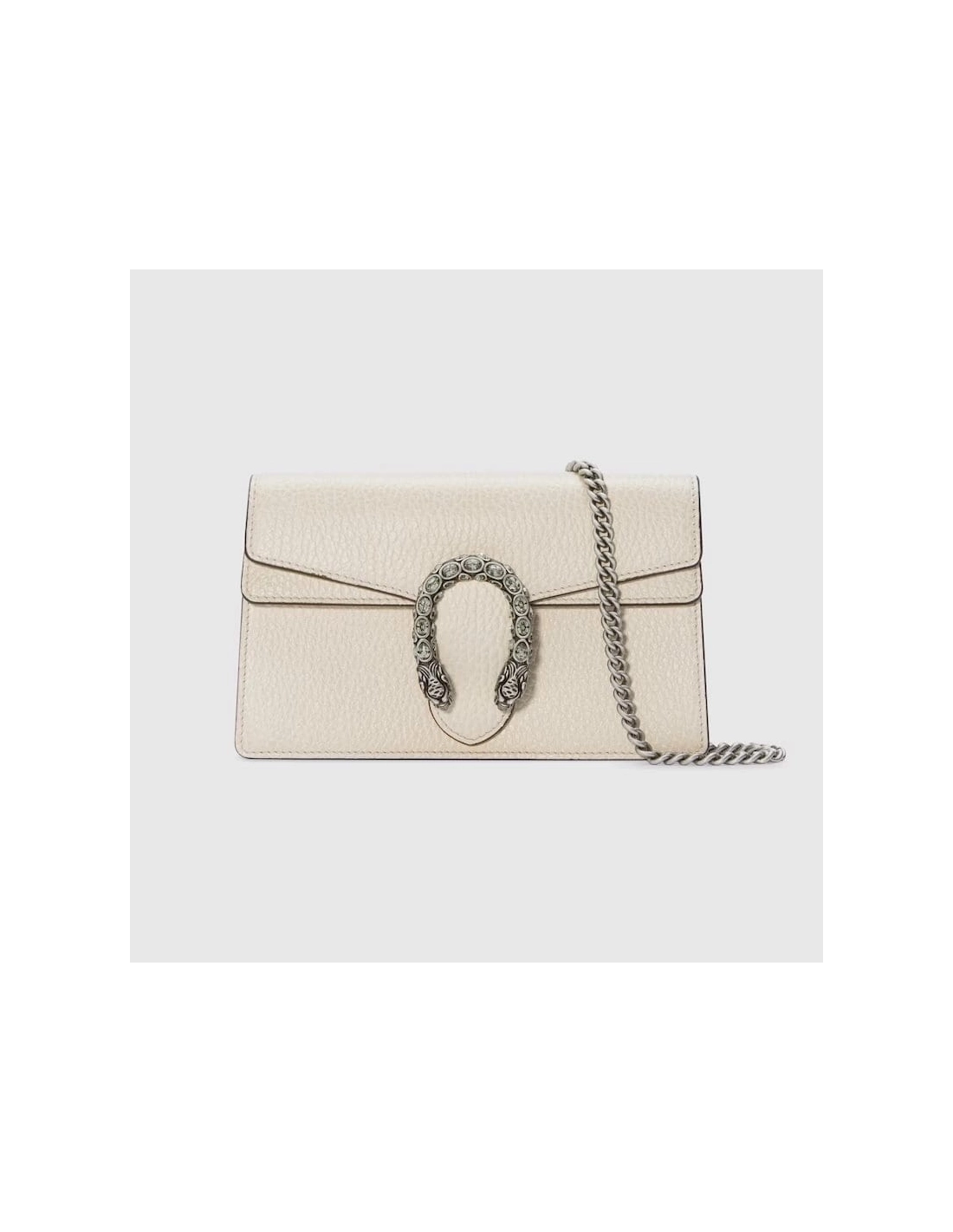 Made in resistant textured leather, the structured Dionysus super mini bag is completed with a tiger head spur closure, enriched with Swarovski crystal stones. Equipped with a key ring that can be used to attach this bag to a separate larger bag.