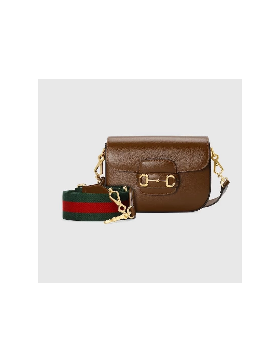 Mini versions of the Gucci Horsebit 1955 add a contemporary twist to the vintage inspired line. Enriched with two different shoulder straps, the brown leather mini bags character transforms from understated elegance with a tonal leather strap to a strong logo feel thanks to a red and green Web option.
