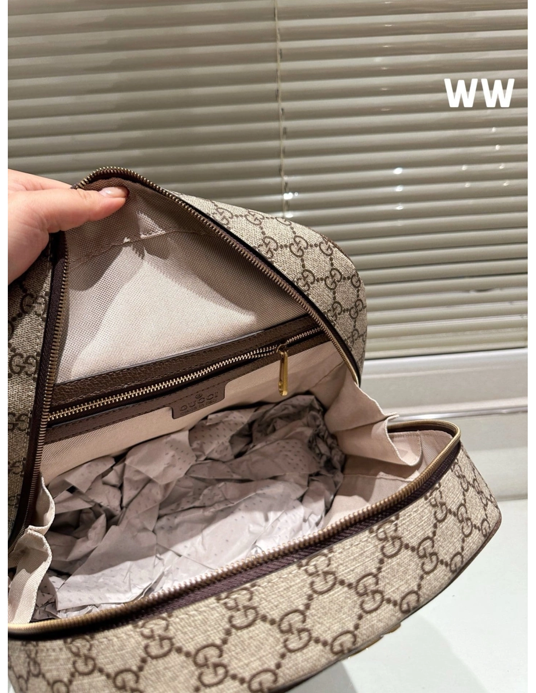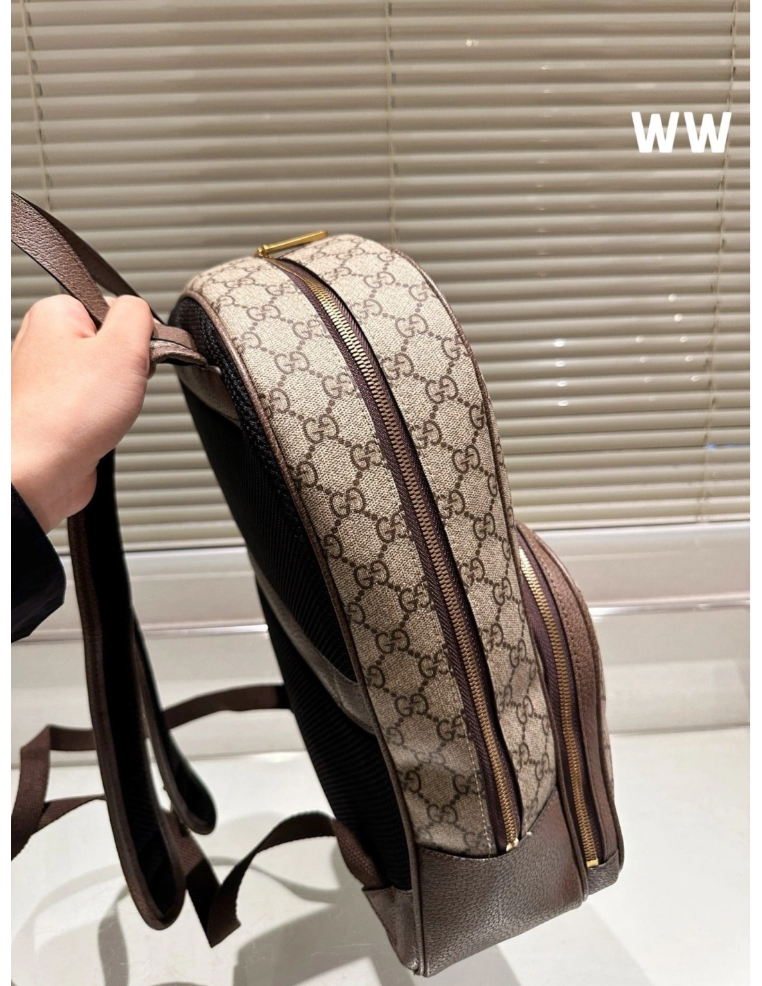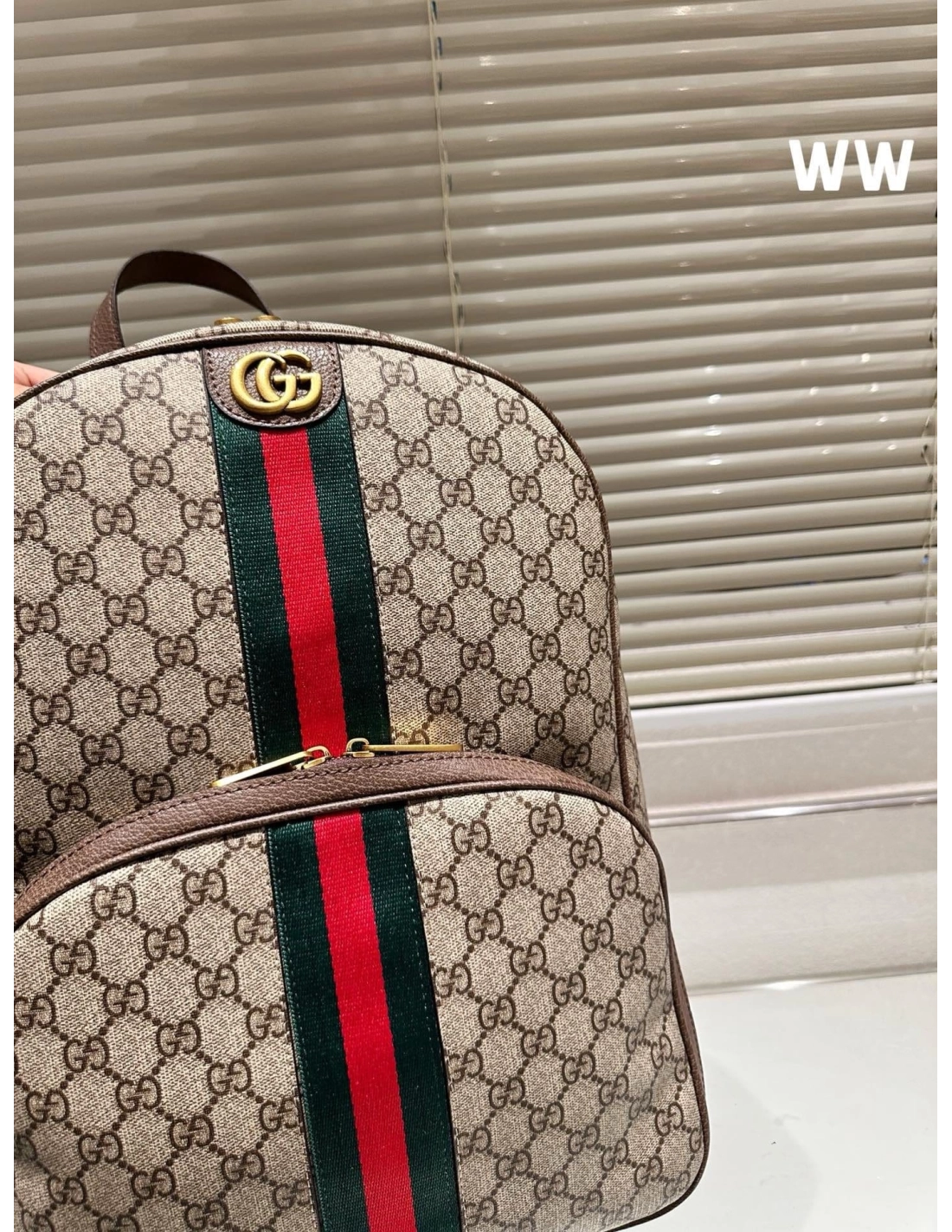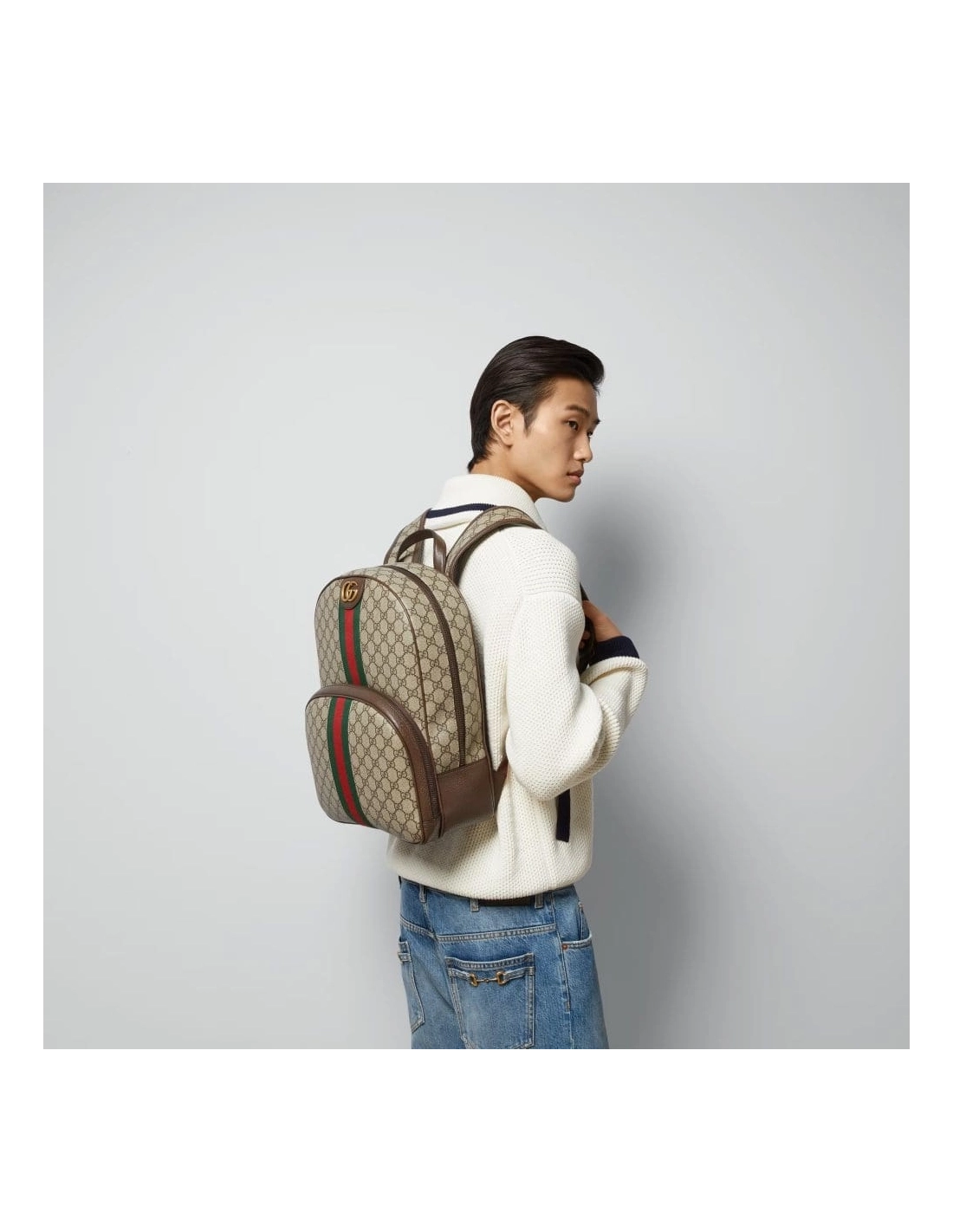 The Web stripe and Double G hardware, distinctive design elements synonymous with the Ophidia line, continue to enrich new leather accessories year after year. This backpack appears as part of the offering for the mens Spring Summer 2024 collection.