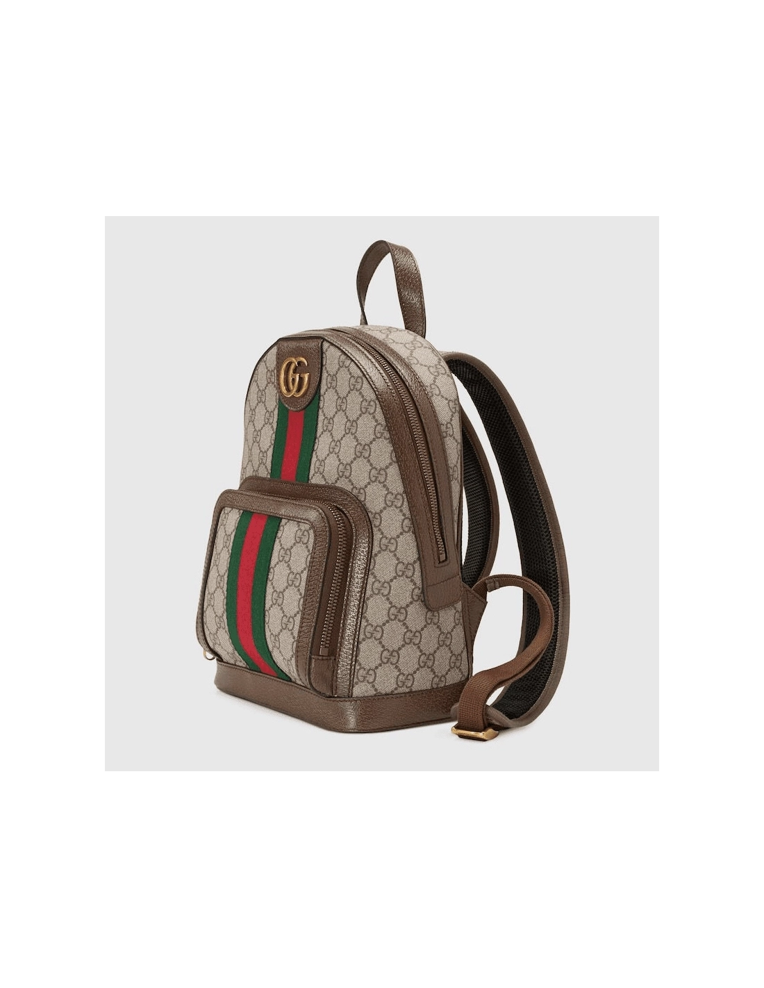 A versatile style that can be used as a travel accessory or a bookbag, the backpack continues to be an important silhouette in the world of Gucci, offered in a variety of sizes and interpretations. Part of the ever-expanding world of Ophidia, its crafted in GG Supreme canvas with textured leather trim. The inlaid green and red Web detail and Double G hardware are steeped in the Houses rich history, referencing symbols incorporated in Gucci collections since the 50s.
