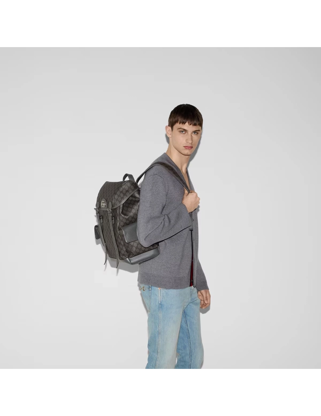 The Gucci color palette is constantly evolving to include more refined hues. New colorways and combinations result in the reinvention of signature styles with a contemporary feel. This Ophidia backpack is presented in a grey and black variation of the GG Supreme canvas, reflecting Guccis ability to modernize signature design elements.