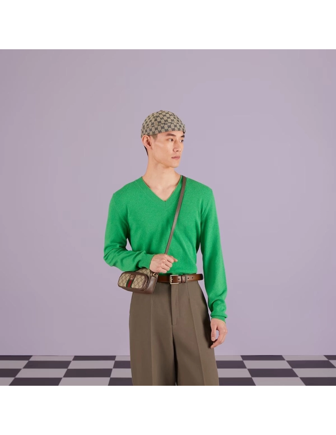 The world of Ophidia is enriched by a contemporary mini bag, crafted from the timeless mix of beige and ebony GG Supreme canvas. The logo appeal of this style is deepened by the green and red Web stripe and Double G hardware¡ªarchival details that celebrate Guccis history.