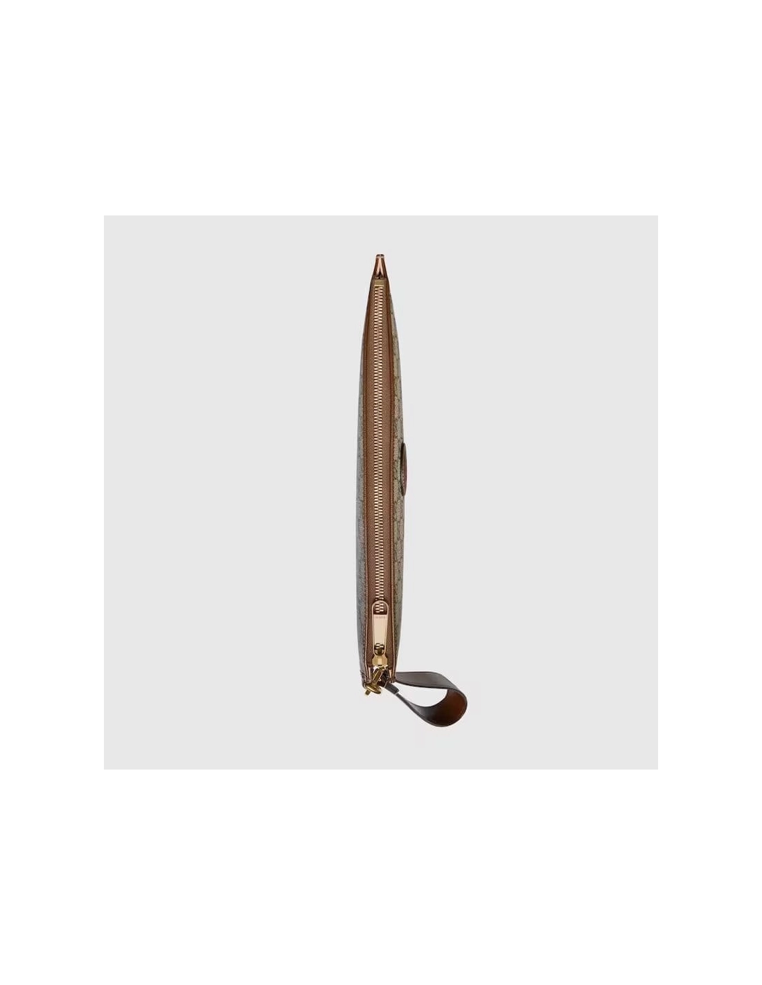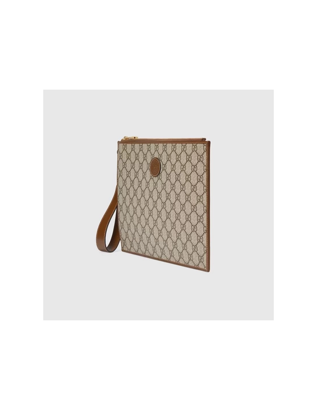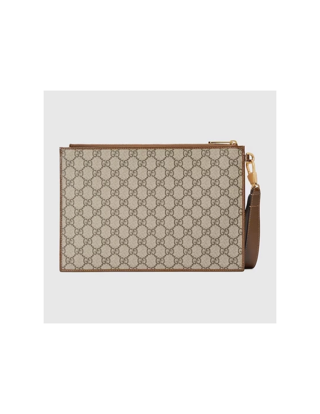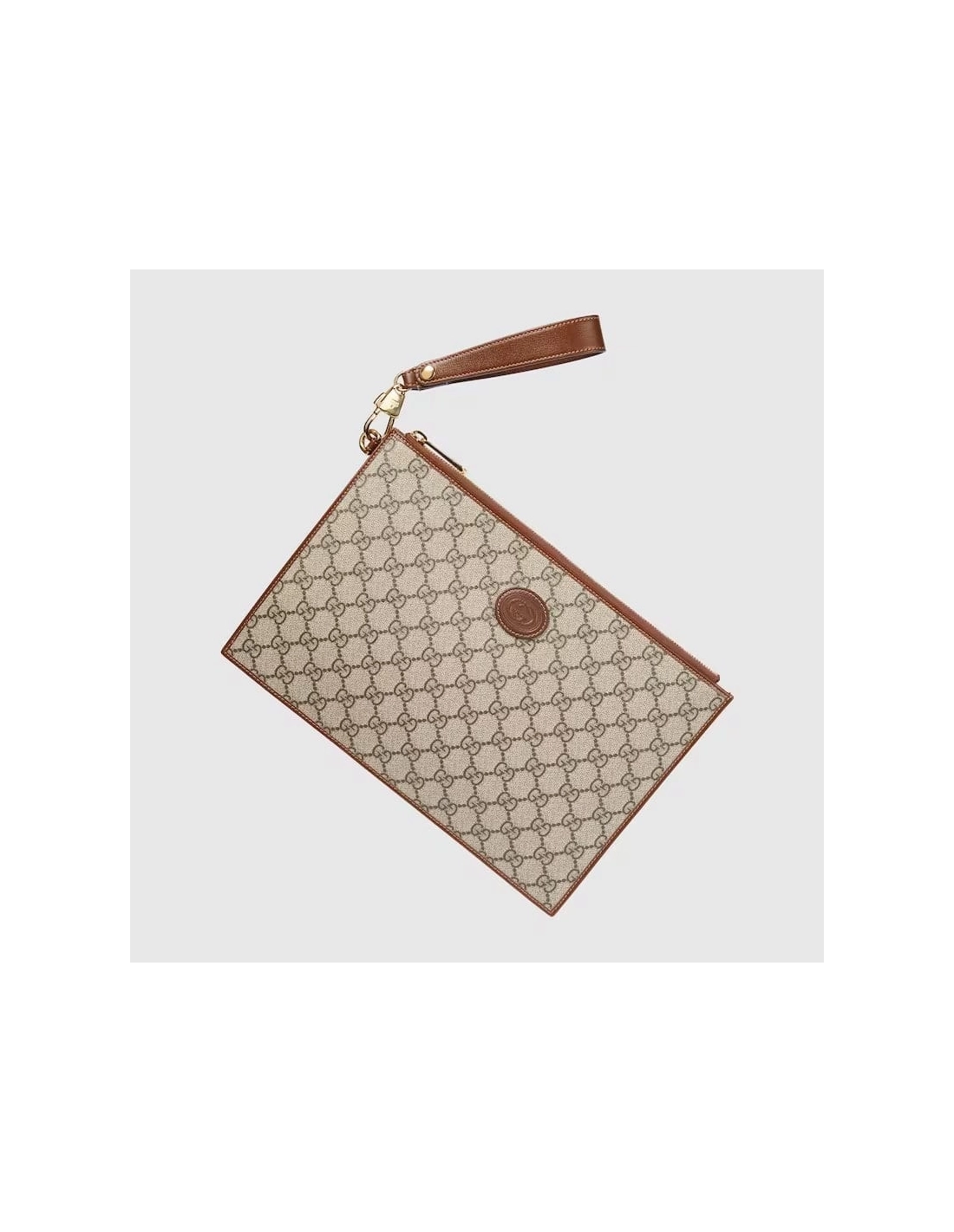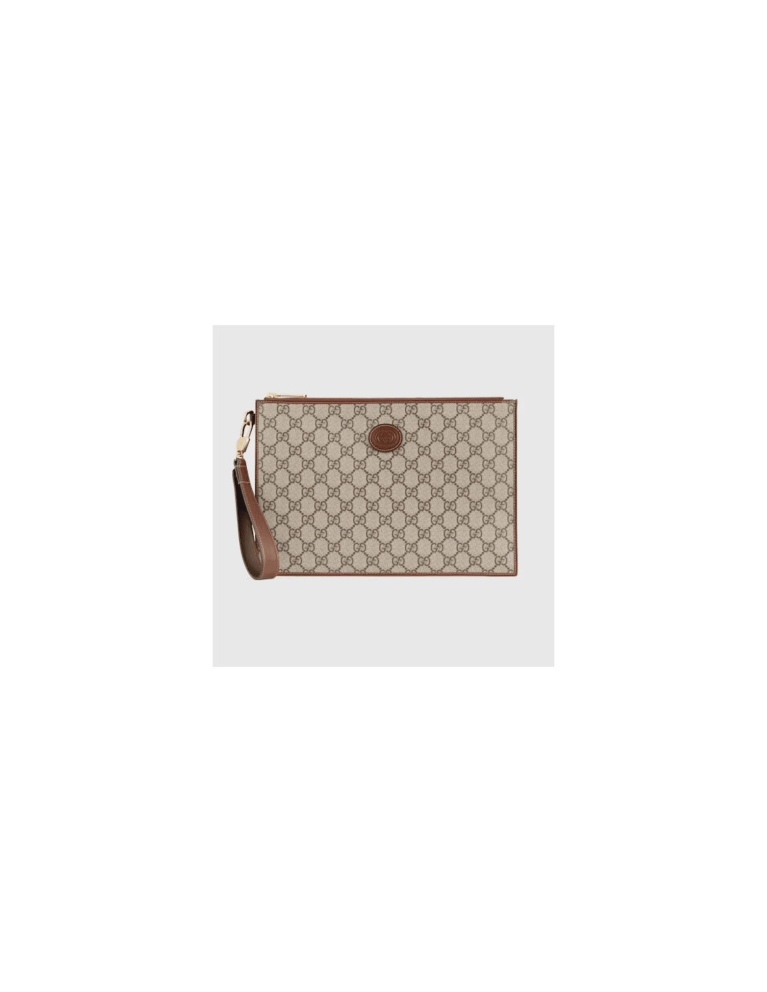 A signature fabric, GG Supreme canvas has become a staple throughout the Gucci universe. Reinterpreted through the Gucci lens, the material appears throughout the latest collections. Here, this pouch is crafted with the all-over monogram motif. Completing the logo feel, a leather Interlocking G tag completes the style.