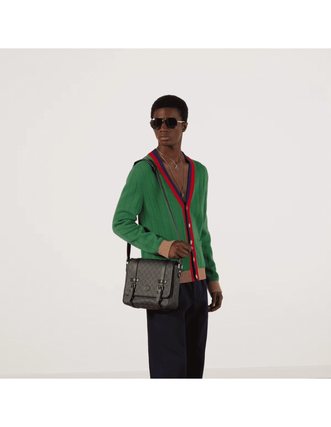 Capturing the original design elements of the first messenger bag, this version emphasizes an interior that is spacious and functional. Crafted from the Houses GG Supreme canvas, the emblematic monogram of Guccio Gucci defines the style.