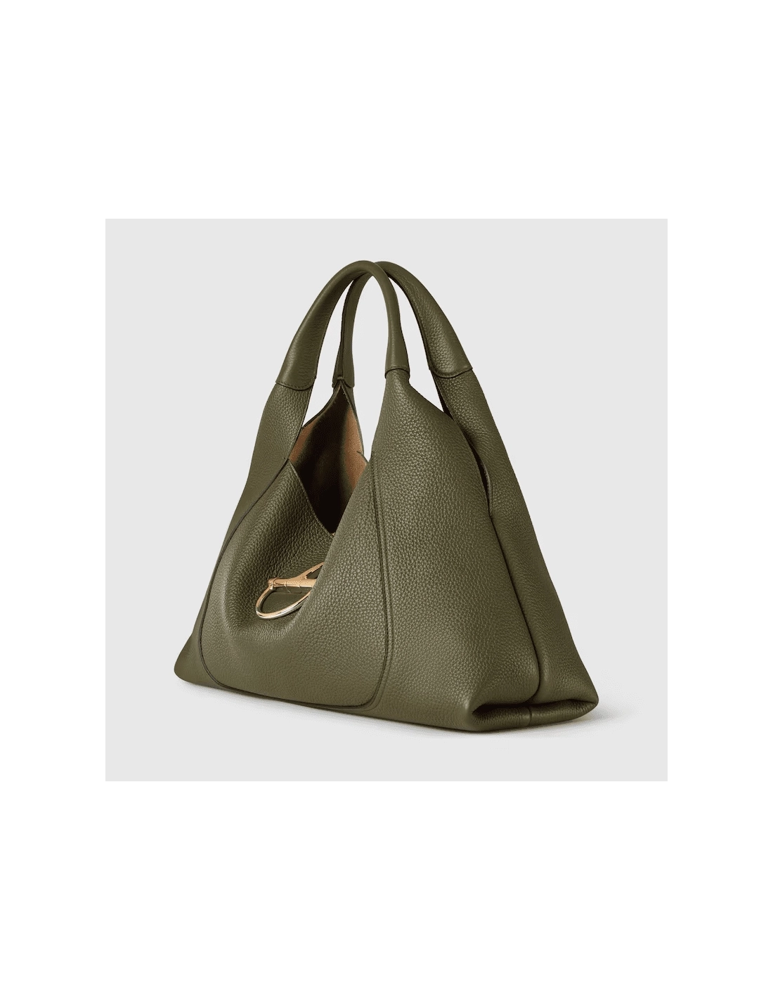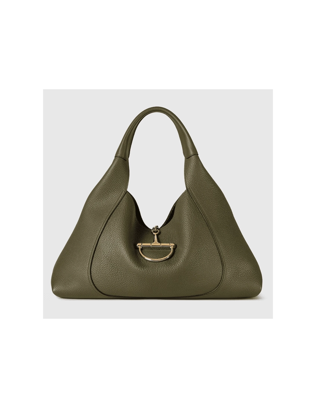 The new Gucci Softbit shoulder bag reimagines the Houses signature hardware as an oversized half Horsebit. It is both aesthetic and functional as the magnetic closure of the relaxed silhouette, crafted from supple, grainy leather with a rich texture.