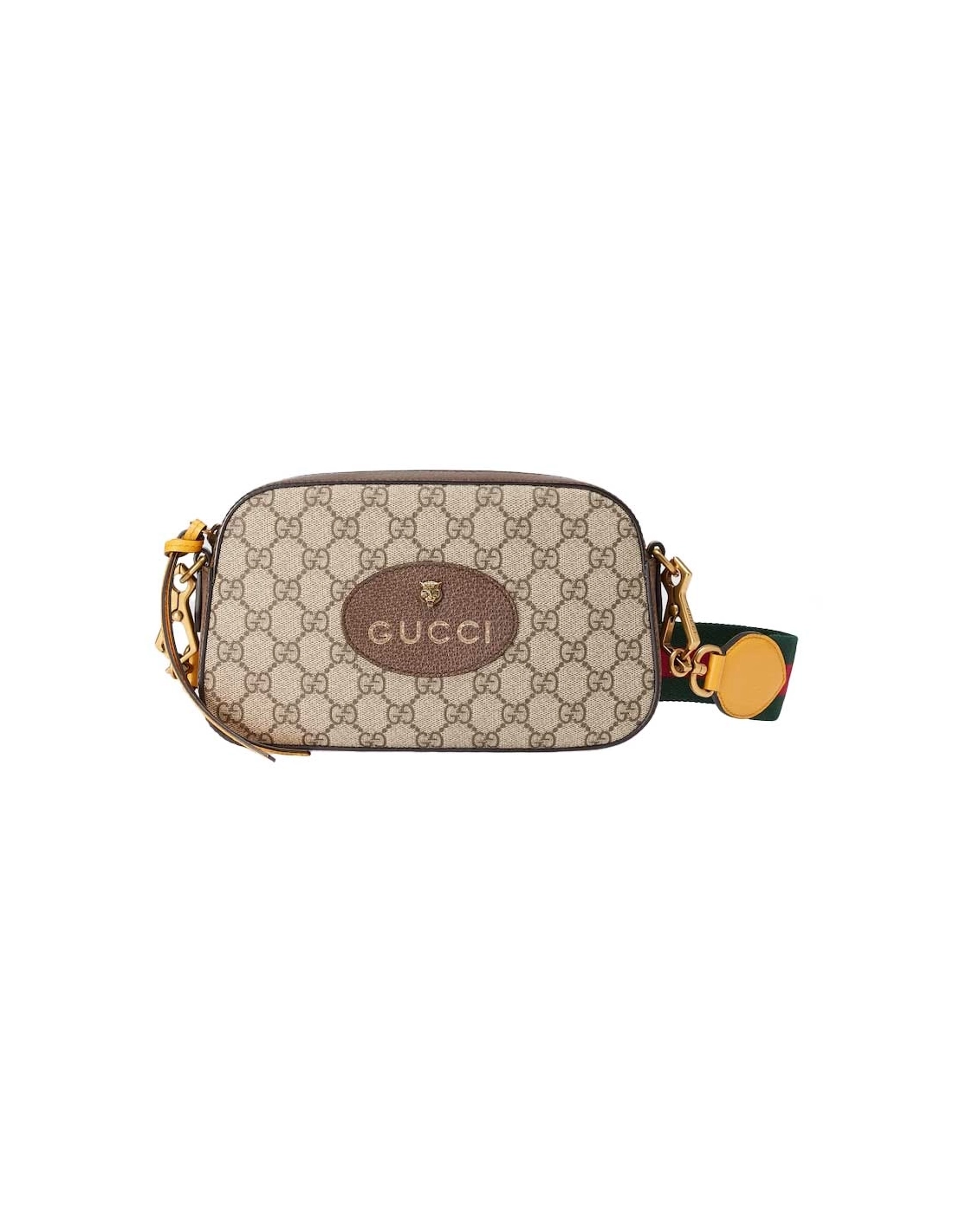 A collection of vintage inspired bags speaks to the contemporary voyager, trimmed with the House Web stripe. Made in GG Supreme canvas, this camera bag has yellow leather details. The contrast trims pay homage to the Houses past, when artisans would repair luggage by replacing worn areas with new ones in any colours that were available.