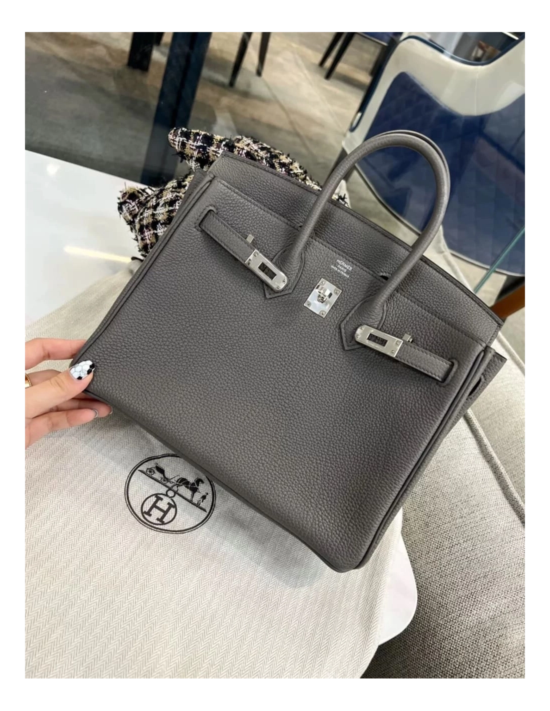 Hermes Birkin 25 Gris Meyer Togo Leather Palladium Hardware