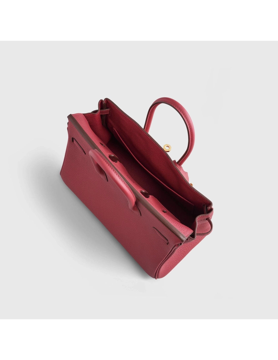 Presenting a striking Birkin crafted from Rubis togo leather, exuding confidence with its bold statement. Enhanced by gleaming gold hardware and seamless tonal stitching, it radiates refinement. Inside, the matching Rubis chevre interior provides a luxurious surprise, while thoughtful pockets ensure elegant organization.