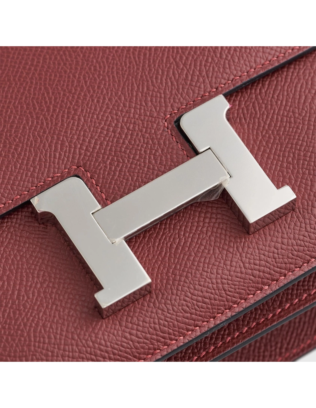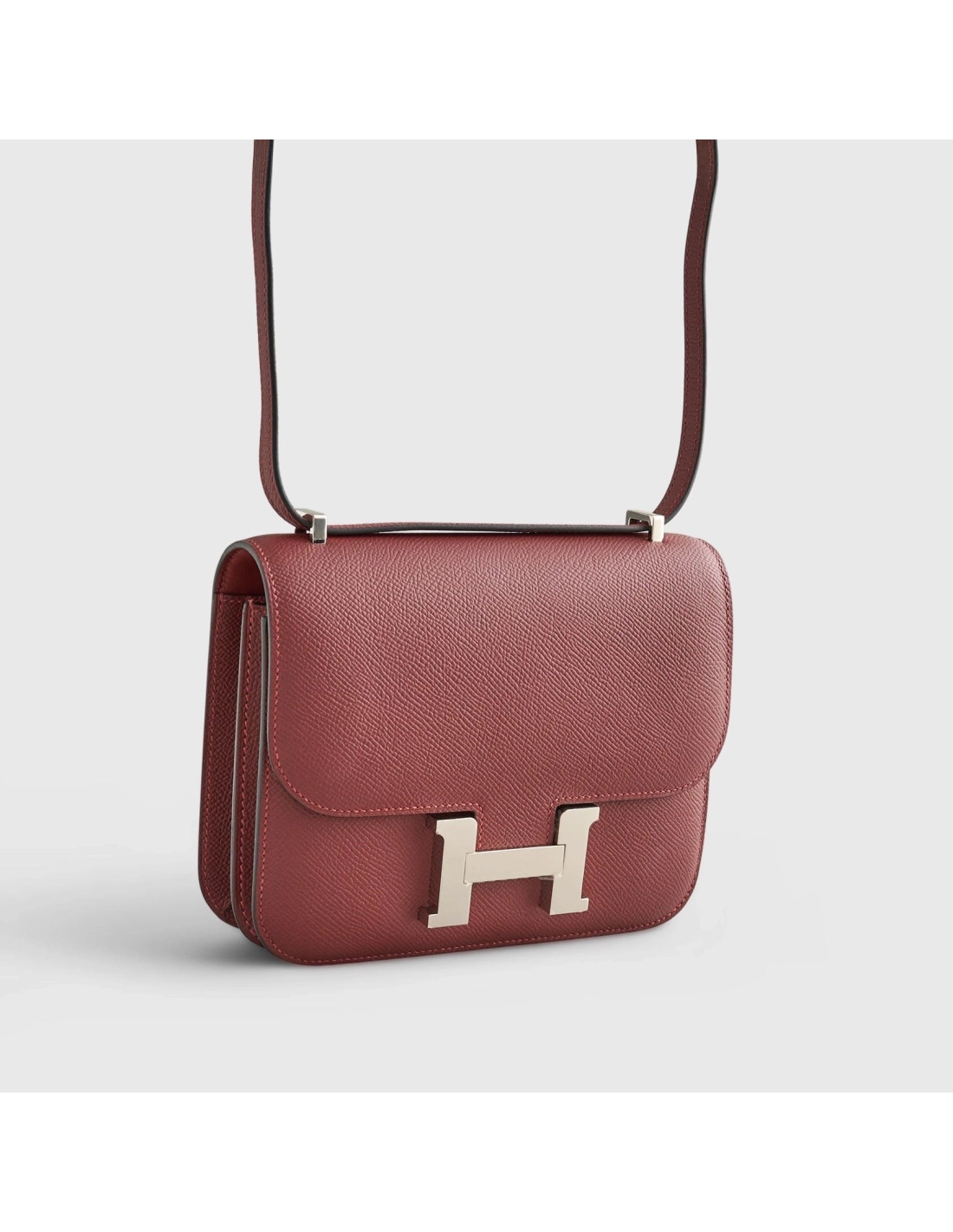 This sophisticated Constance exudes understated luxury. Crafted from supple Rouge H chevre leather with gleaming palladium hardware, its clean lines and subtle H closure showcase refined style. The matching lambskin interior, complete with practical pockets, provides the perfect blend of beauty and function.