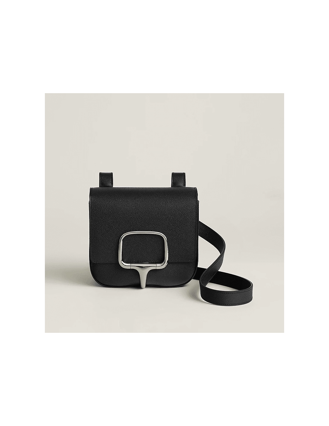 Bag in Epsom calfskin ¨C Interior pocket ¨C Back pocket ¨C Adjustable shoulder strap ¨C Can be worn over the shoulder or across the body Made in France Metallic finish: Palladium plated Dimensions: L 18 x H 15 x D 6?cm | Strap length without snap hook: 96-118.5?cm