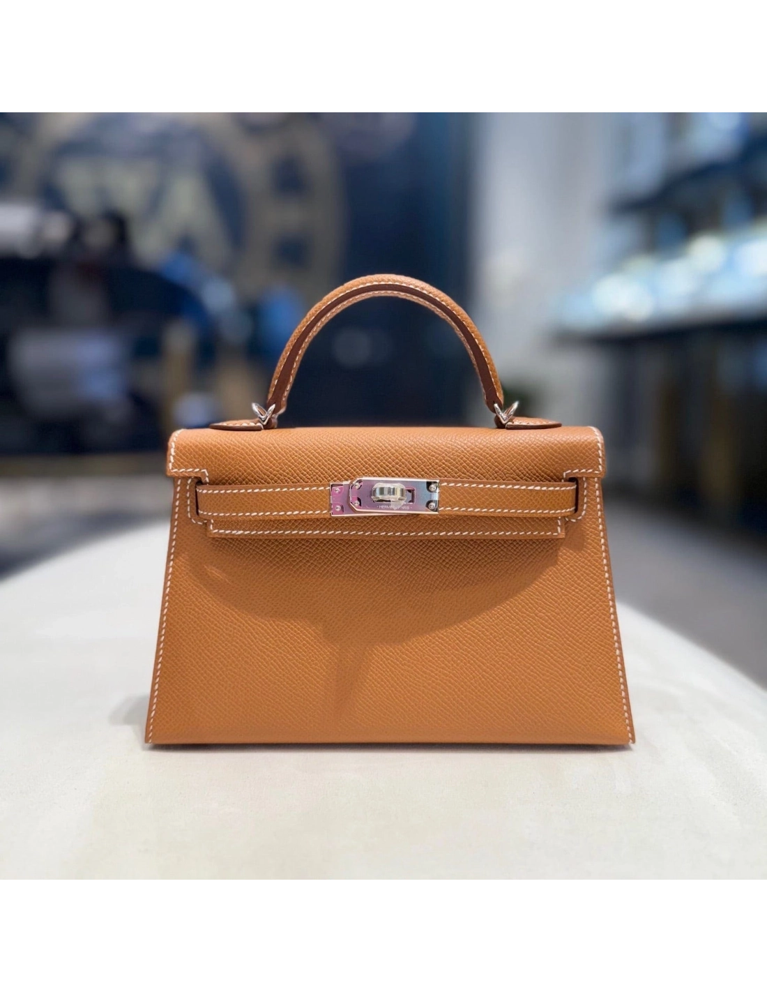 Crafted from resilient Epsom leather, this gold Mini Kelly retains its form with ease while remaining lightweight and durable. The palladium hardware (PHW) provides a sleek contrast, pairing seamlessly with both warm and cool tones.