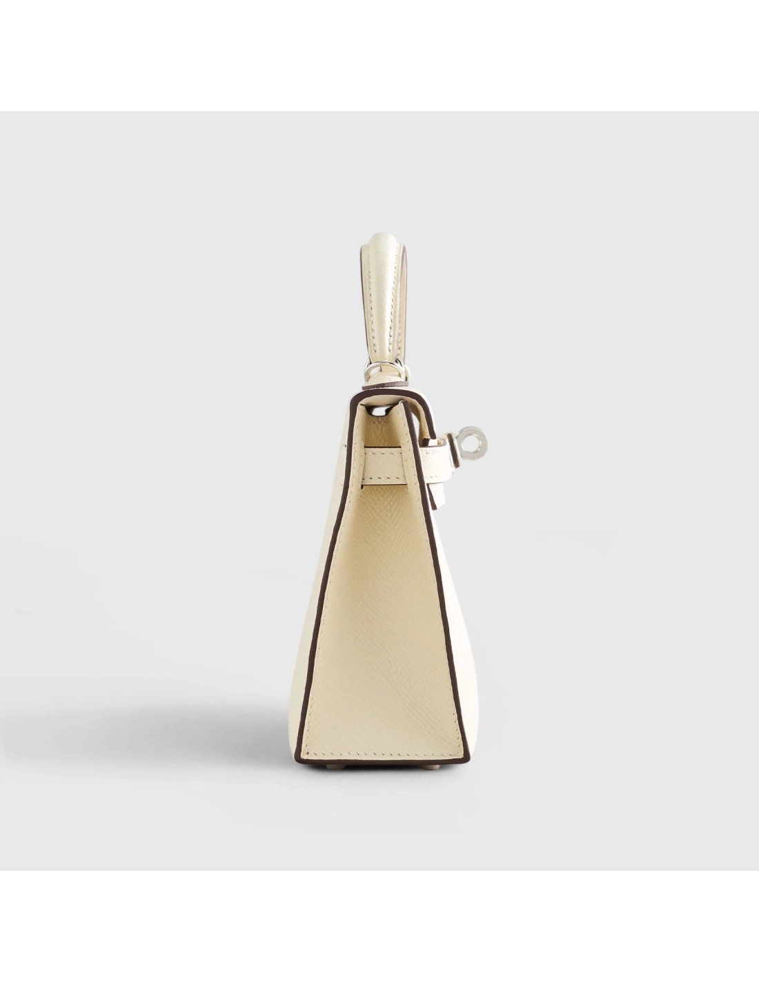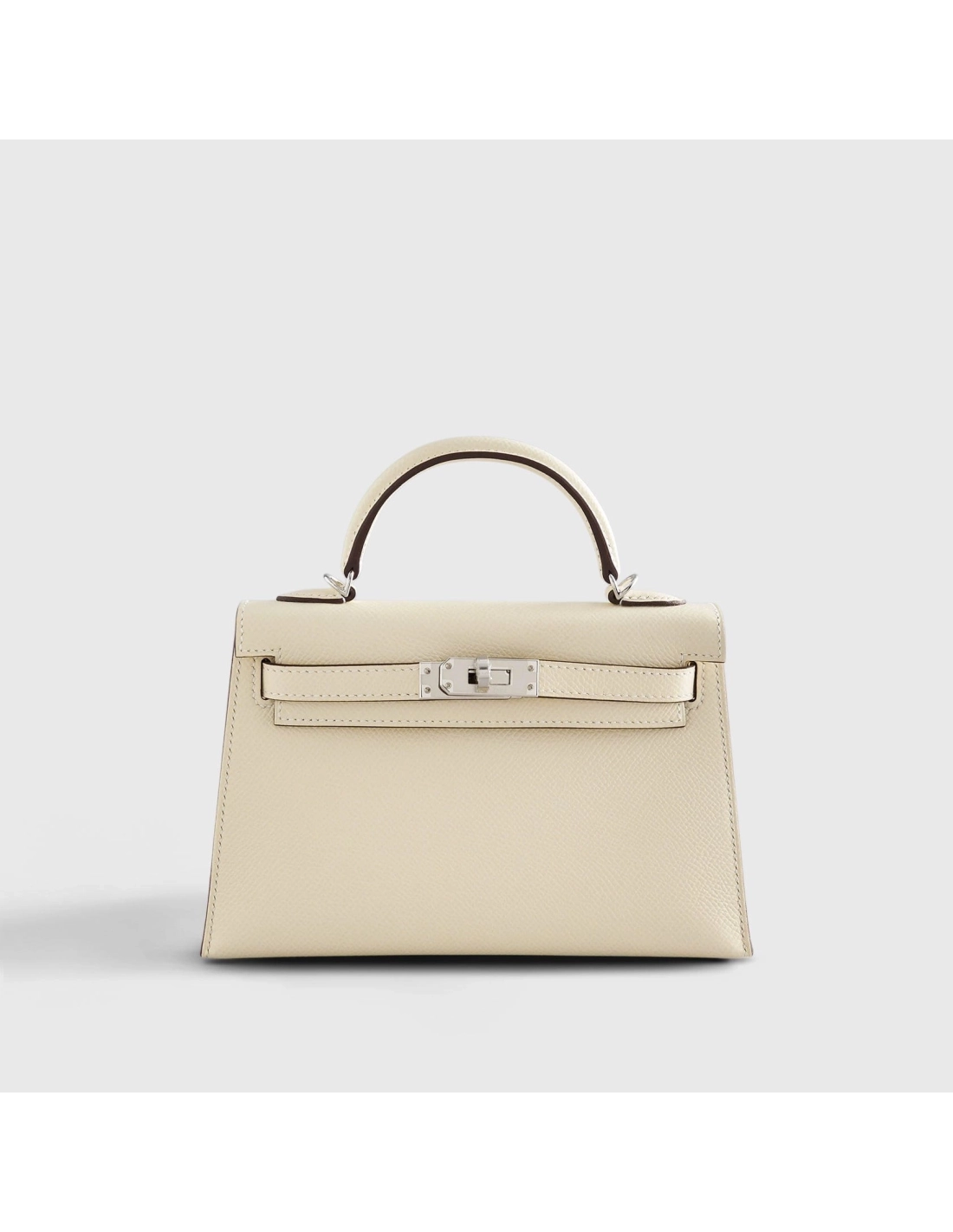 This Kelly mini in the Sellier style, is crafted from Nata Epsom leather with palladium hardware. It features tonal stitching, two front toggle closure straps, a single rolled handle, and a removable canvas shoulder strap. The interior is lined with Nata lambskin leather and includes one open pocket on the back wall.