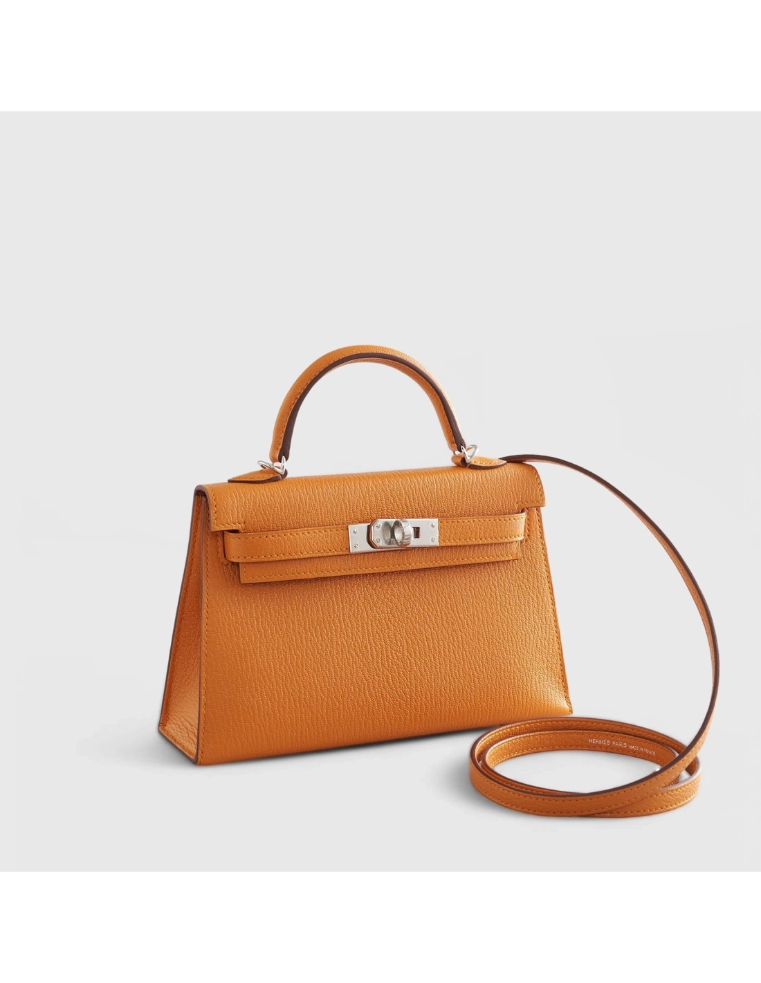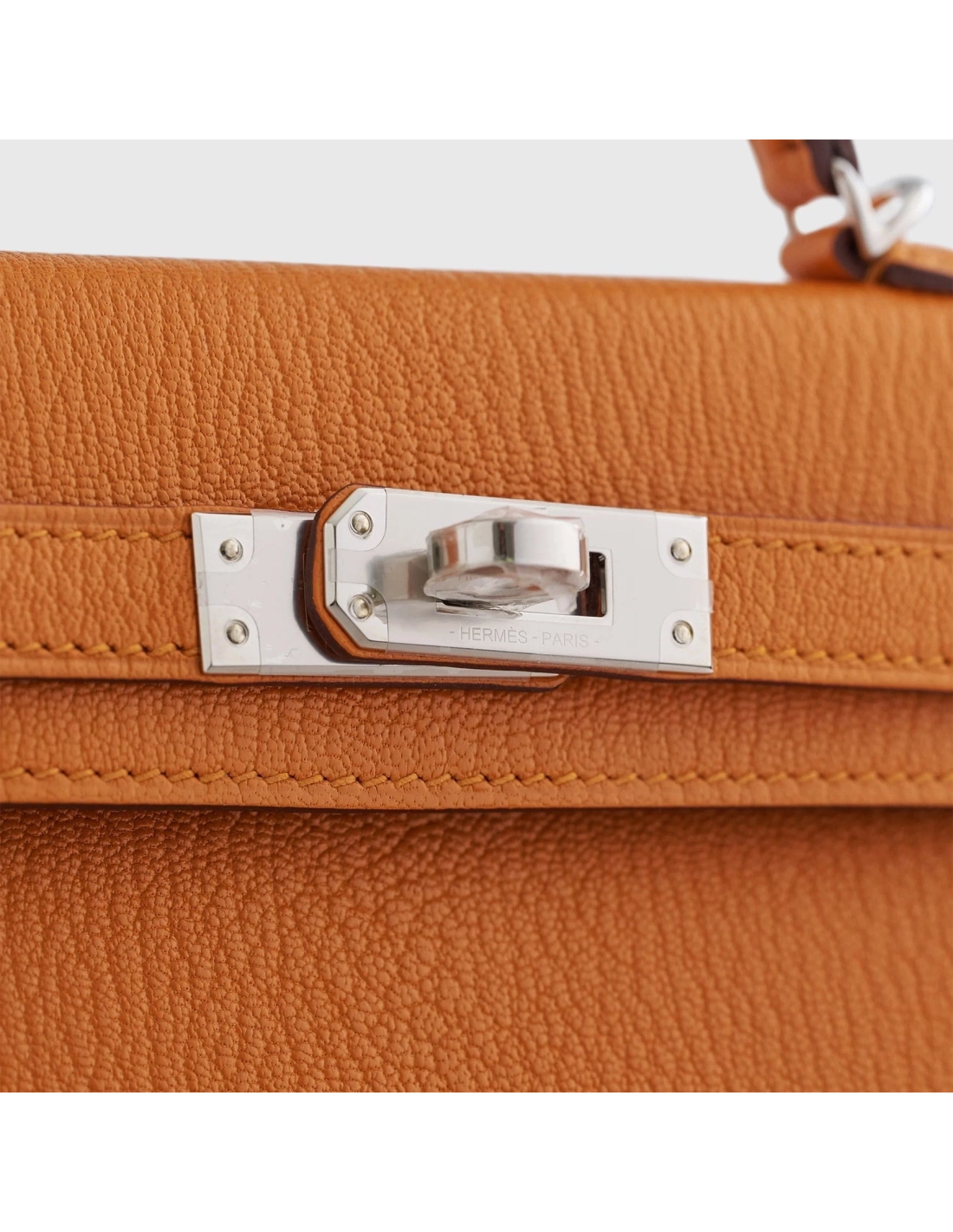 Hermes Kelly Mini Chevre Apricot Cuivre Sellier Palladium Hardware
