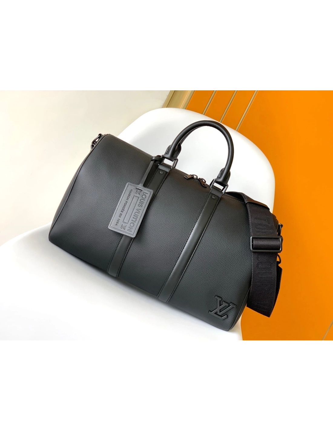The iconic Keepall now comes in LV Aerogram leather, an exceptional material and a tribute to Louis Vuittons leather expertise. Ultra-fine cowhide in elegant black is enhanced with signature details inspired by the Houses travel heritage, like the leather tag and the signed Jacquard strap. And its a practical carryall, perfect for a weekend or as an extra cabin bag.