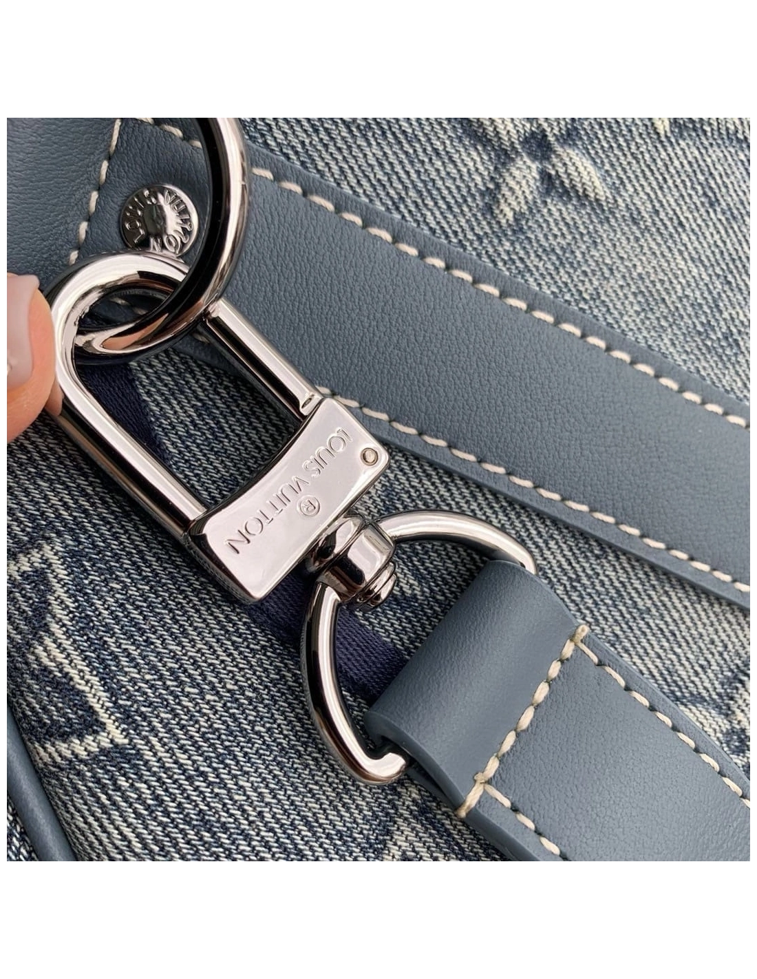 Monogram Washed Denim Coated canvas Cowhide leather trim Fabric lining Metal hardware Zip closure Zippered interior pocket Ample space Removable designer shoulder strap: detachable, adjustable Strap half-length: 36.0 cm Strap half-length adjusts to: 50.0 cm Handles: Double handles
