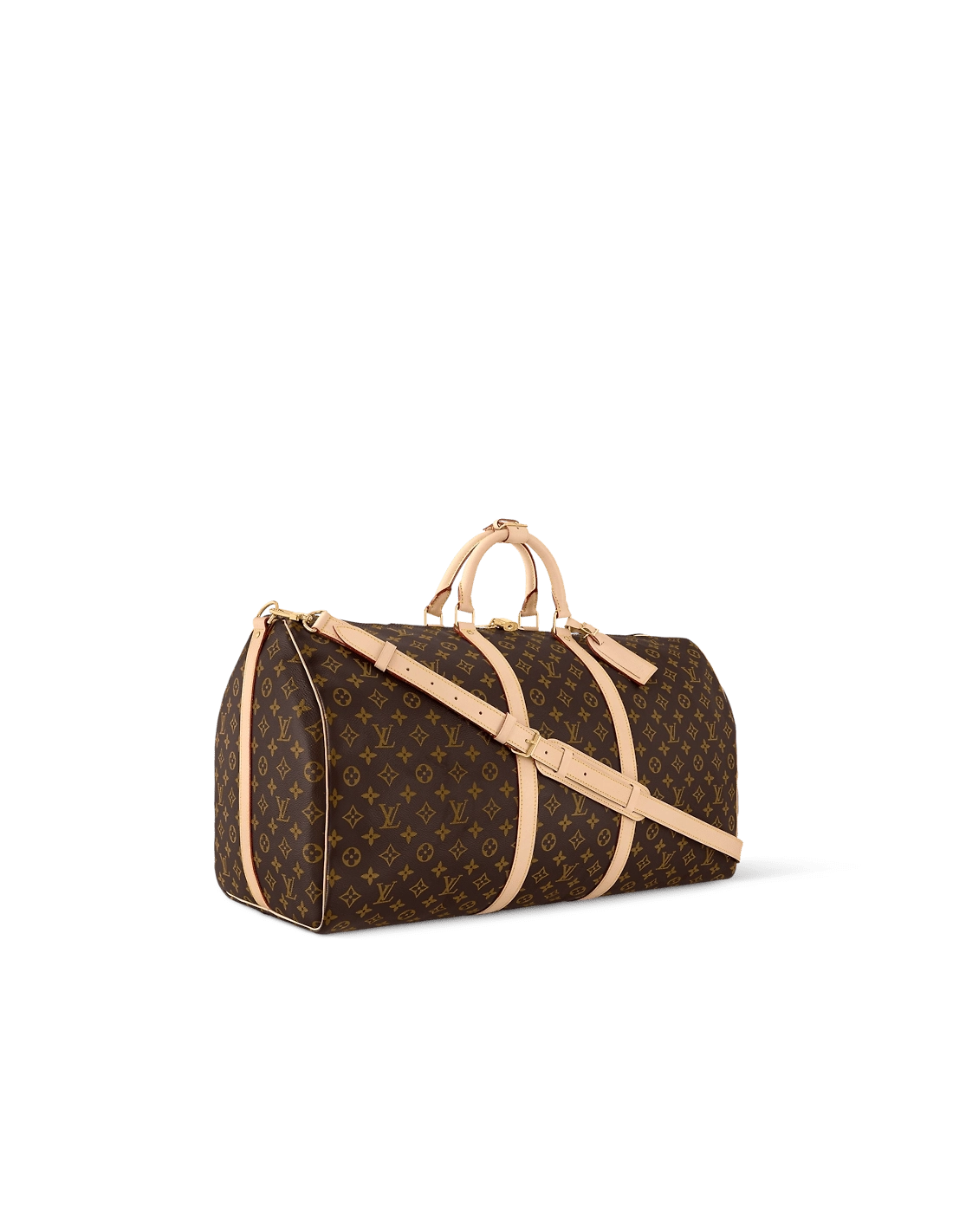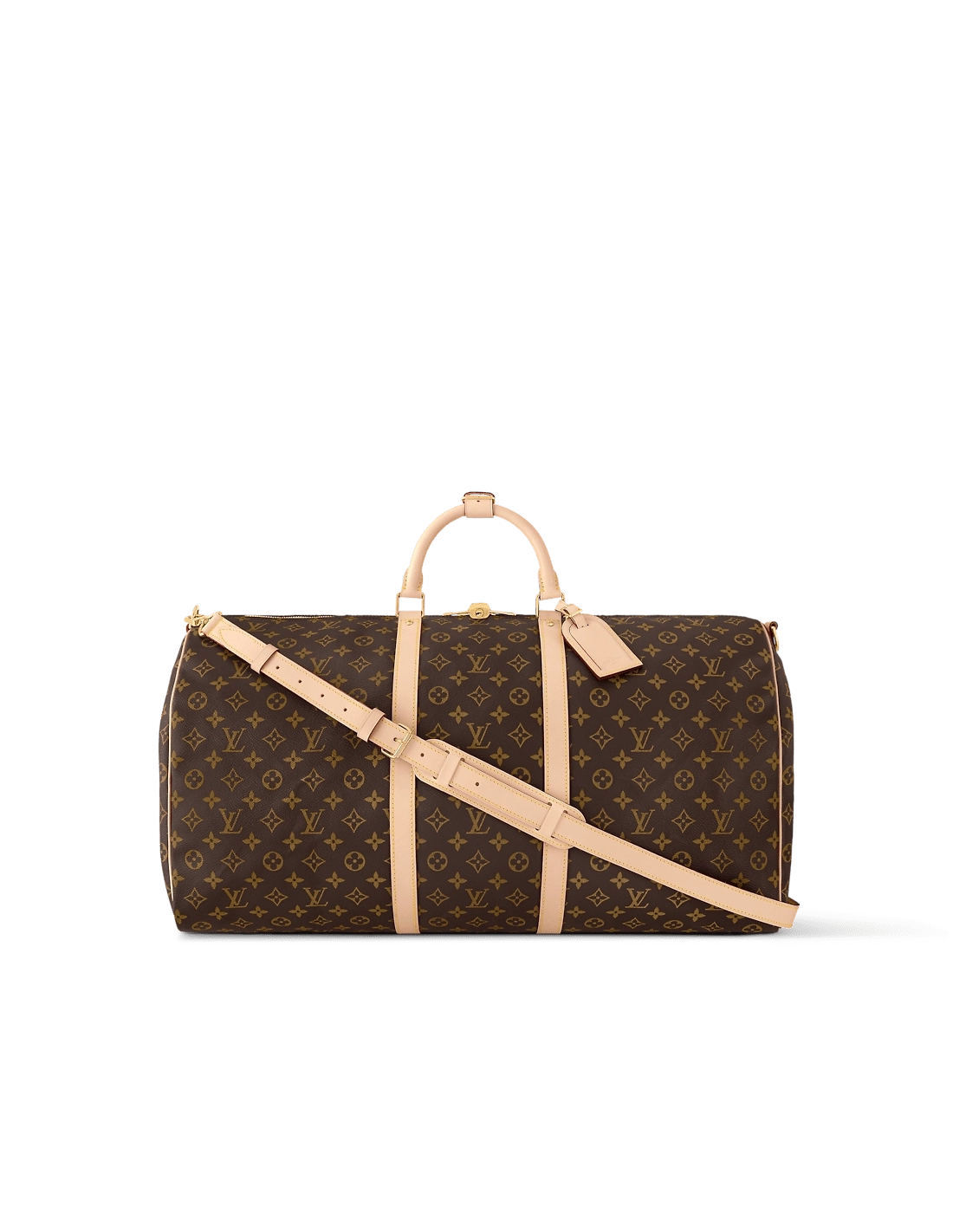 An icon since the appearance in 1930, the Keepall embodies the spirit of modern travel. Light, supple and always ready for immediate departure, the bag lives up to its name: those adept at the art of packing can easily fit a weeks wardrobe into the generously sized Keepall 60. Shown here in classic Monogram Canvas, with a strap for casual cross-body wear
