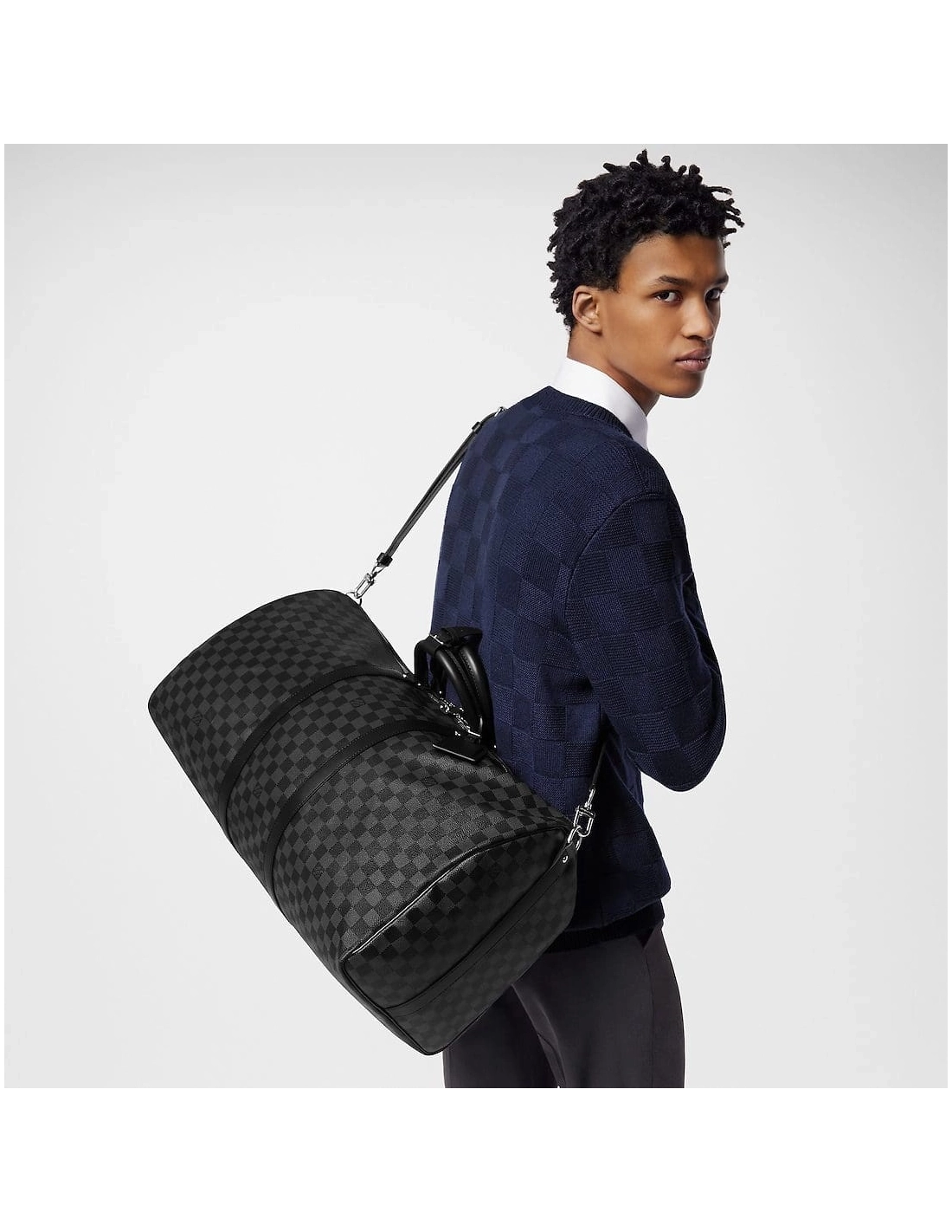 This urban travel bag in a revisited classic, Damier Graphite canvas, is not only stylish but also resistant and light. Hand held with a removable shoulder strap makes it extremely practical to use.