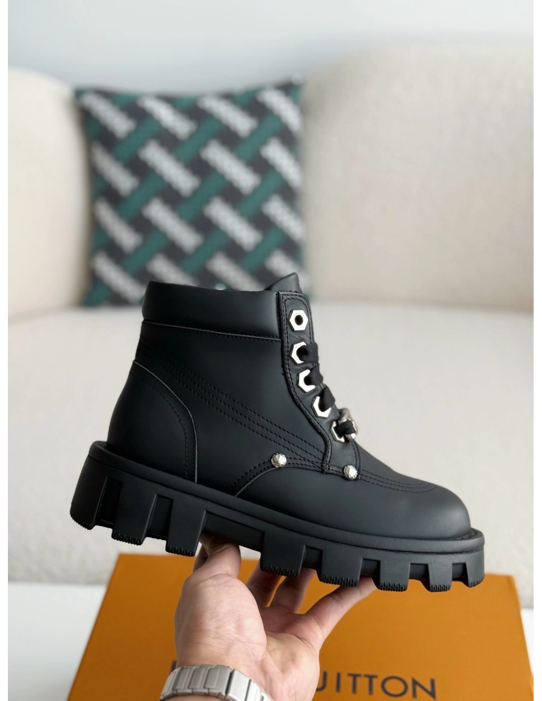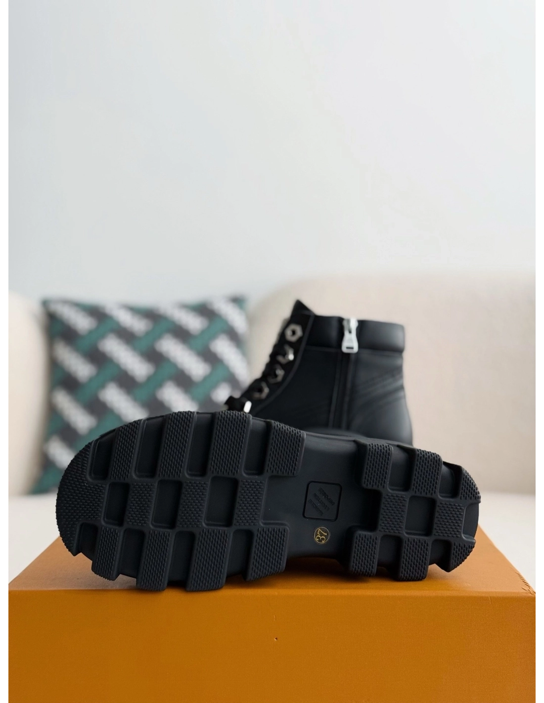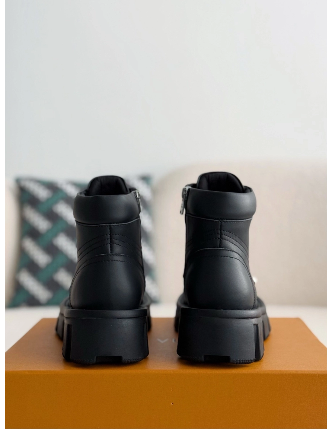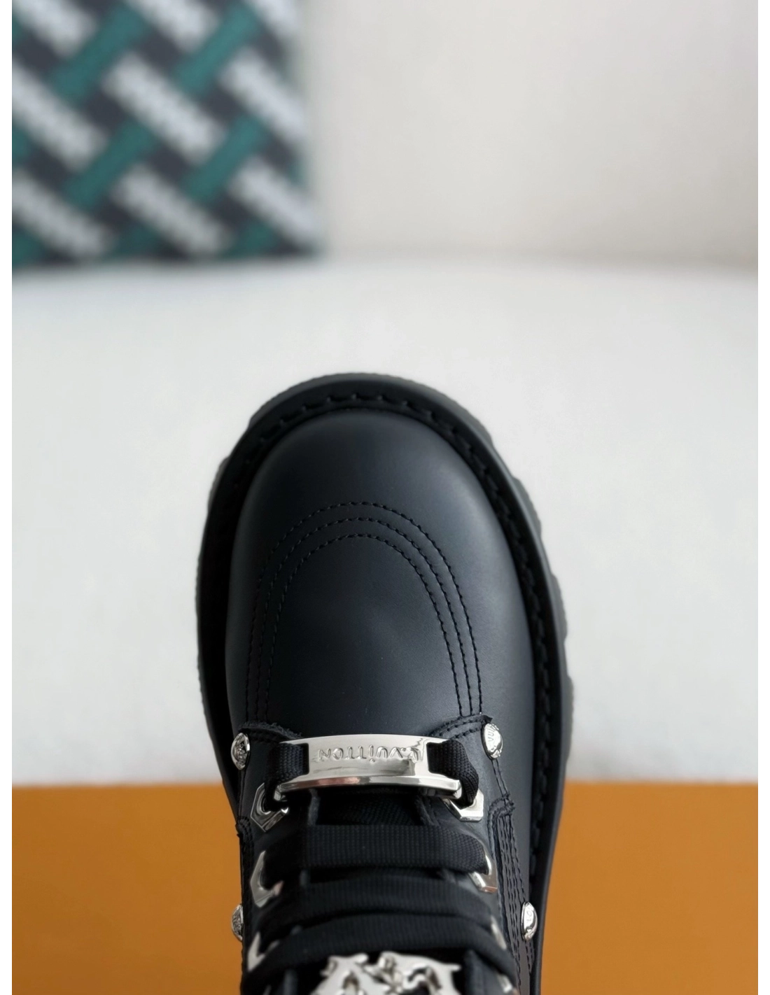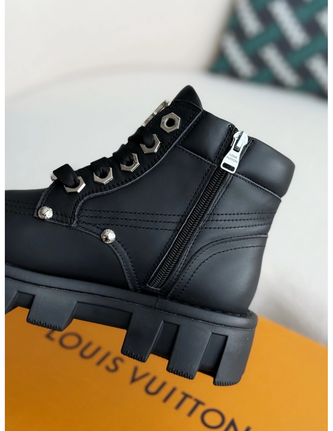 Louis Vuitton Leather Round Toe Lace-up Boots