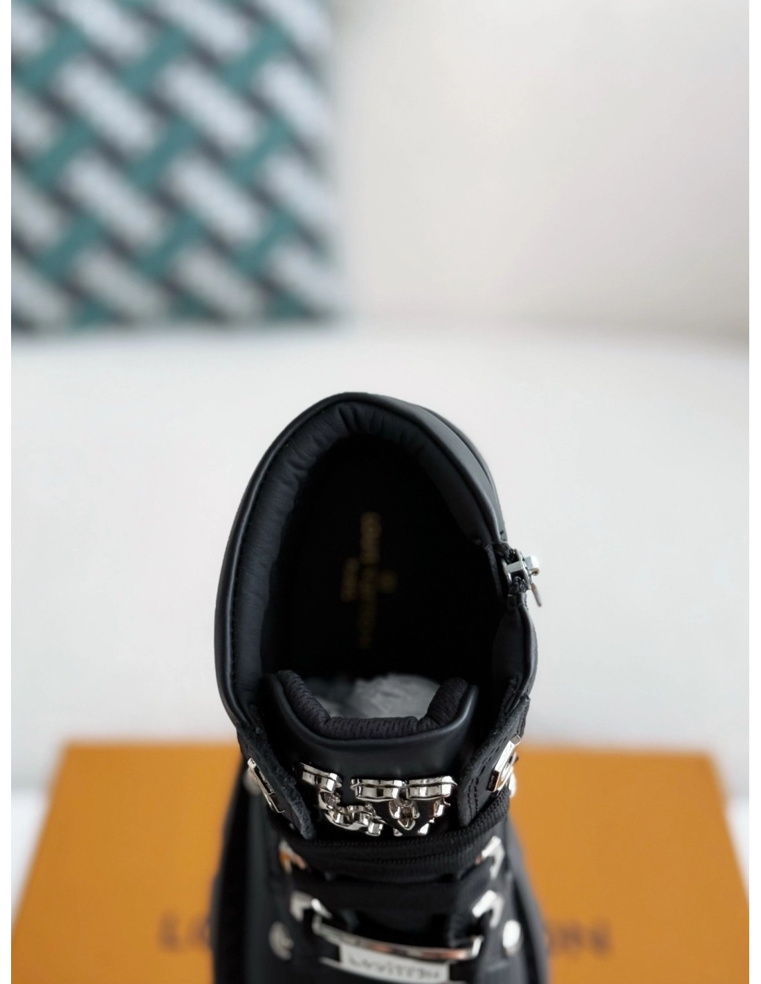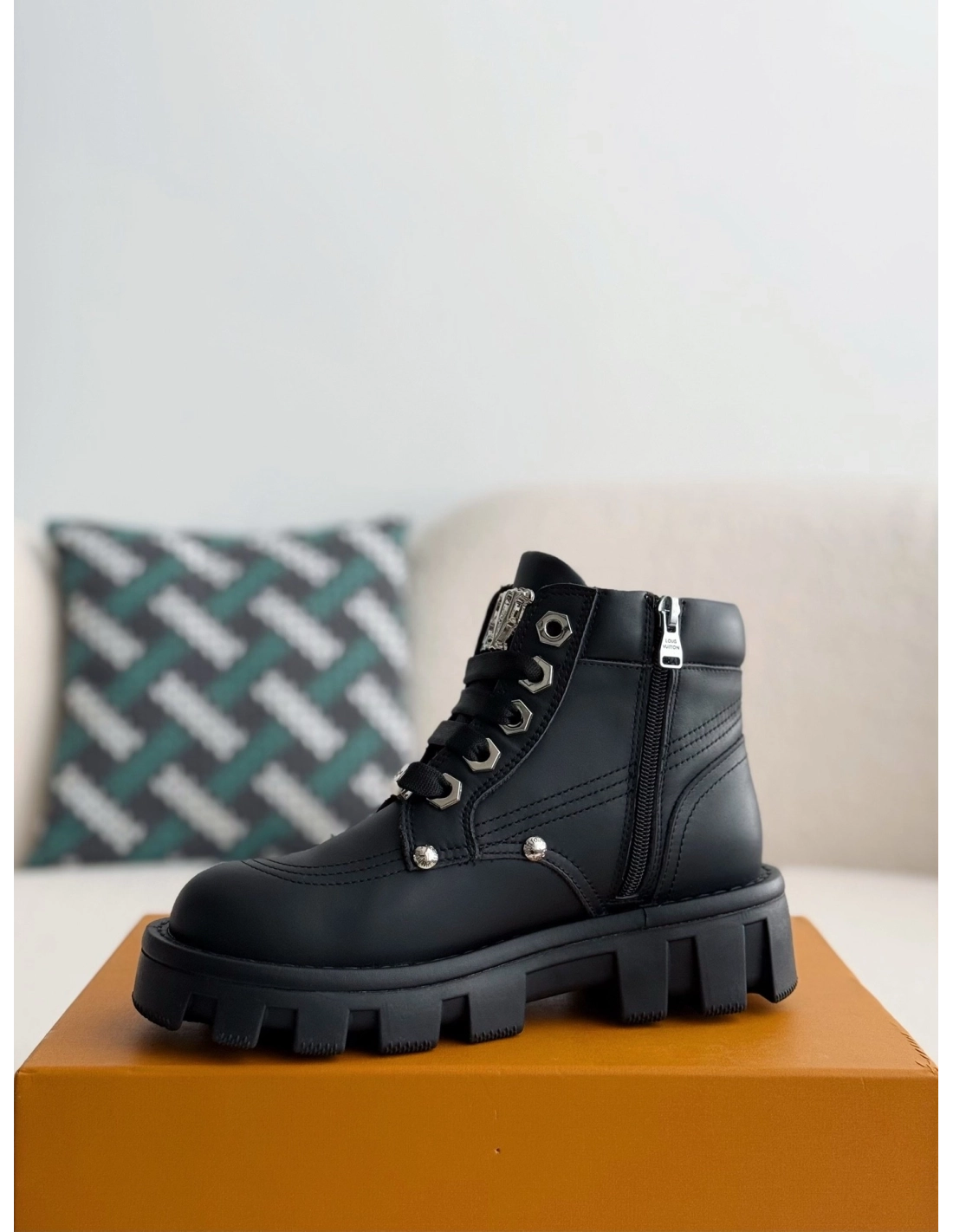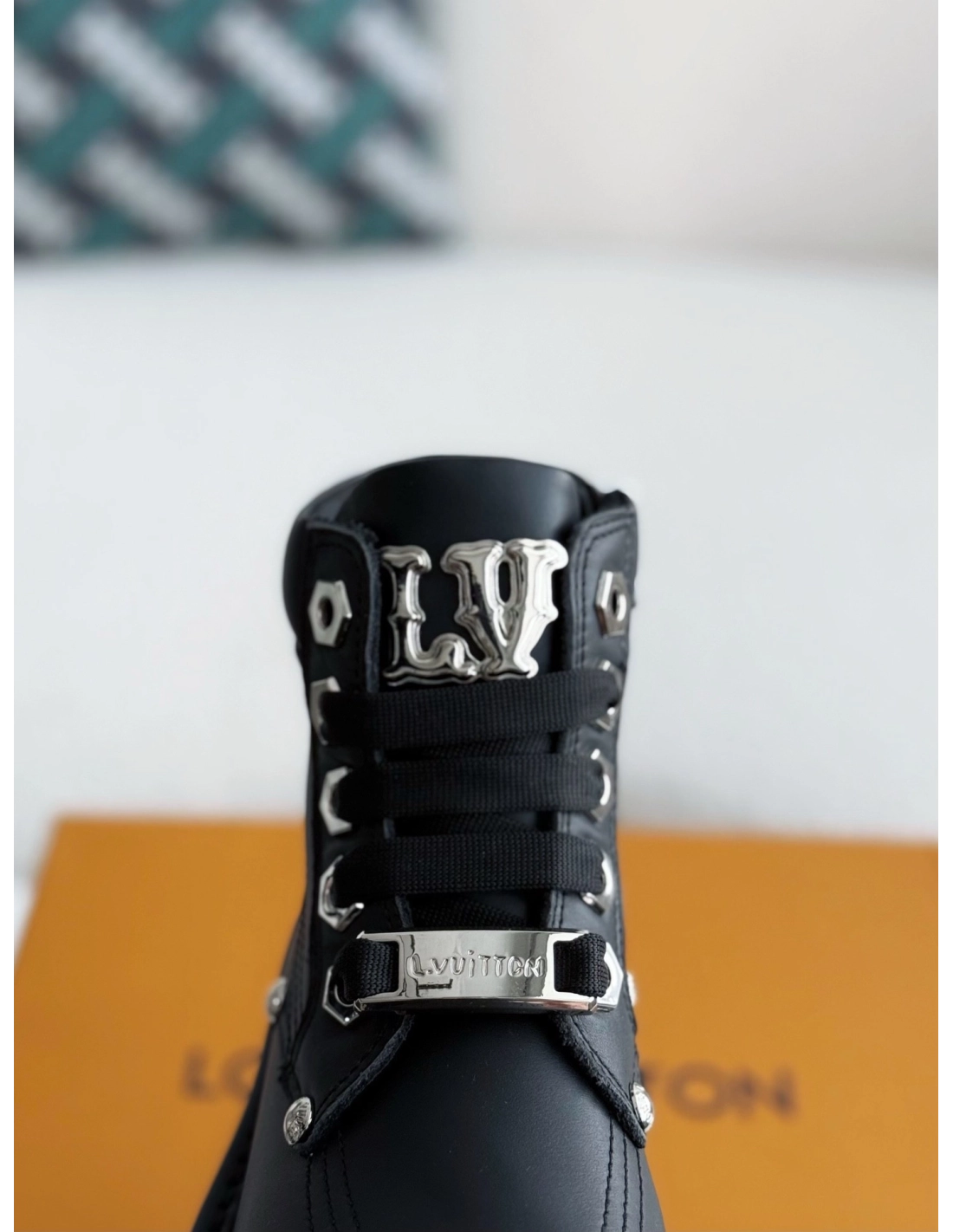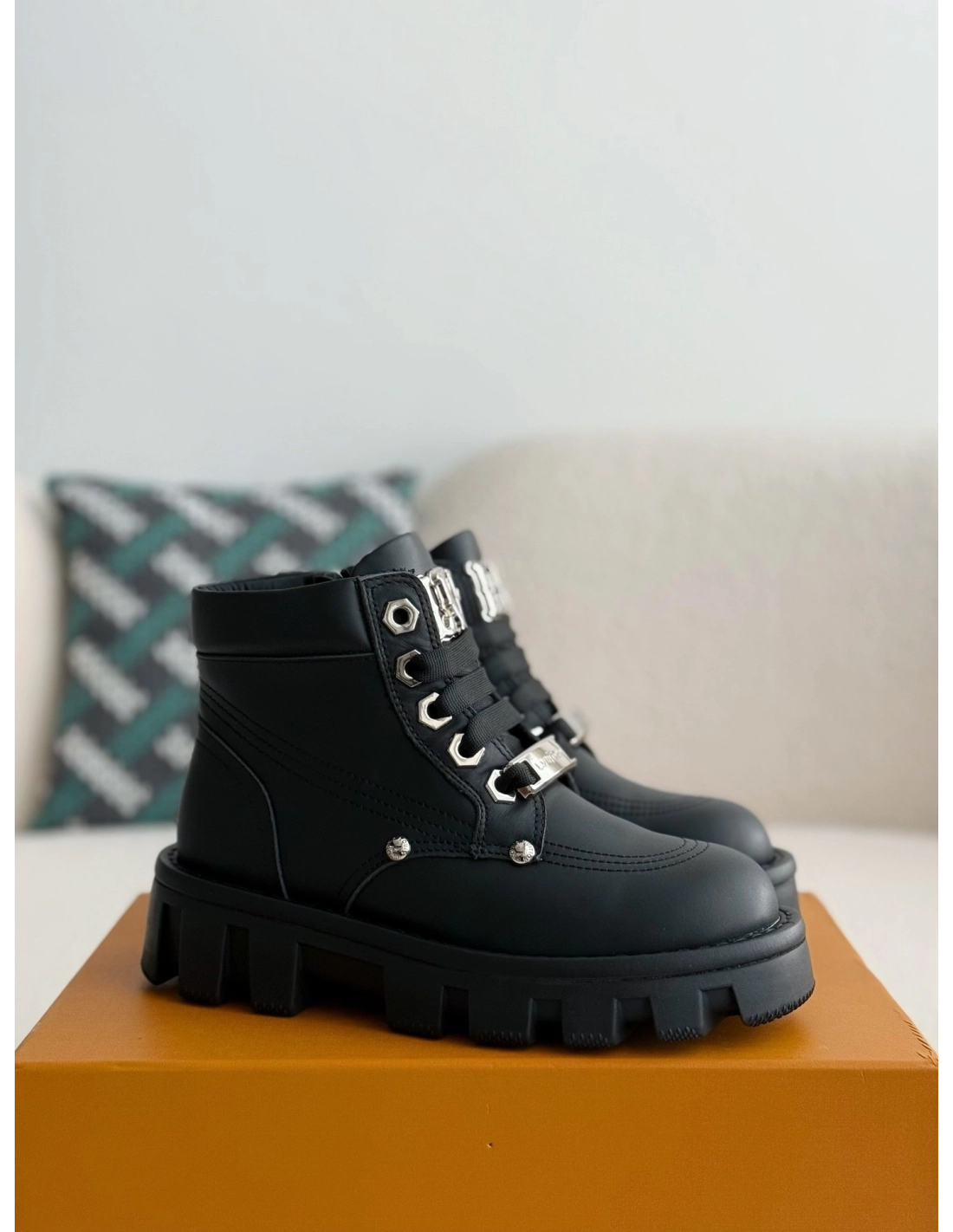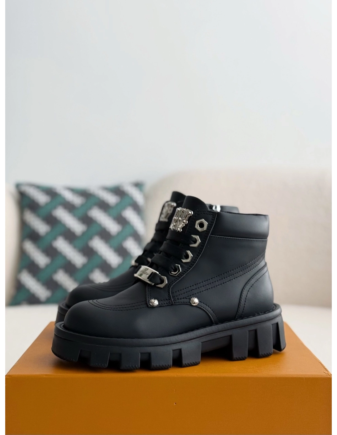 Louis Vuitton Leather Round Toe Lace-up Boots