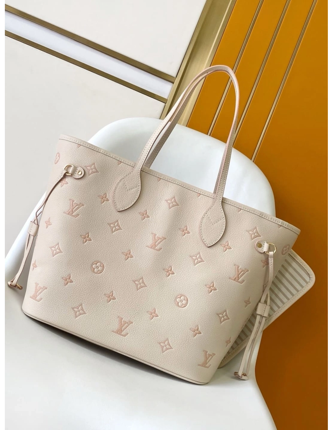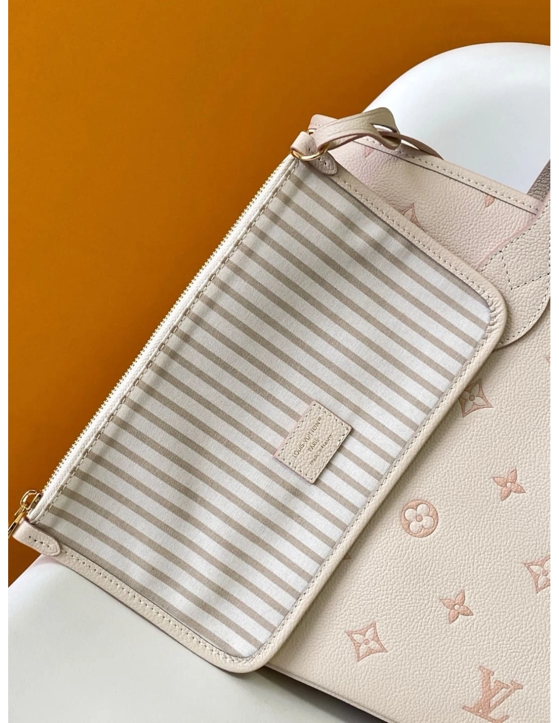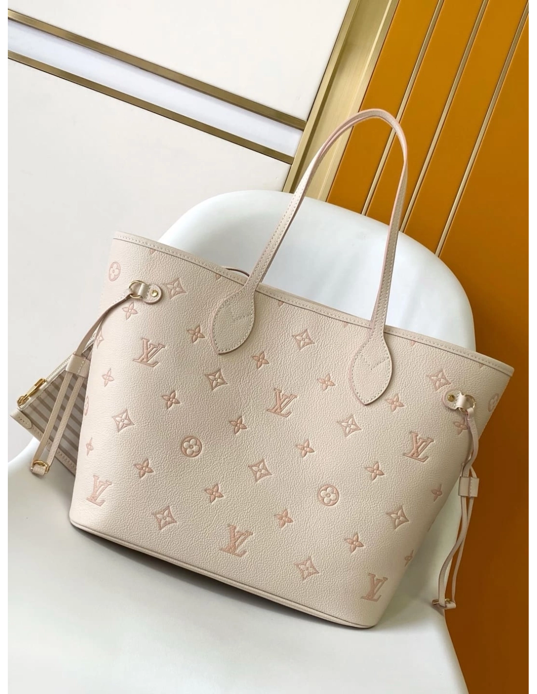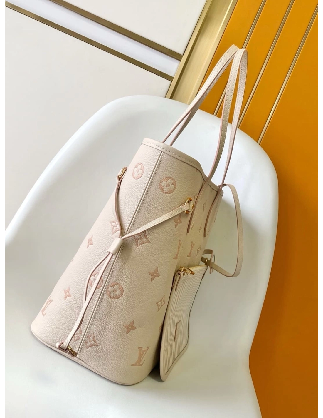 Showcasing the Houses iconic Monogram Empreinte leather with an updated tonal outline, this version of the Neverfull MM handbag is both functional and sophisticated. Generously sized to store a laptop as well as other everyday items, it comes with a removable textile pouch in a contrasting print. The gold-toned hardware lends a refined finish.